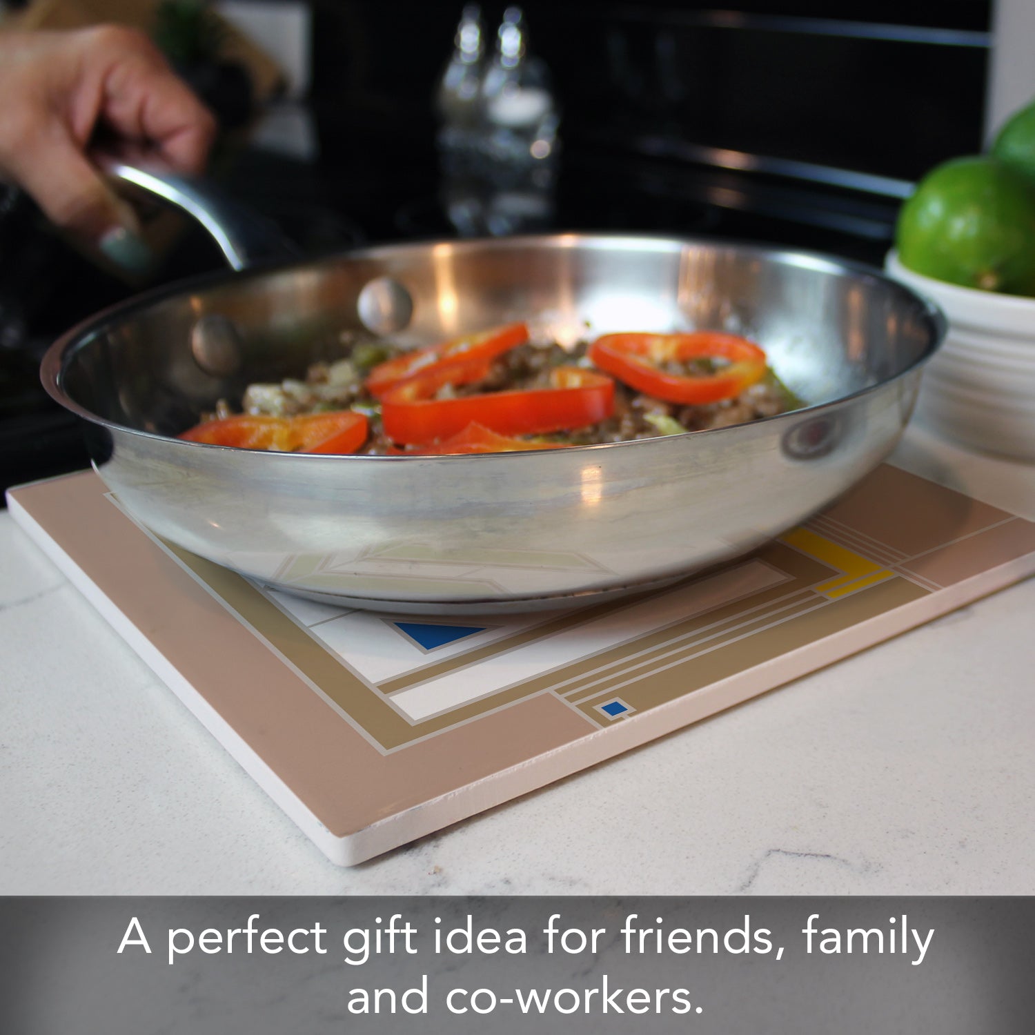 MEASUREENTS-Each Trivet measures 8" x 8" x 0.25" and is square in shape. Trivet is sized to fit most saucepans and bakeware.