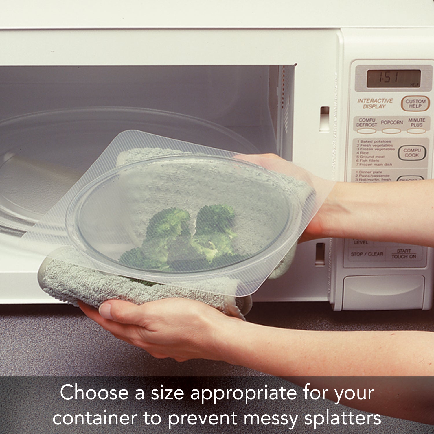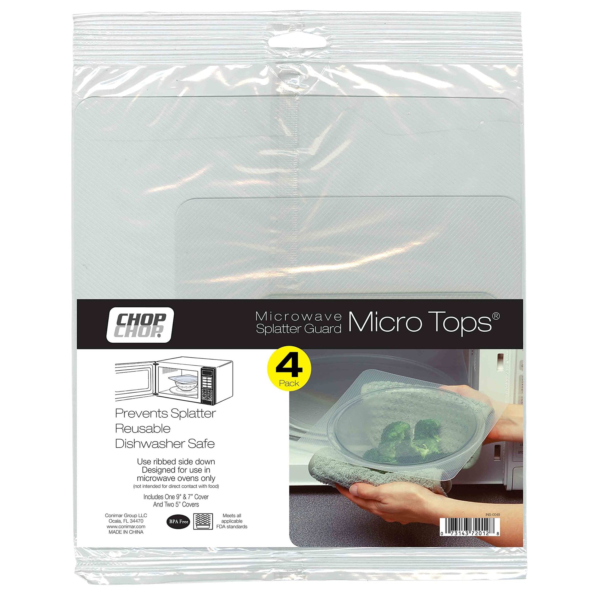 - MICRO TOPS SPLATTER GUARD should be centered on top of food container before placing inside the microwave oven. Choose the size that completely covers the food container to prevent messy splatters when heated.
