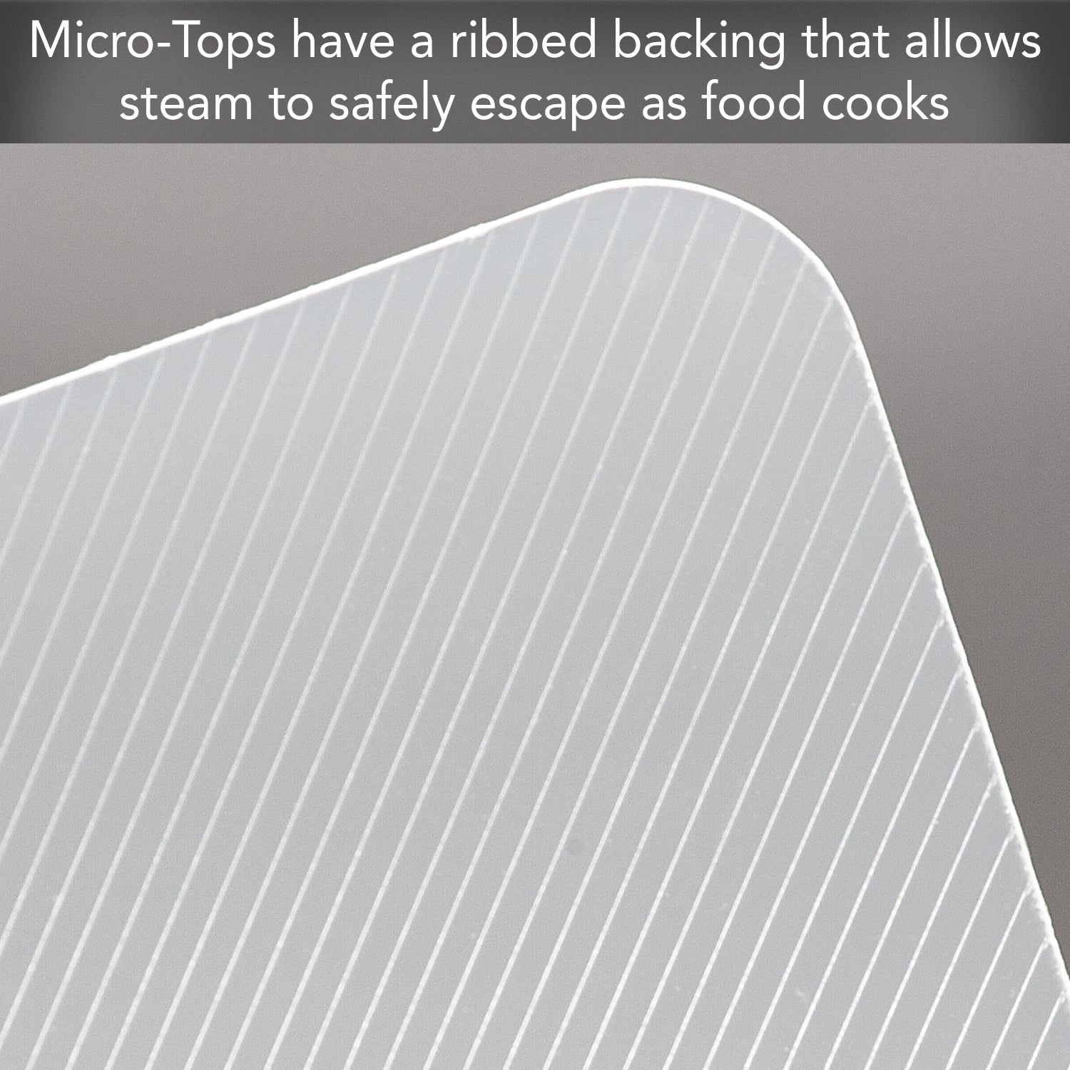 - MICRO TOPS SPLATTER GUARDS are made of ventilated plastic to release steam for better cooking results.