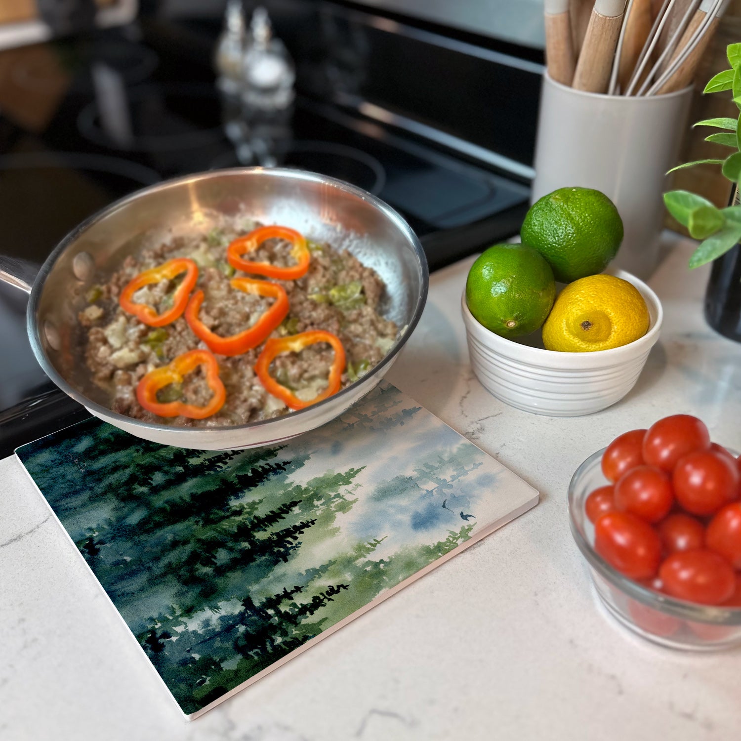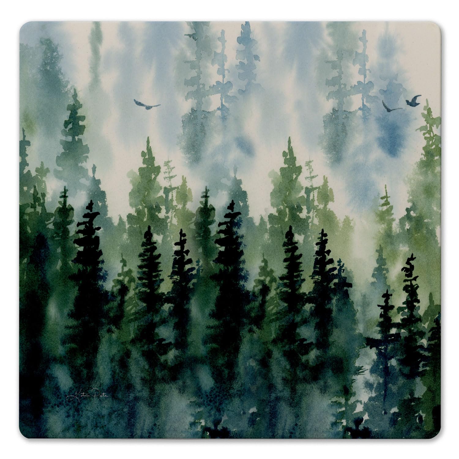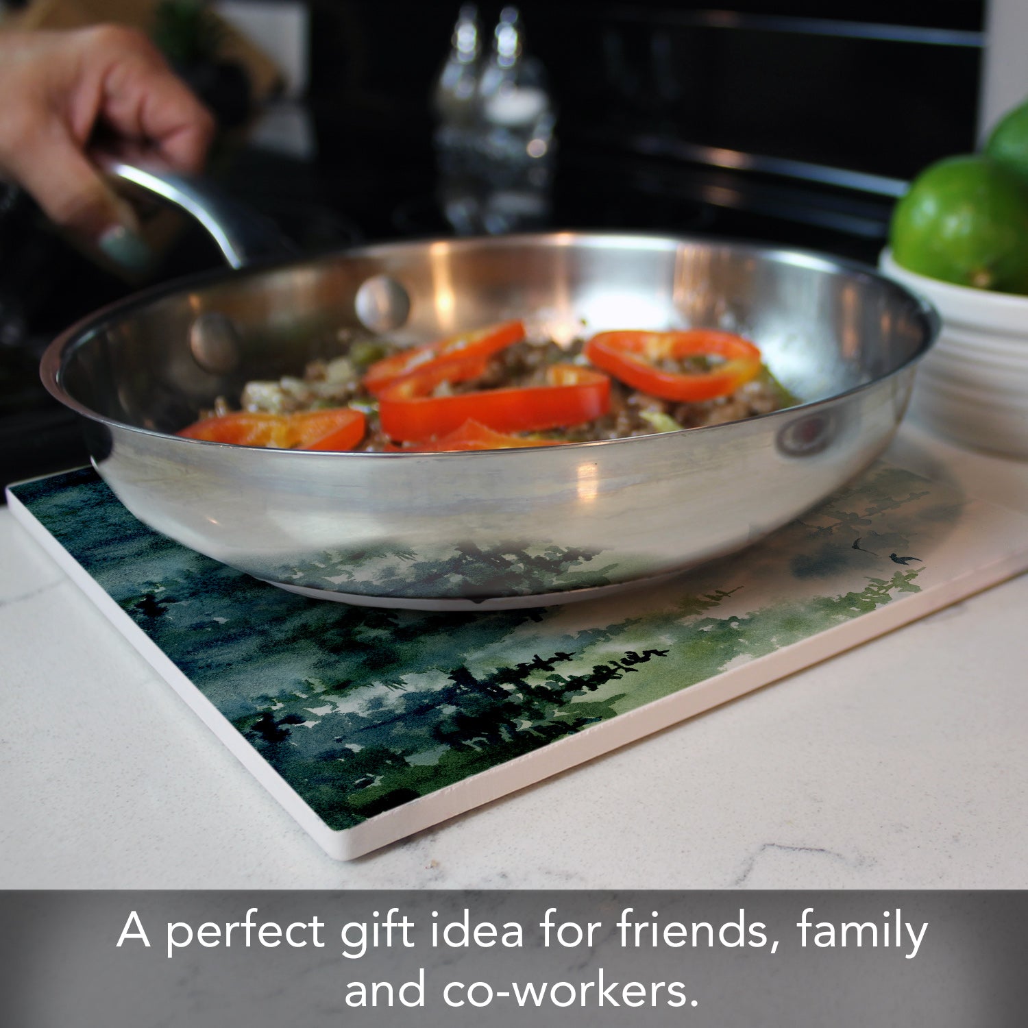 Thirstystone Misty Tree Line Decorative Heat Tolerant Stone Trivet with Non-Skid Cork Backing 8” Square
