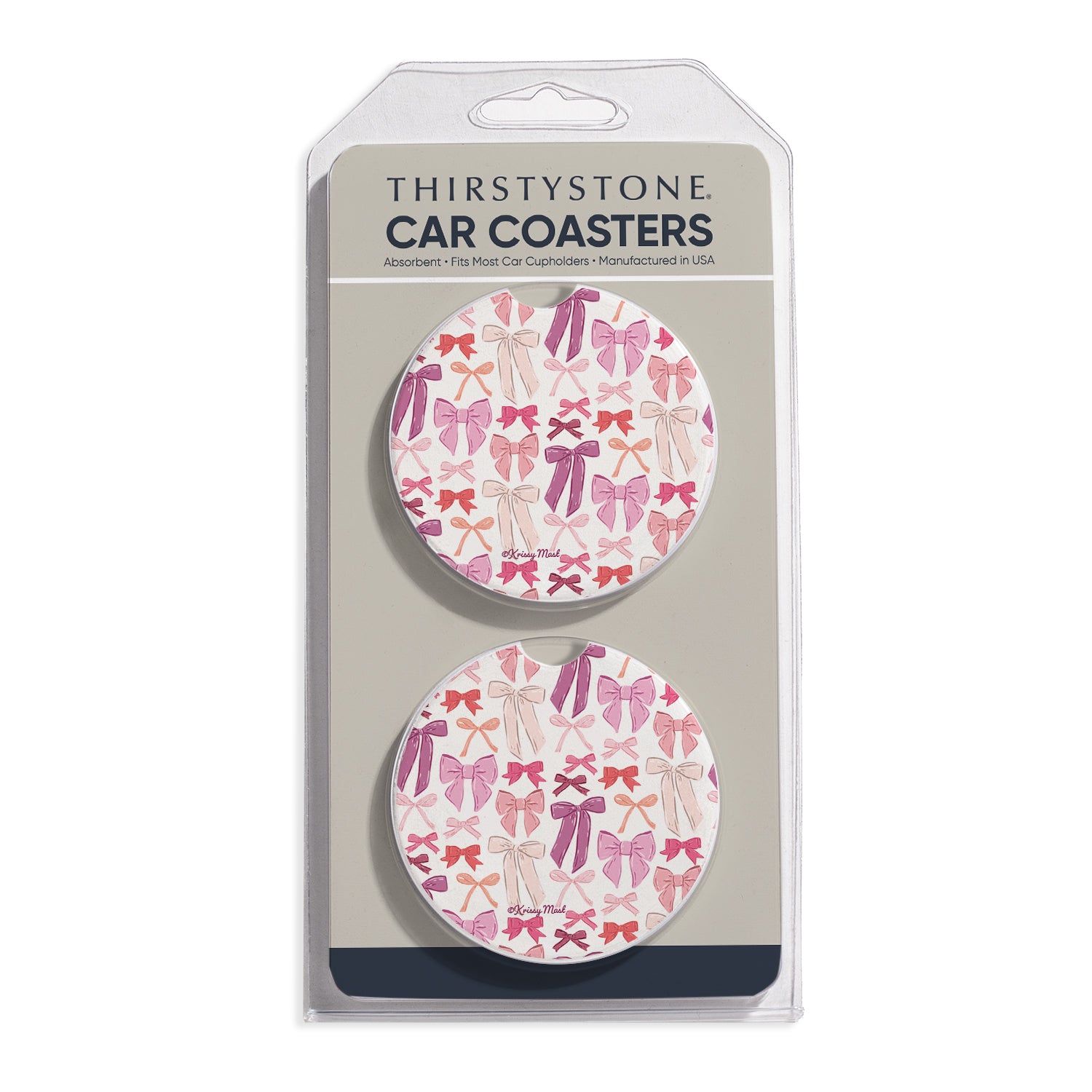 Mixed Bows 2 Pack Absorbent Stone Car Coasters 2.6" Manufactured in the USA
