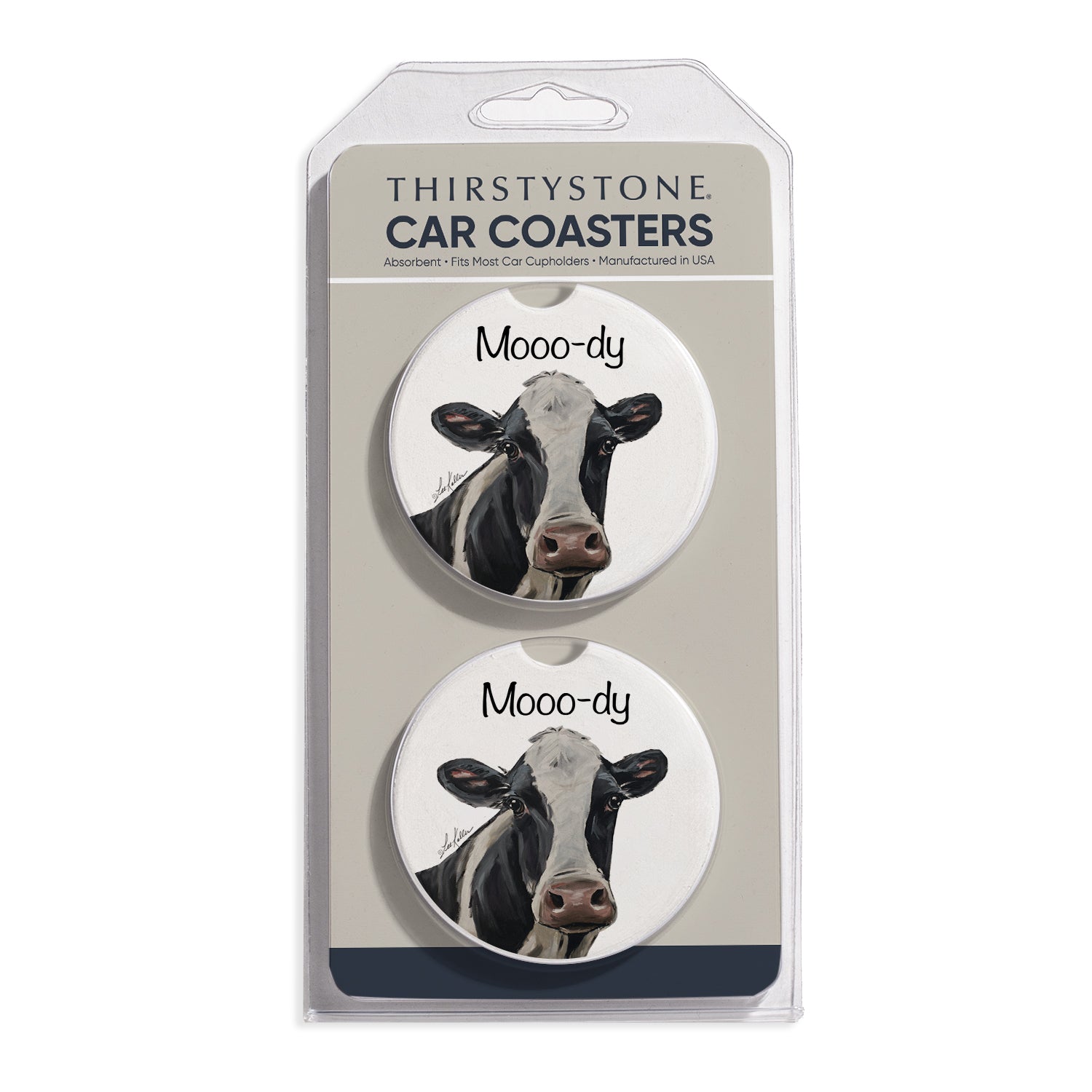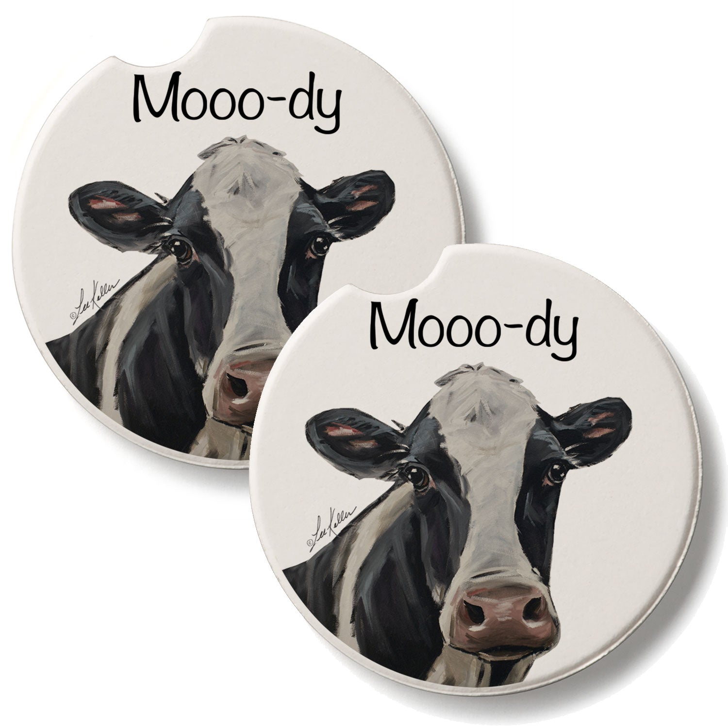 Mooo-dy 2 Pack Absorbent Stone Car Coasters 2.6" Manufactured in the USA