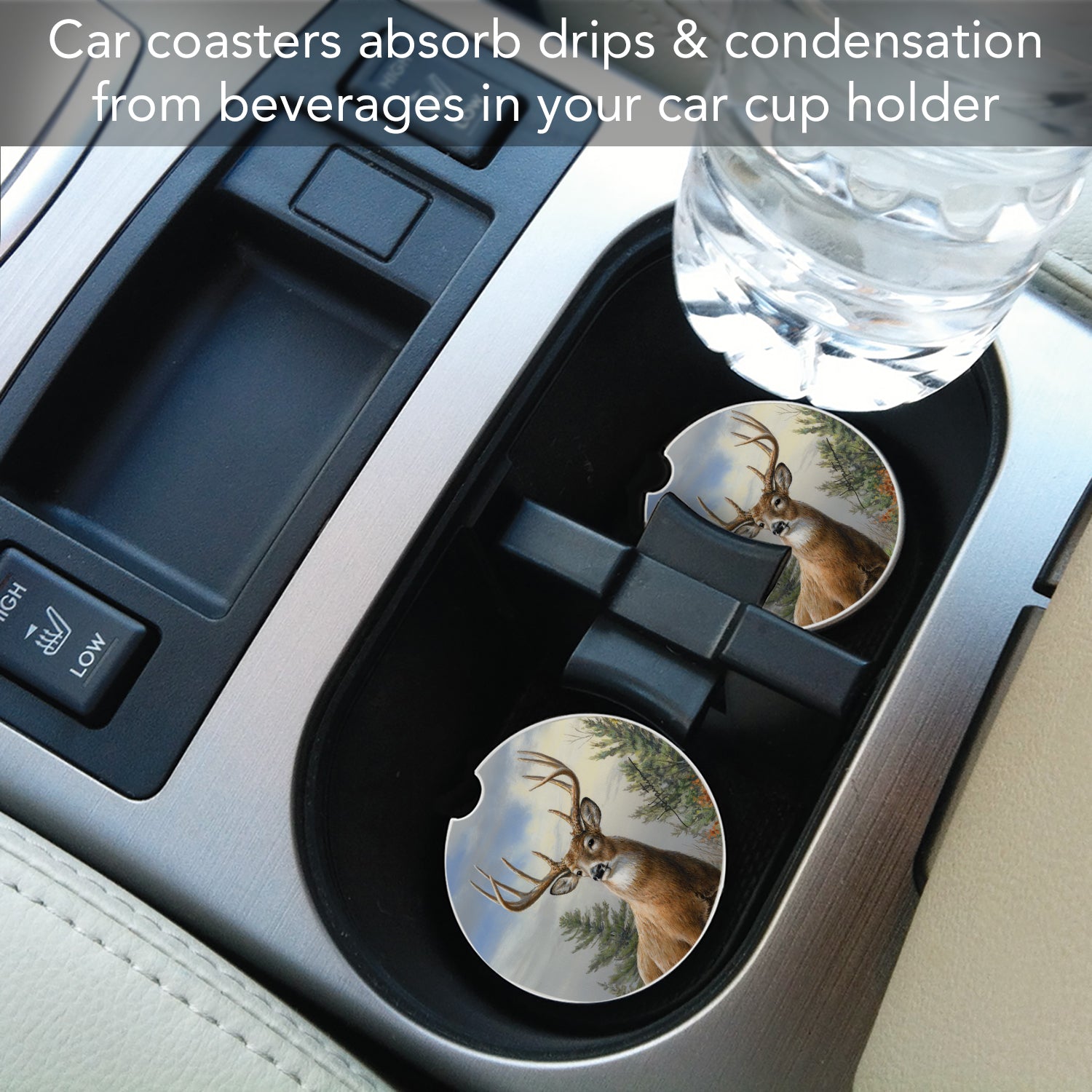 Morning Light Deer 2 Pack Absorbent Stone Car Coasters 2.6" Manufactured in the USA