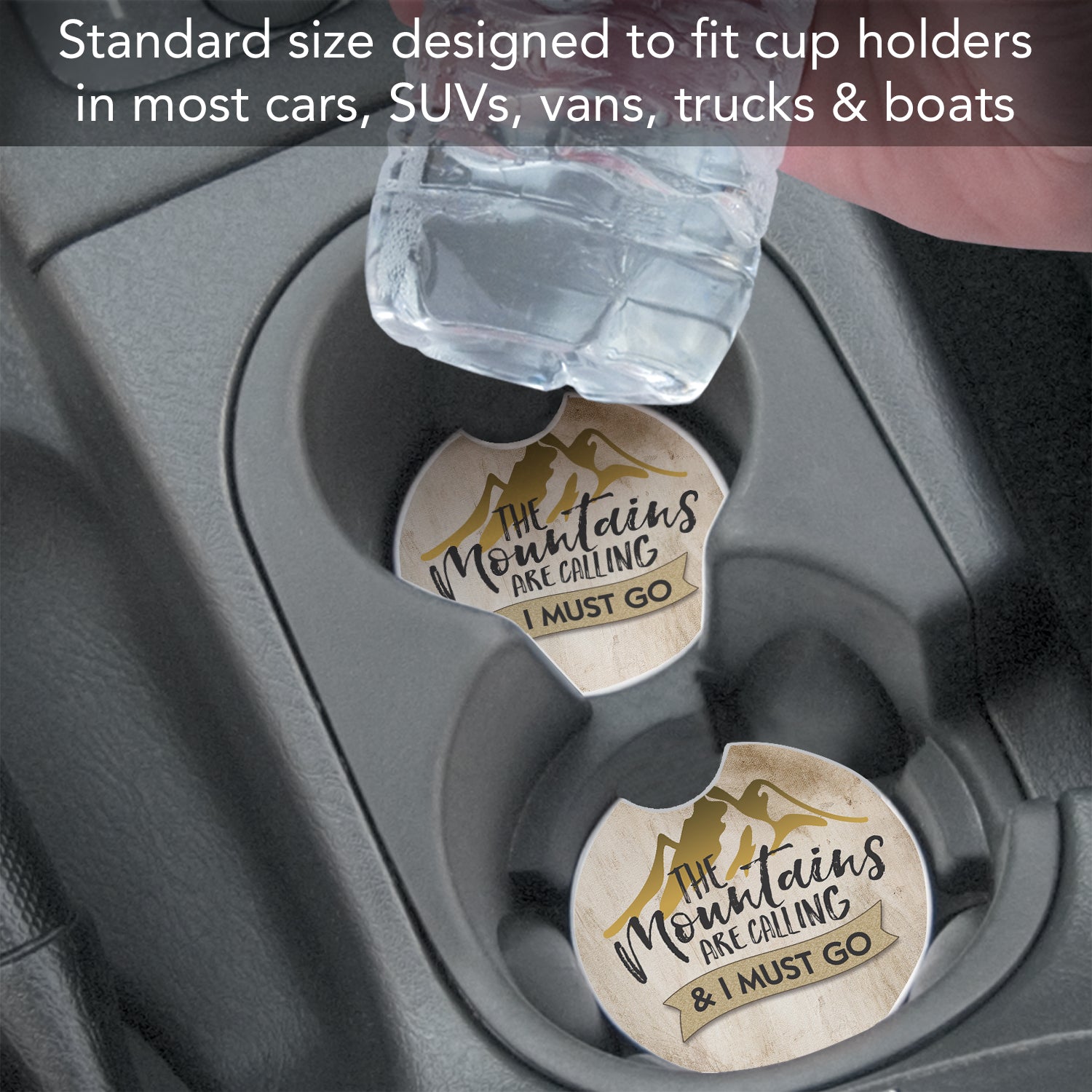 Mountains are Calling 2 Pack Absorbent Stone Car Coasters 2.6" Manufactured in the USA