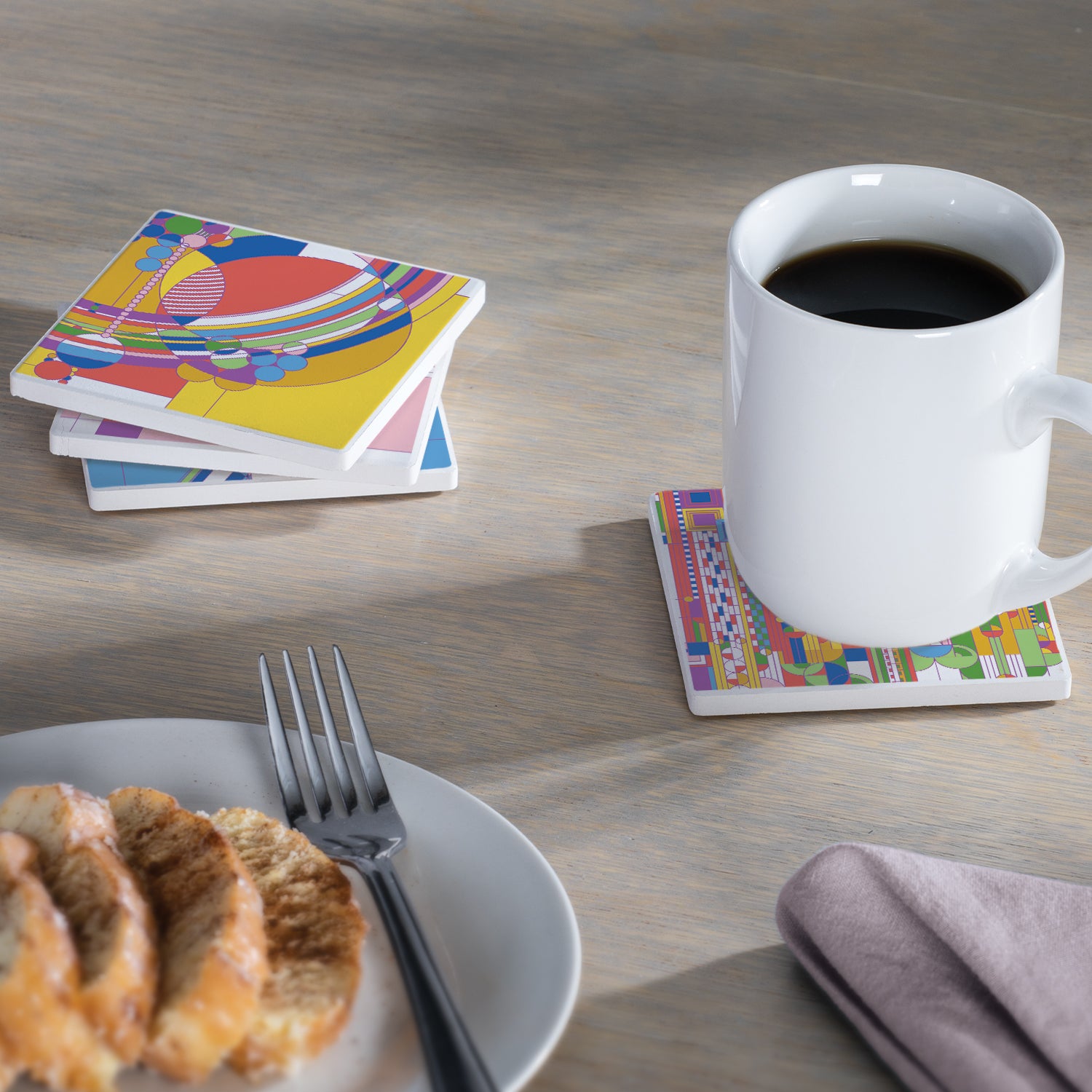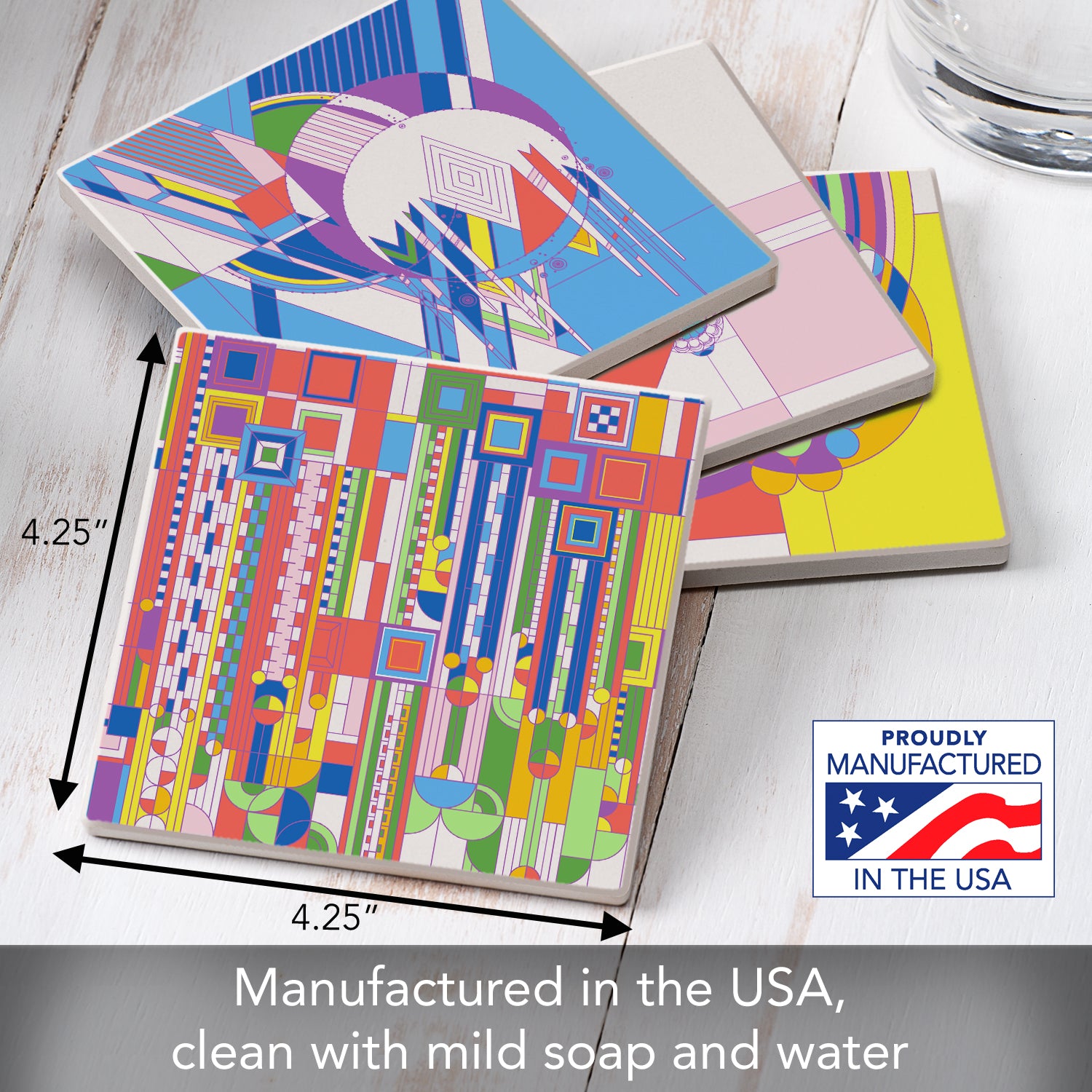 Frank Lloyd Wright 4 Pack Assorted New Liberty Covers Absorbent Stone Coasters Manufactured in the USA
