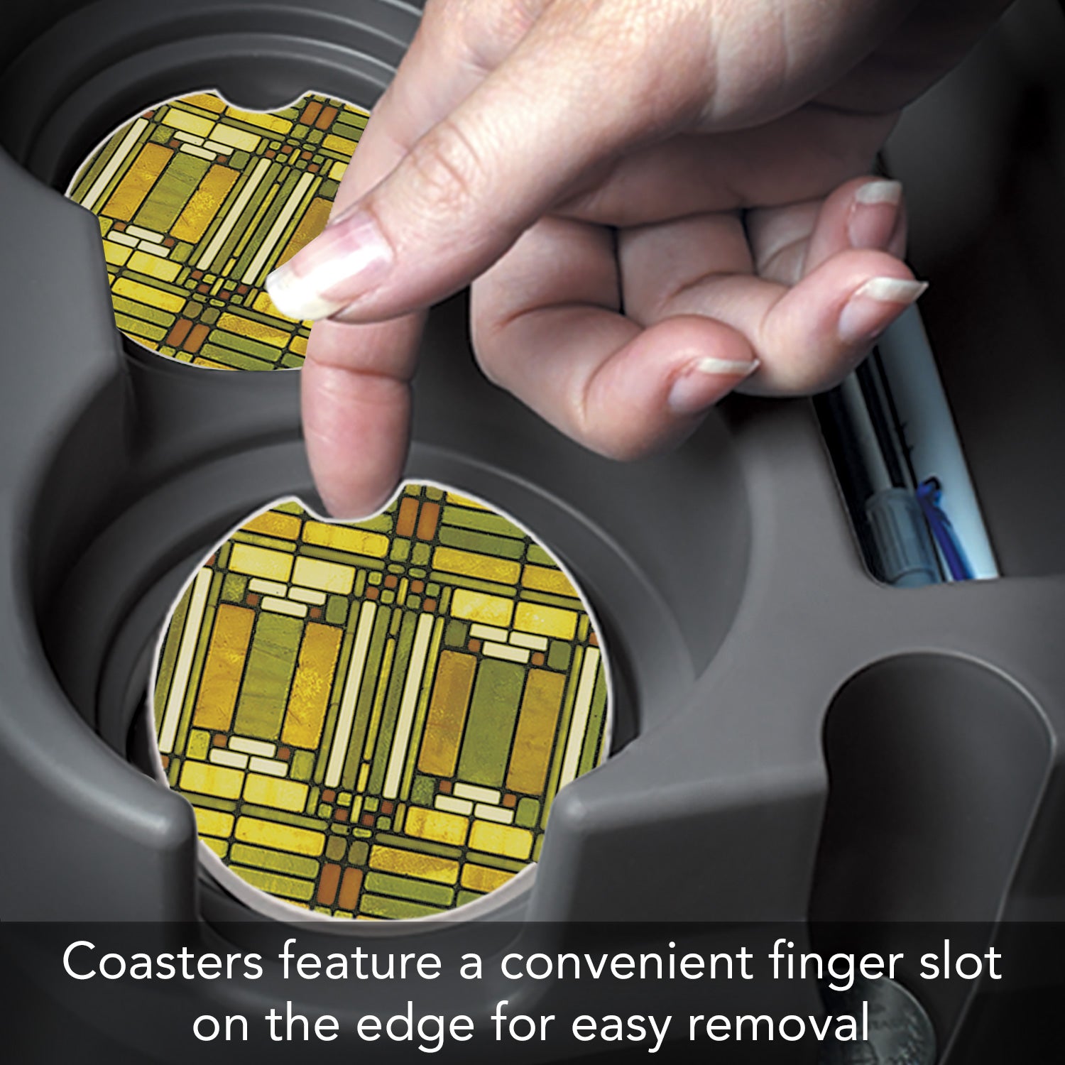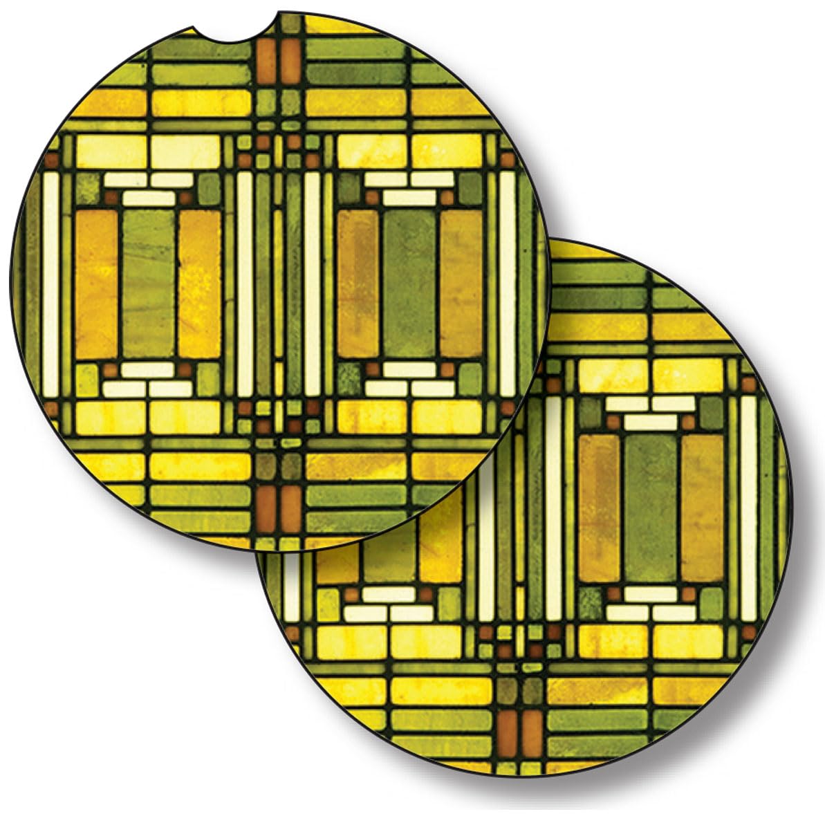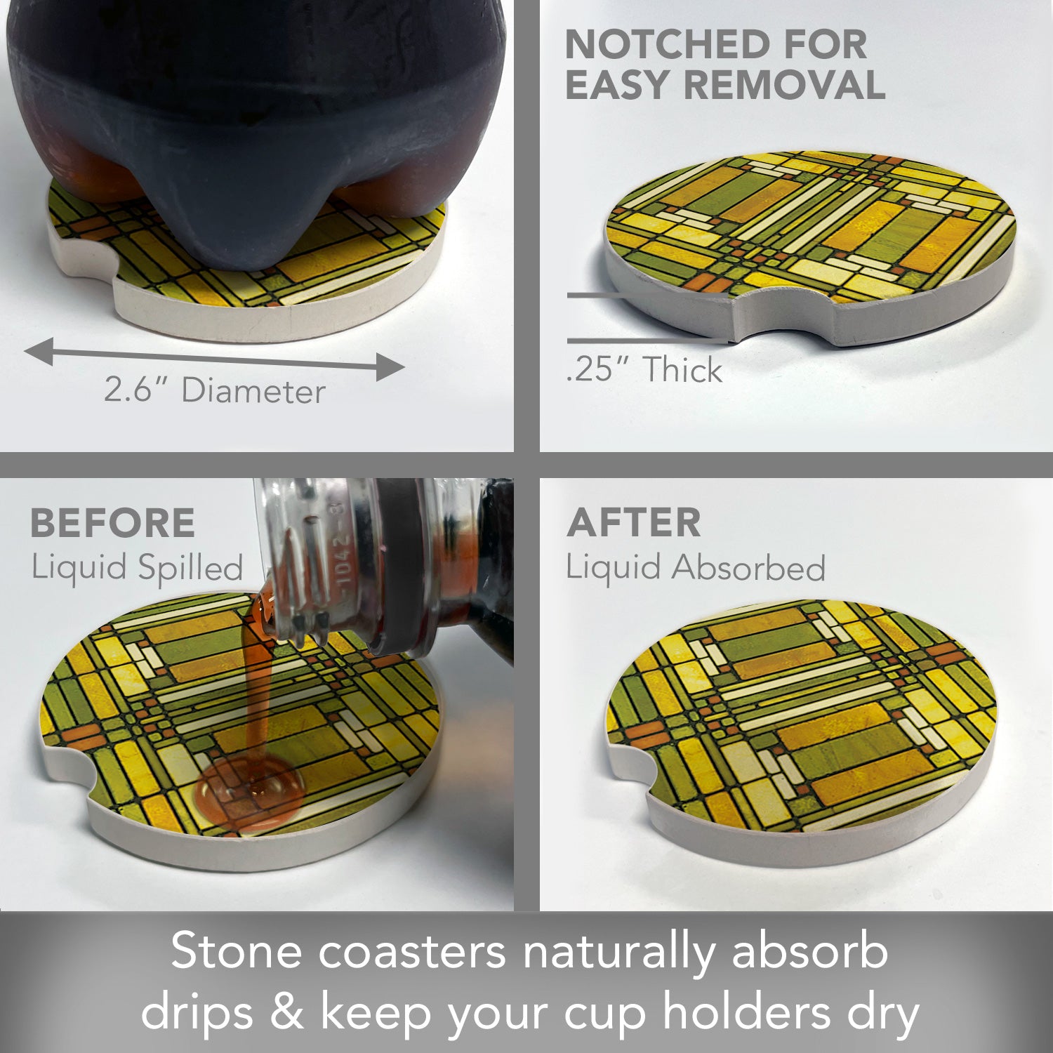 Frank Lloyd Wright 2 Pack Stone Car Coaster Oak Park Design 2.6” Diameter Manufactured in the USA