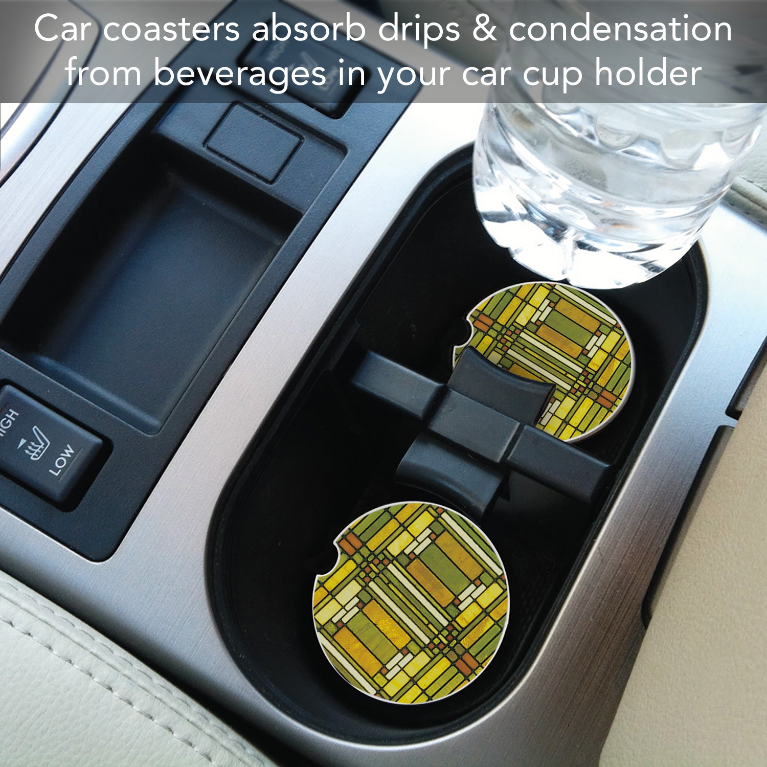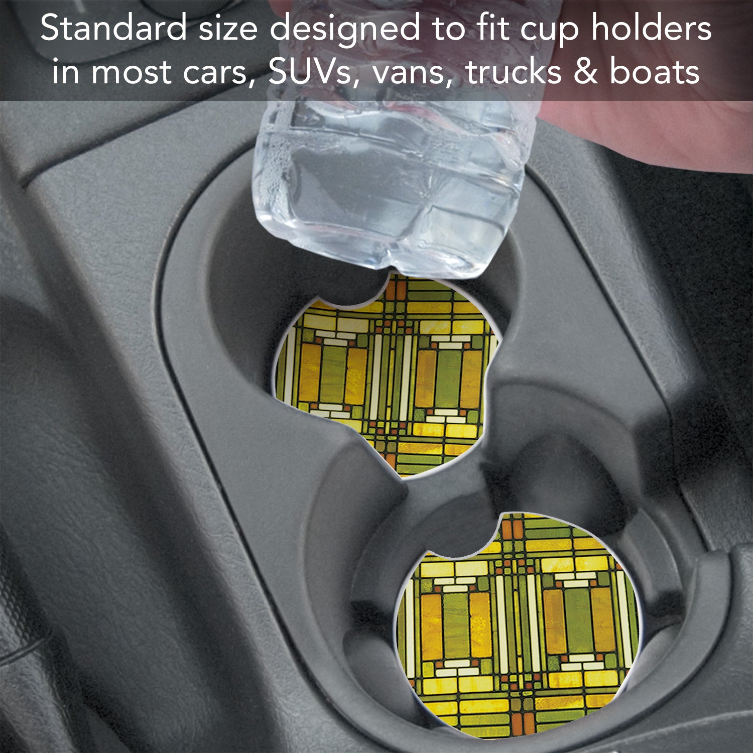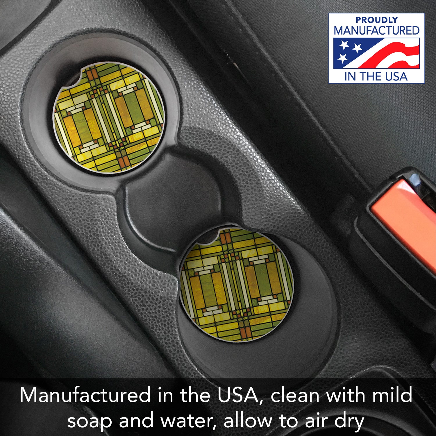 Frank Lloyd Wright 2 Pack Stone Car Coaster Oak Park Design 2.6” Diameter Manufactured in the USA