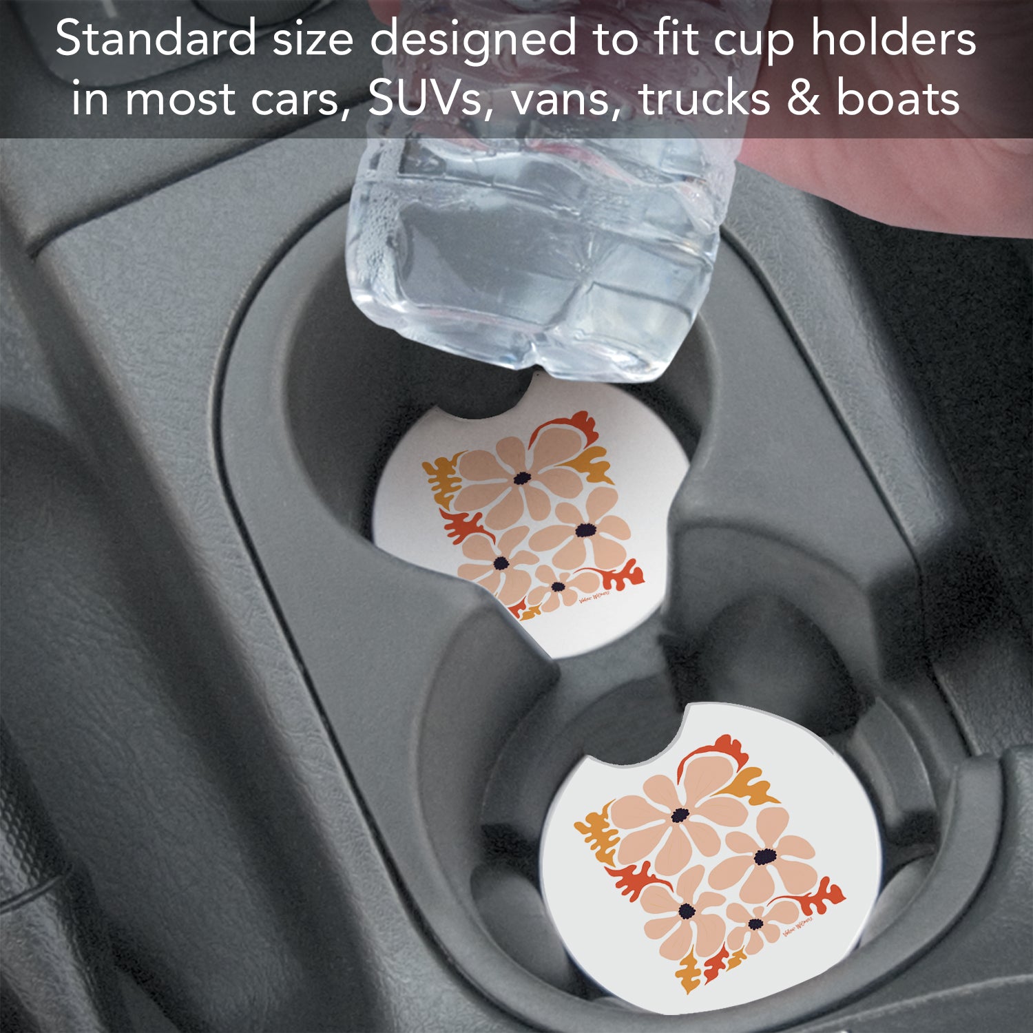 Peach Floral 2 Pack Absorbent Stone Car Coasters 2.6" Manufactured in the USA