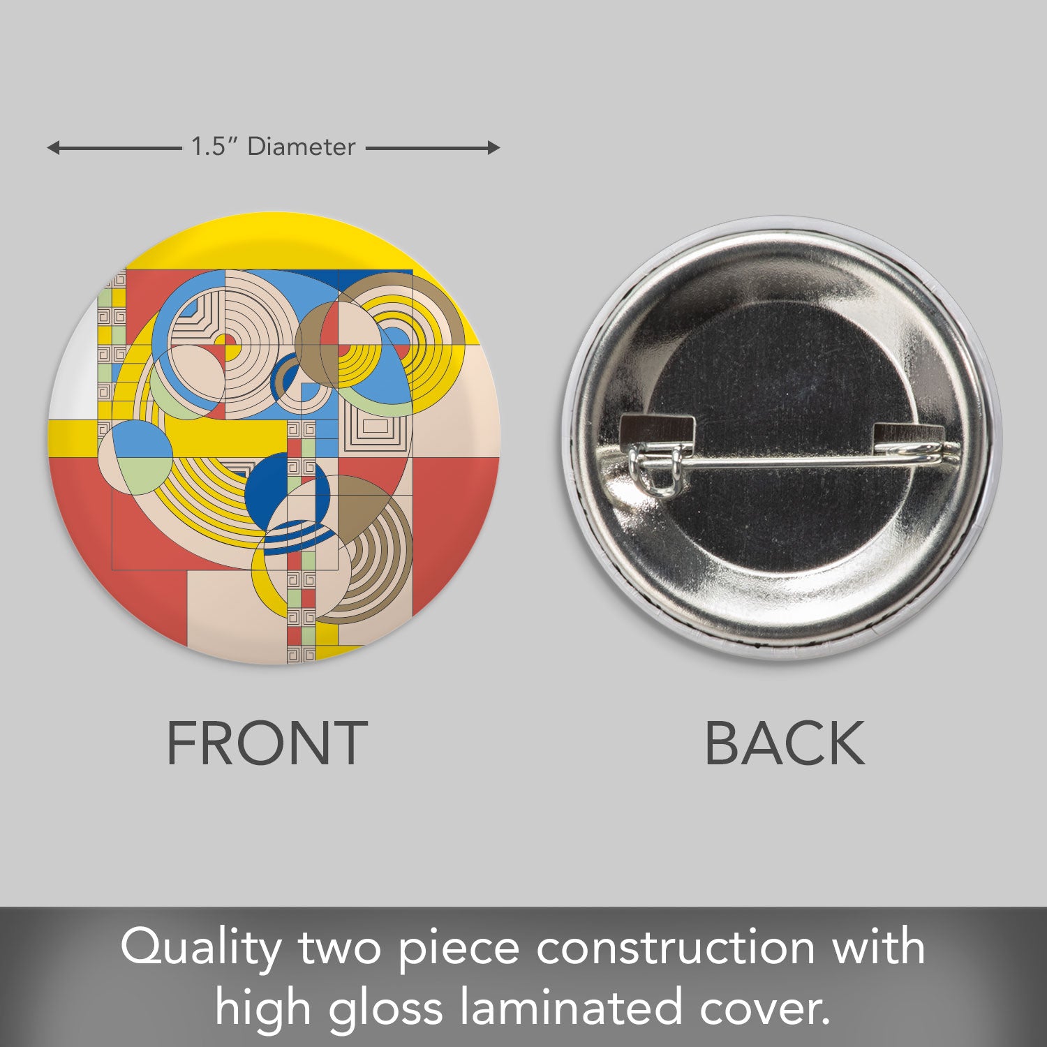 Frank Lloyd Wright 5 Piece Button Collection Rug Designs 1.5” Diameter Manufactured in the USA