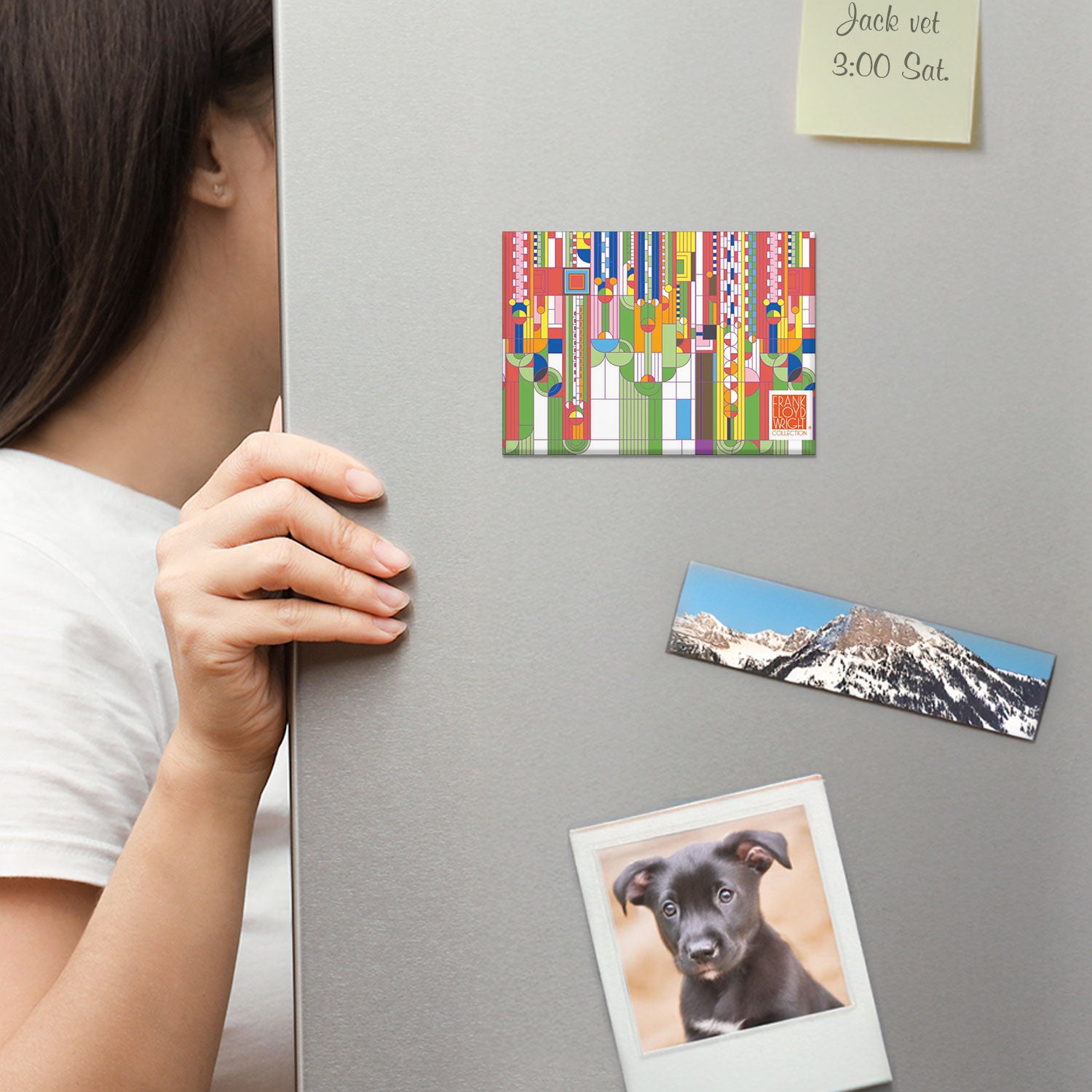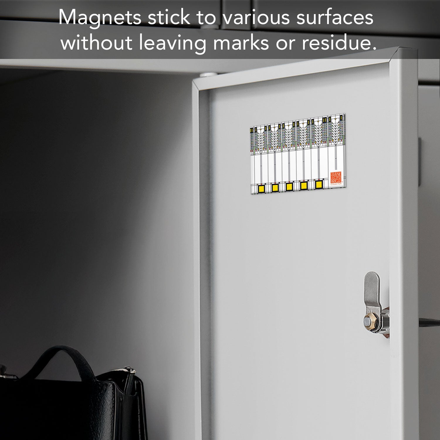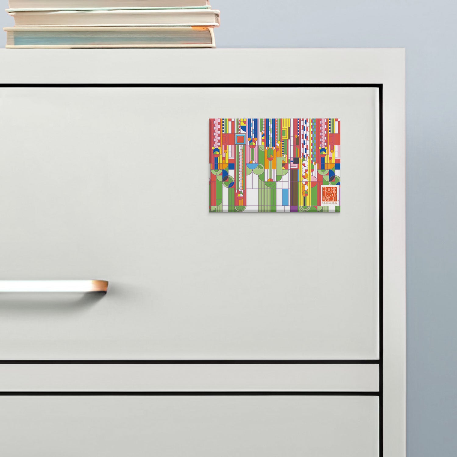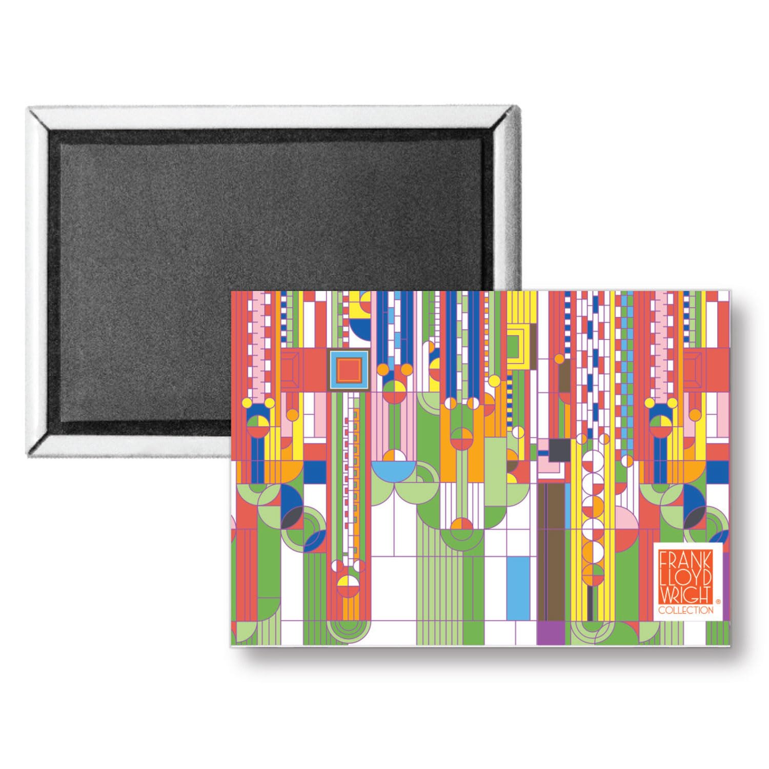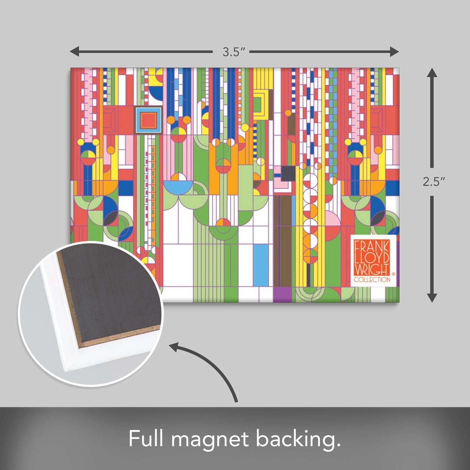DECORATIVE MAGNET- Magnets are decorated with vibrant and bold colors. Glossy finish adds an aesthetic appeal. Each Magnet features one of Frank Lloyd Wright’s architectural designs.