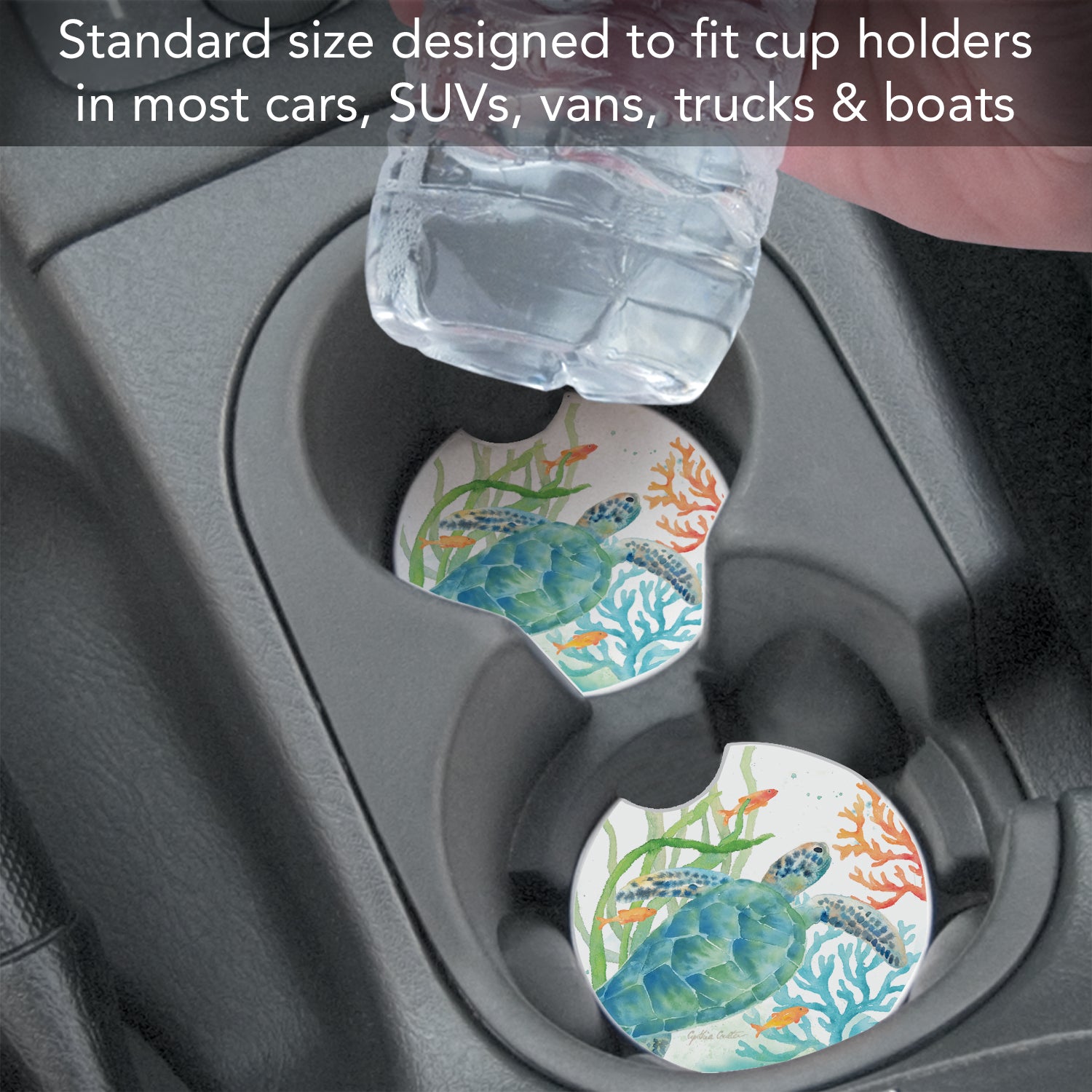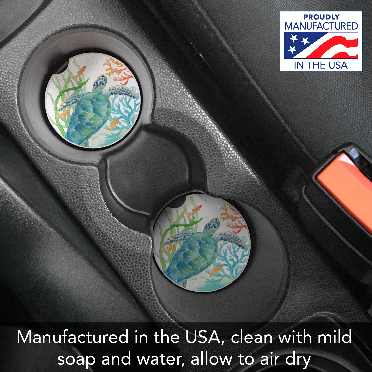 Sea Life Serenade 2 Pack Absorbent Stone Car Coasters 2.6" Manufactured in the USA