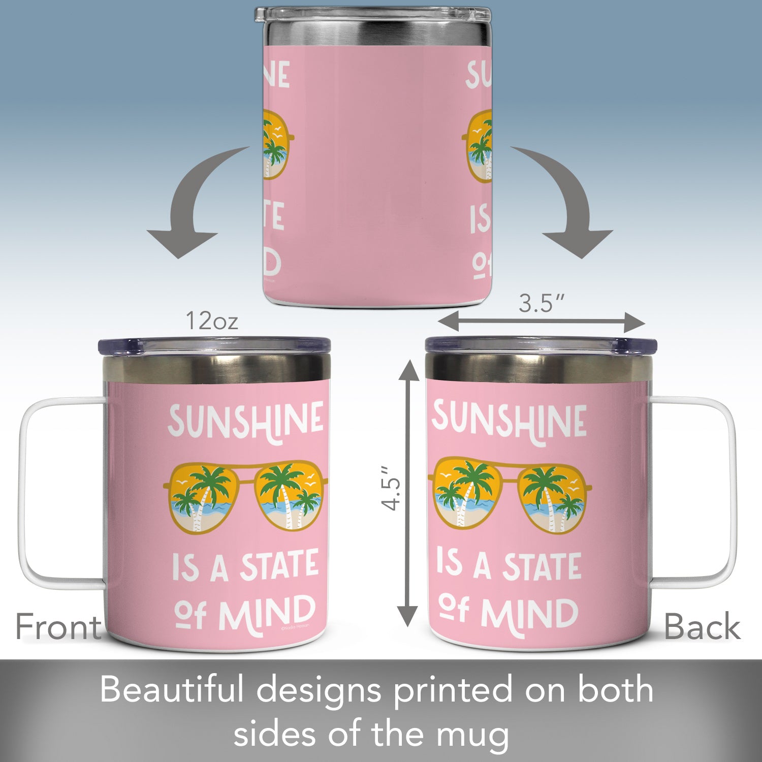 Sunshine State of Mind Stainless Steel Travel Mug with Lid 12 oz. Manufactured in the USA