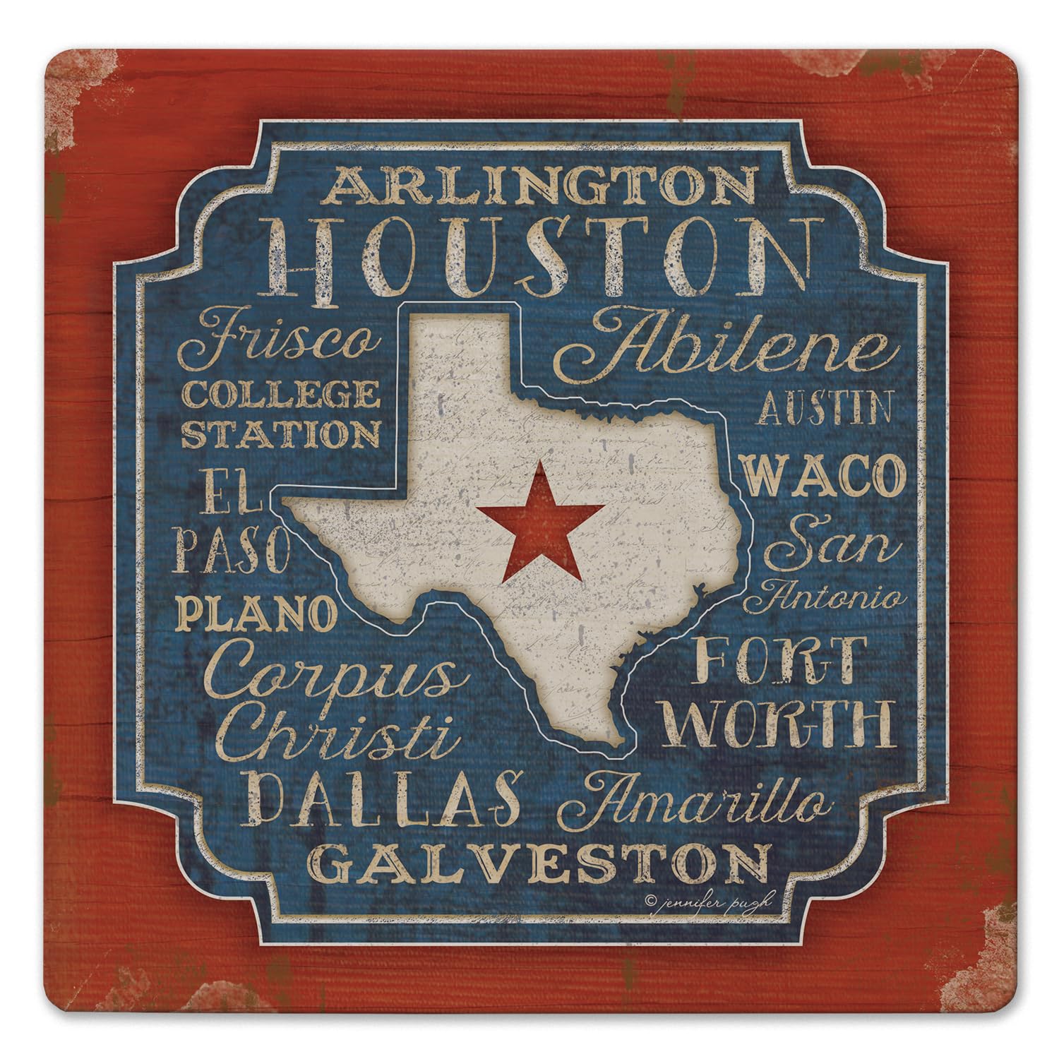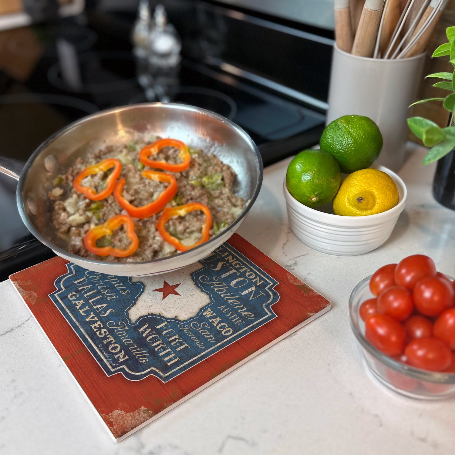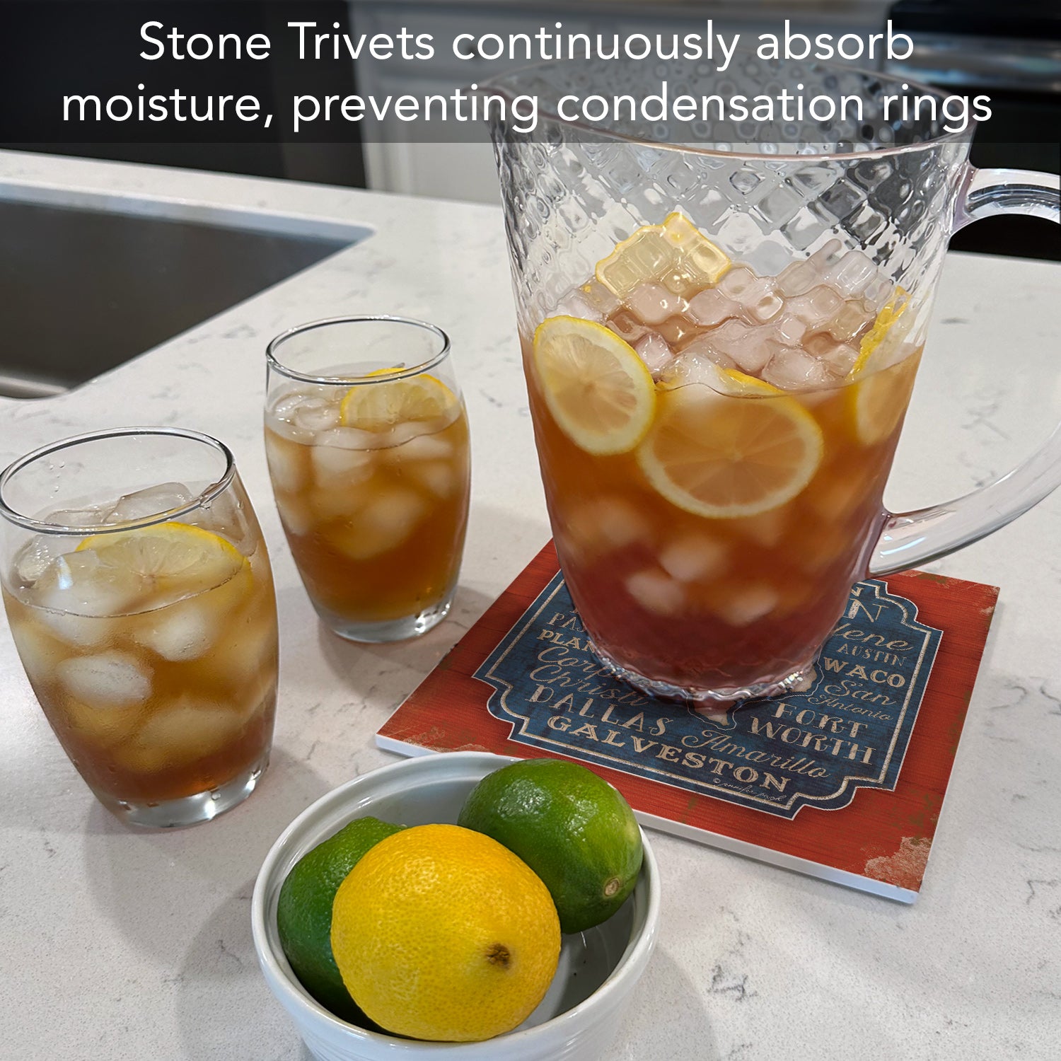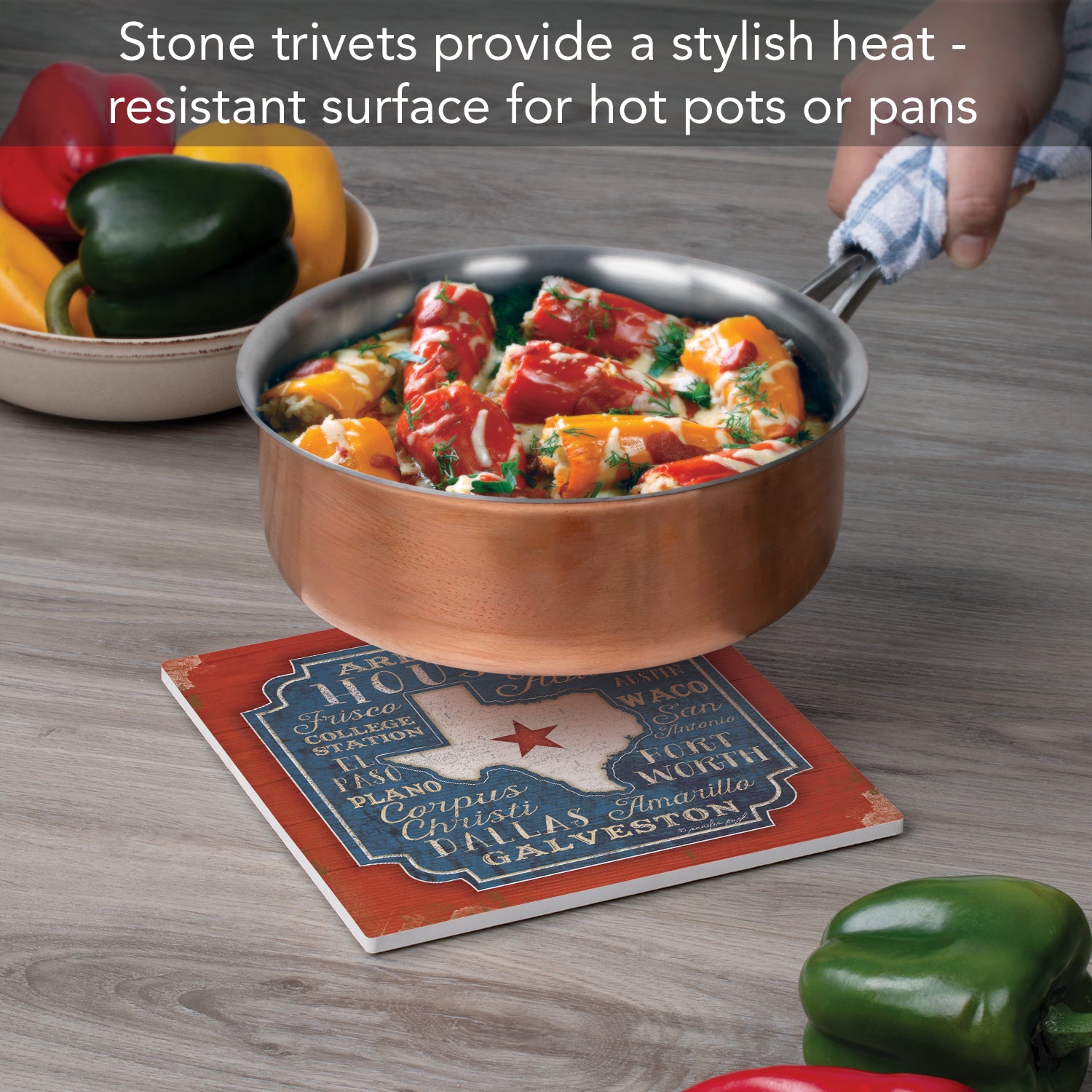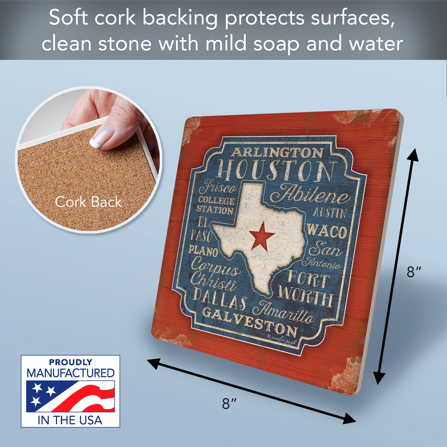 Thirstystone Texas Cities Decorative Heat Tolerant Stone Trivet with Non-Skid Cork Backing 8” Square