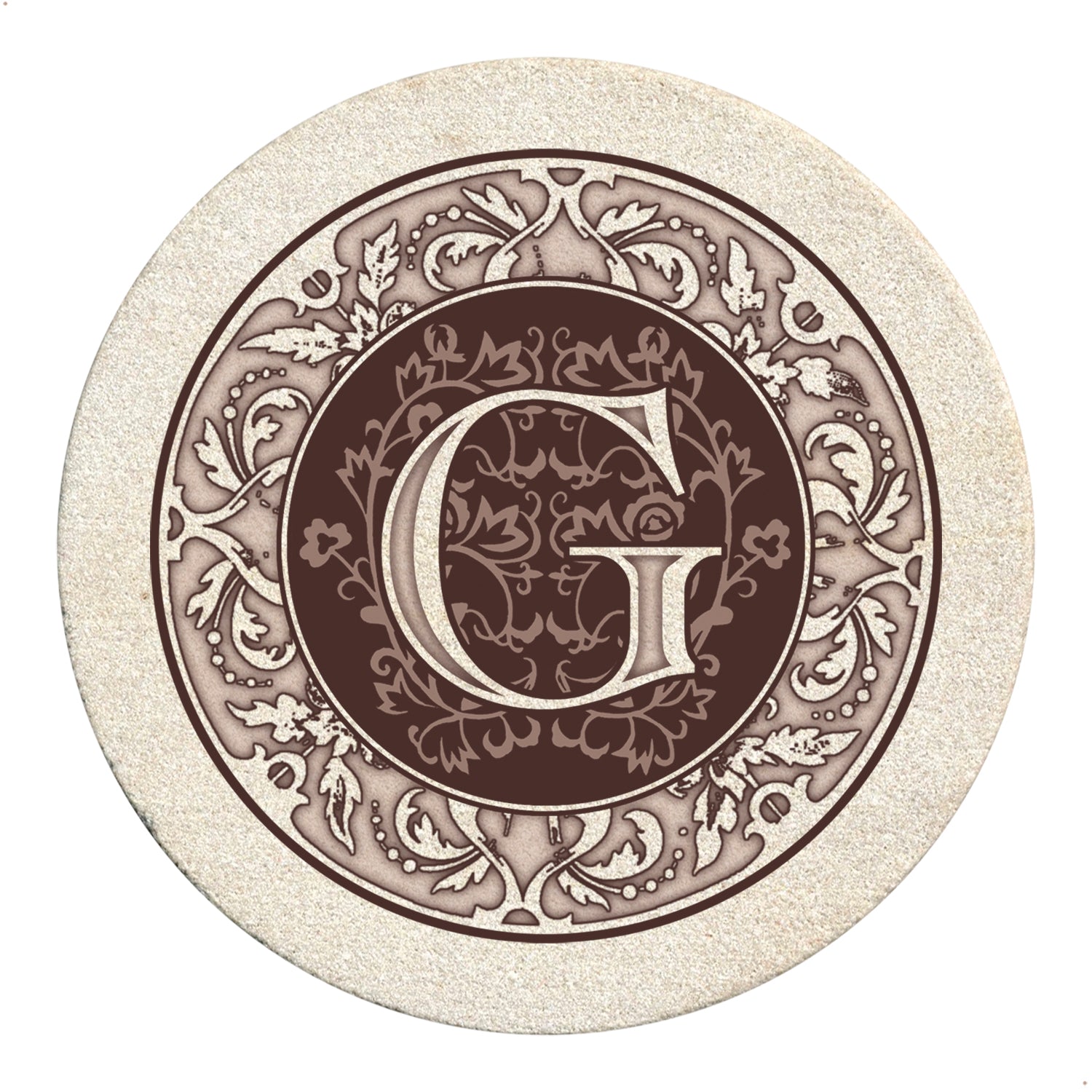 Thirstystone 4 Pack Monogram Letter G Sandstone Coasters in Bronze Iron Ram Coaster Holder 4.75" x 4.38" x 2.75"