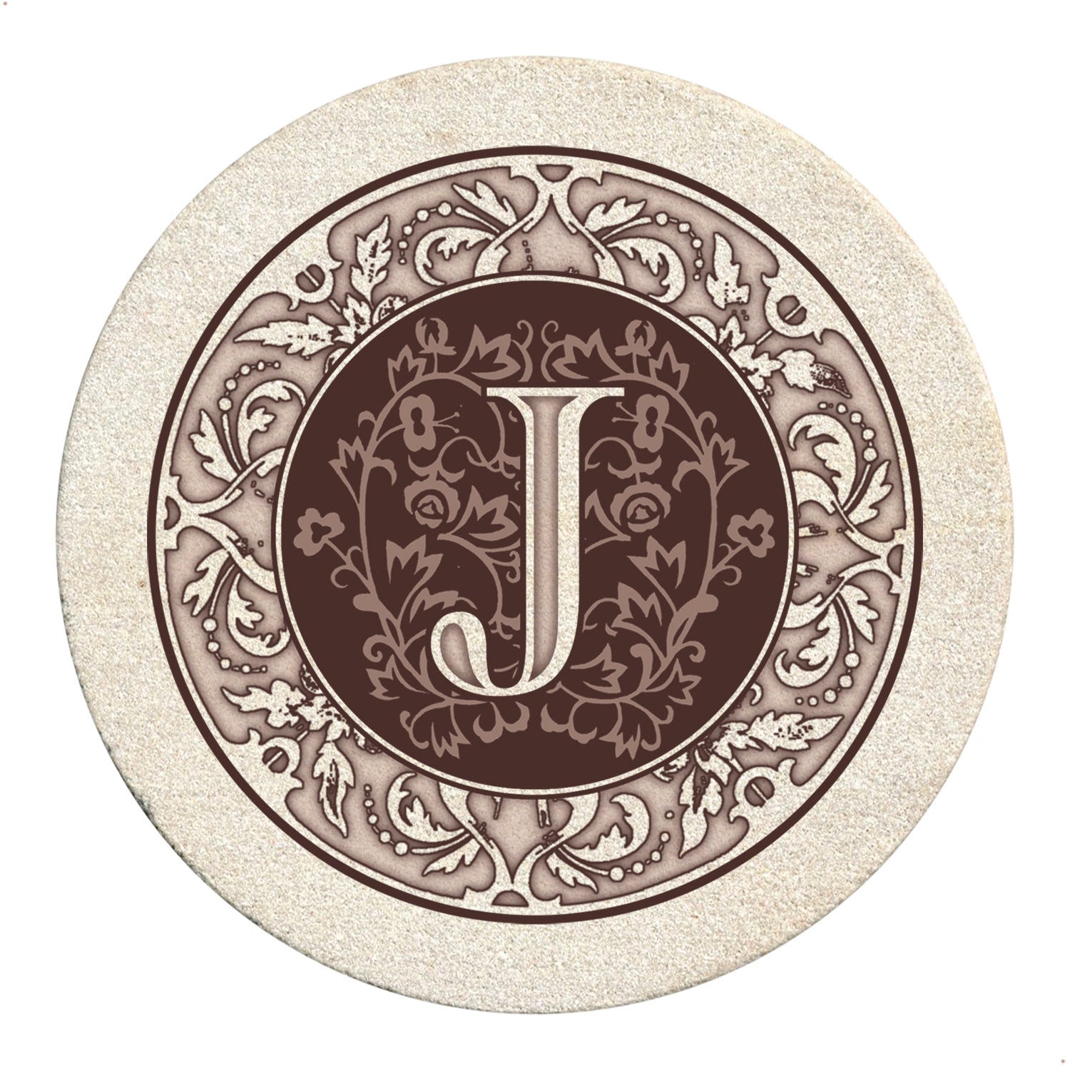 Thirstystone 4 Pack Monogram Letter J Sandstone Coasters in Bronze Iron Ram Coaster Holder 4.75" x 4.38" x 2.75"