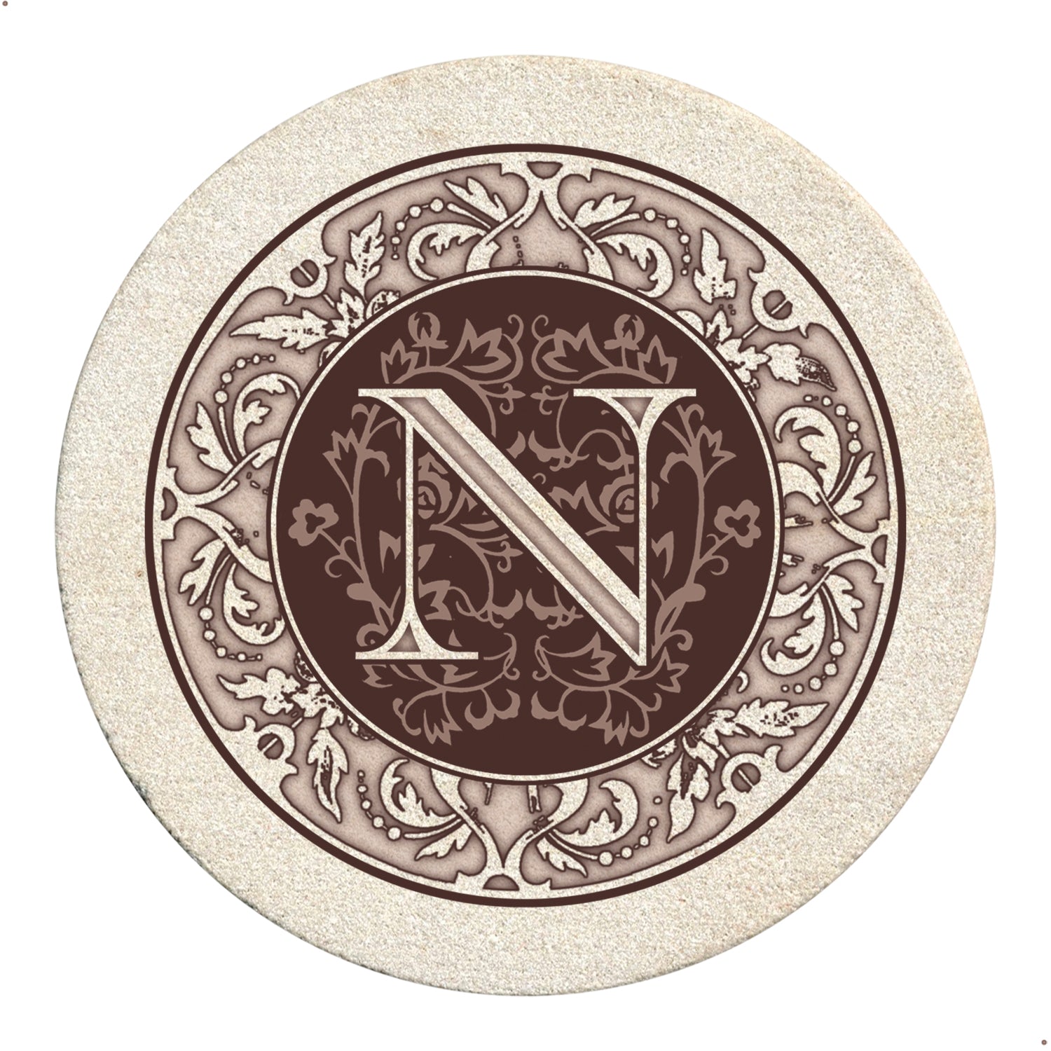 Thirstystone 4 Pack Monogram Letter N Sandstone Coasters in Bronze Iron Ram Coaster Holder 4.75" x 4.38" x 2.75"
