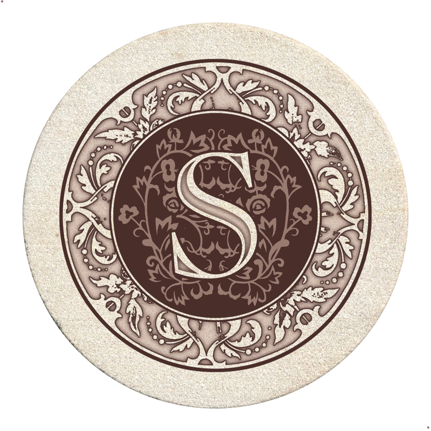 Thirstystone 4 Pack Monogram Letter S Sandstone Coasters in Bronze Iron Ram Coaster Holder 4.75" x 4.38" x 2.75"