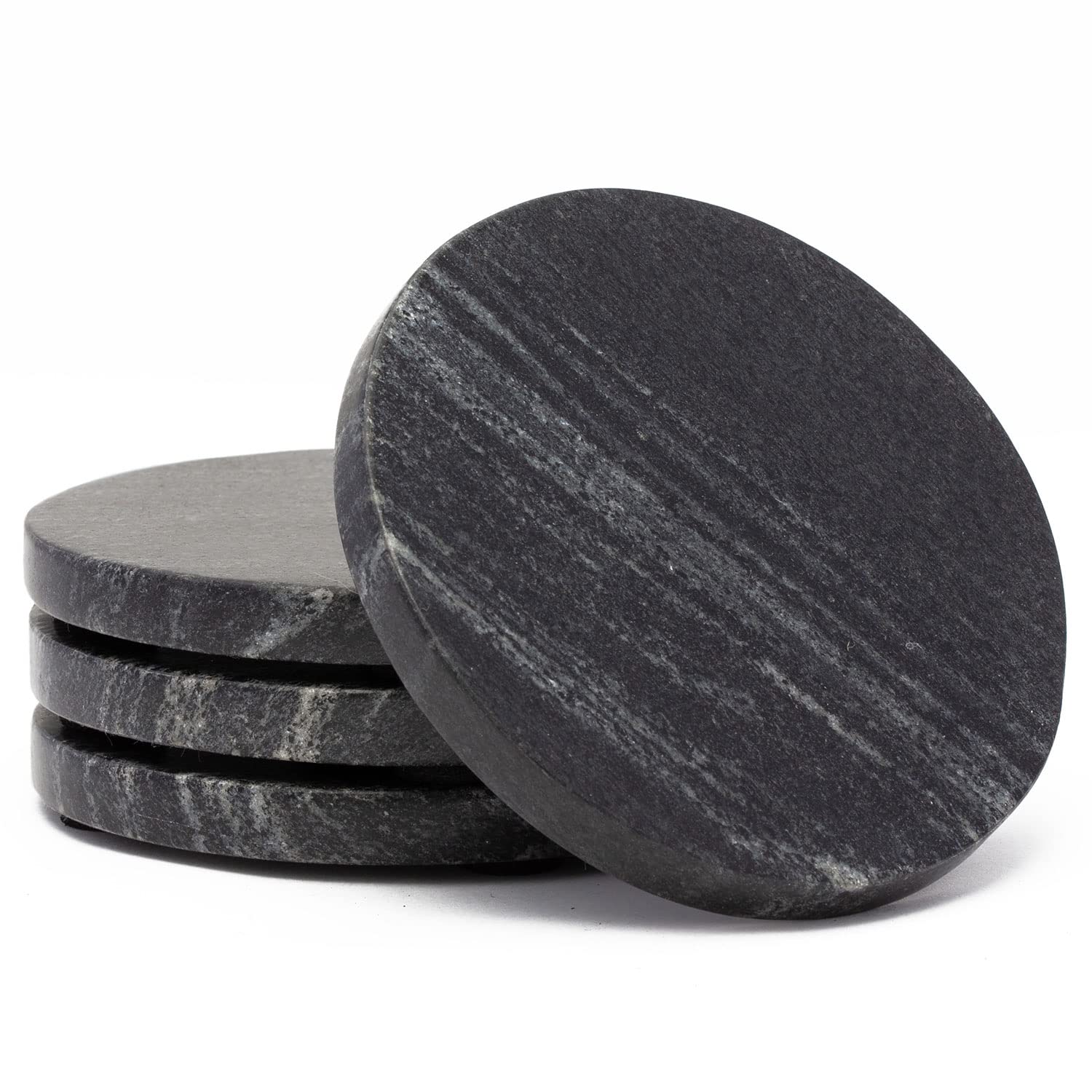 Thirstystone 4 Pack Natural Black Marble Coasters with Protective Felt Feet 4" Diameter