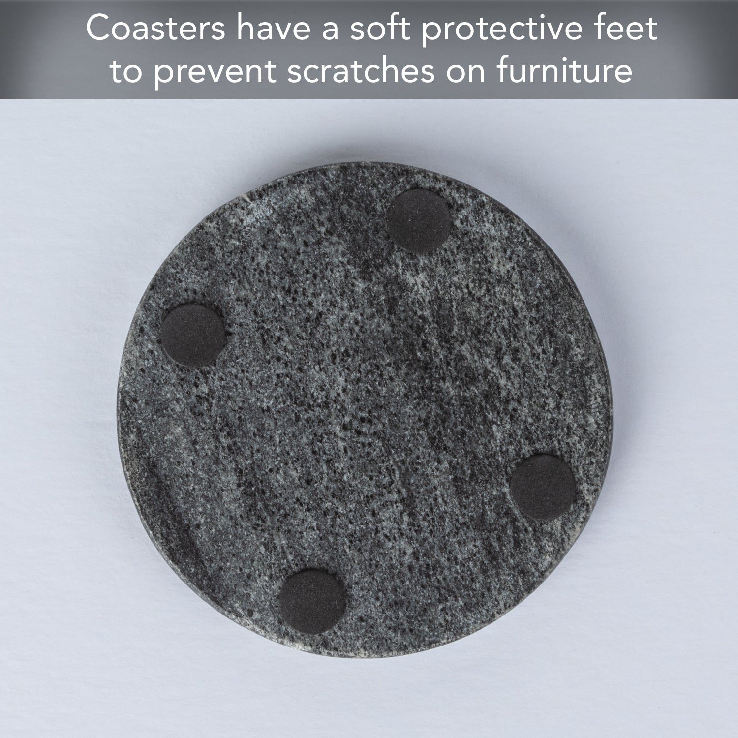 NON-SLIP-Marble coasters have a natural grip and non-slip surface that keeps glasses and mugs from sliding around. Non-Slip feet on bottom of each Coaster keeps the Coaster in place while in use.