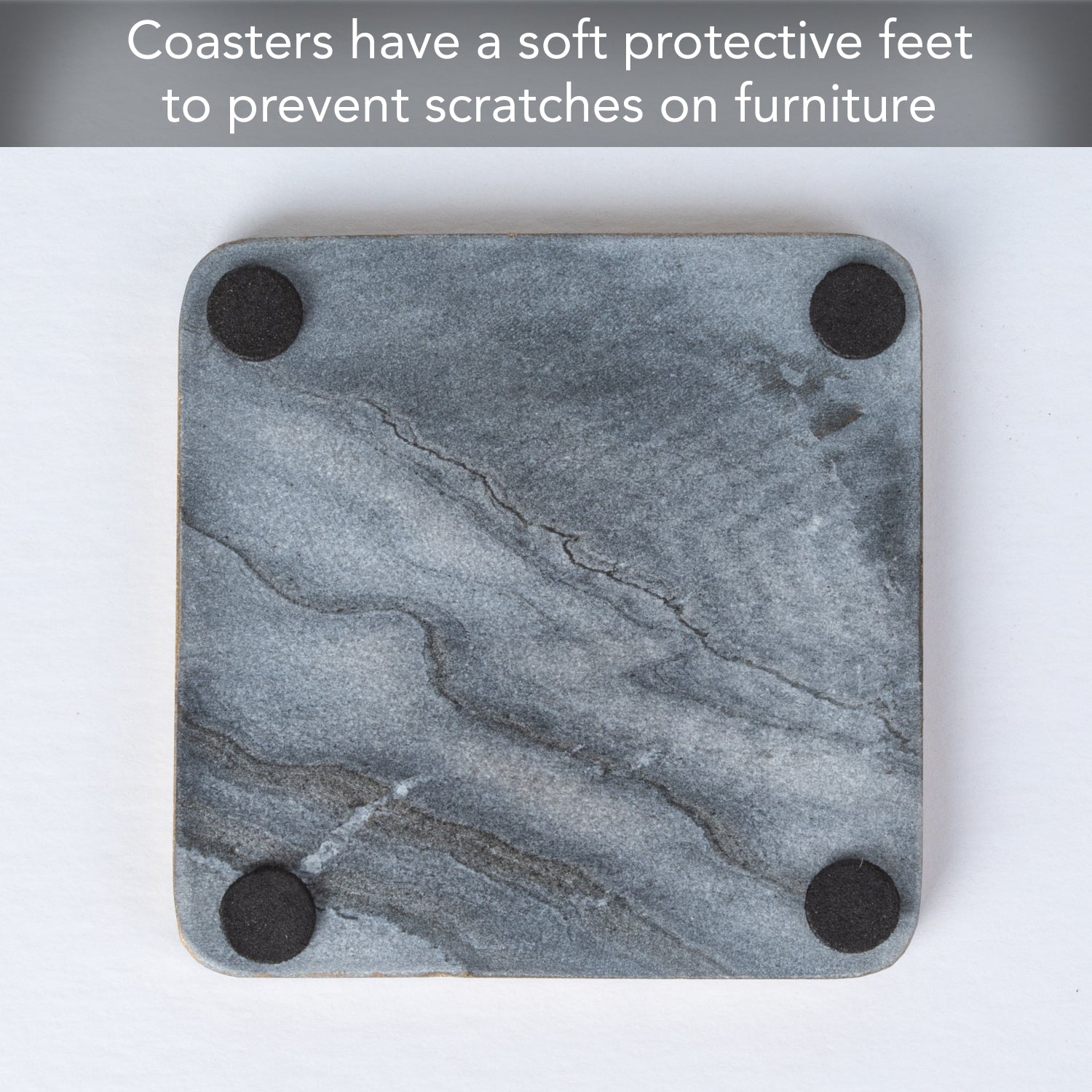 NON-SLIP- Marble coasters have a natural grip and non-slip surface that keeps glasses and mugs from sliding around. Non-Slip feet on bottom of each Coaster keeps the Coaster in place while in use.