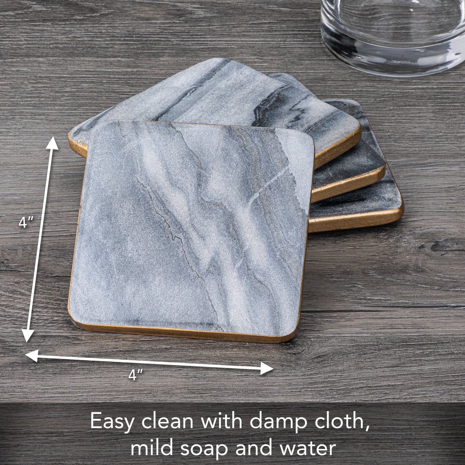 MEASURES- Each Coaster measures 4"square. Marble coasters are easily cleaned with a damp cloth or sponge, making them a low-maintenance option.