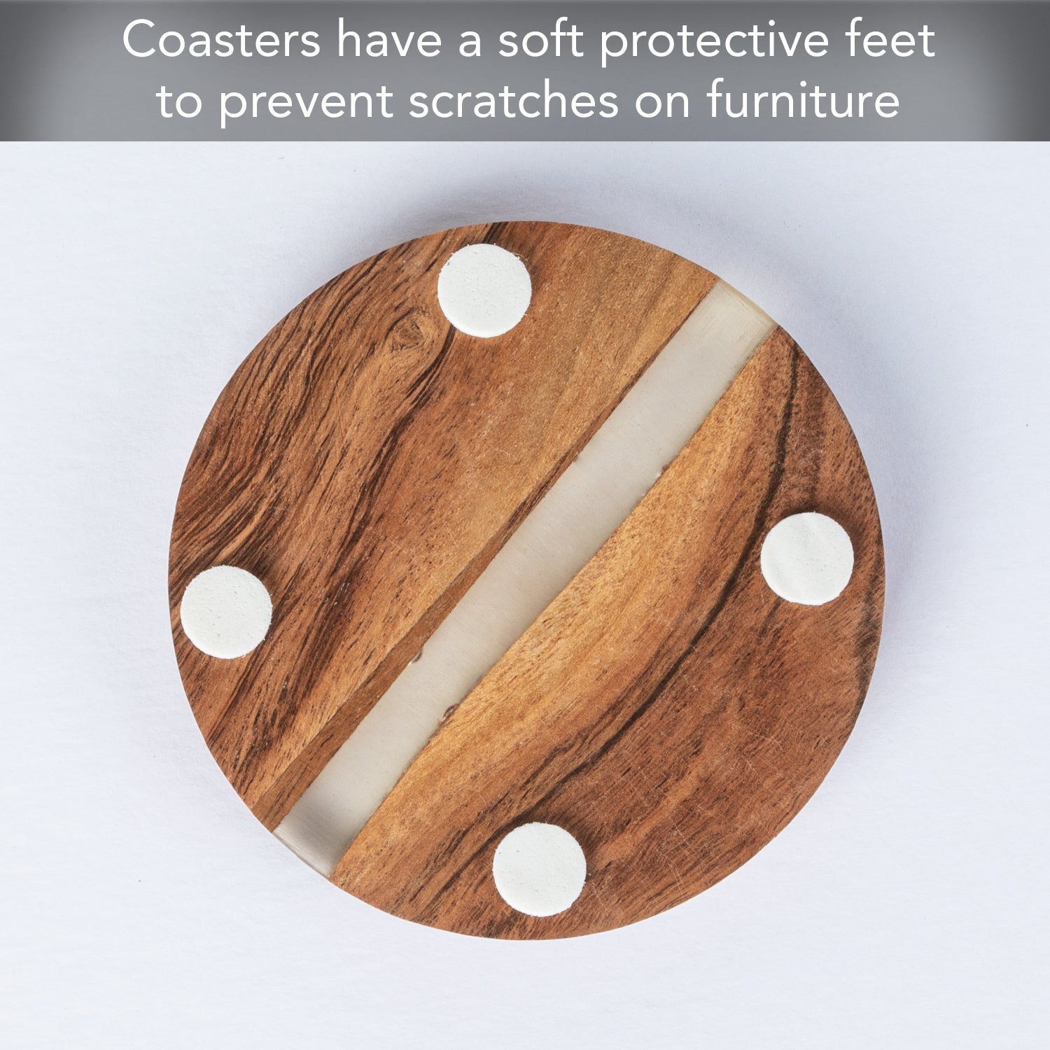 Thirstystone 4 Pack Round Acacia Wood Coasters with Decorative Resin Inlay 4" Diameter