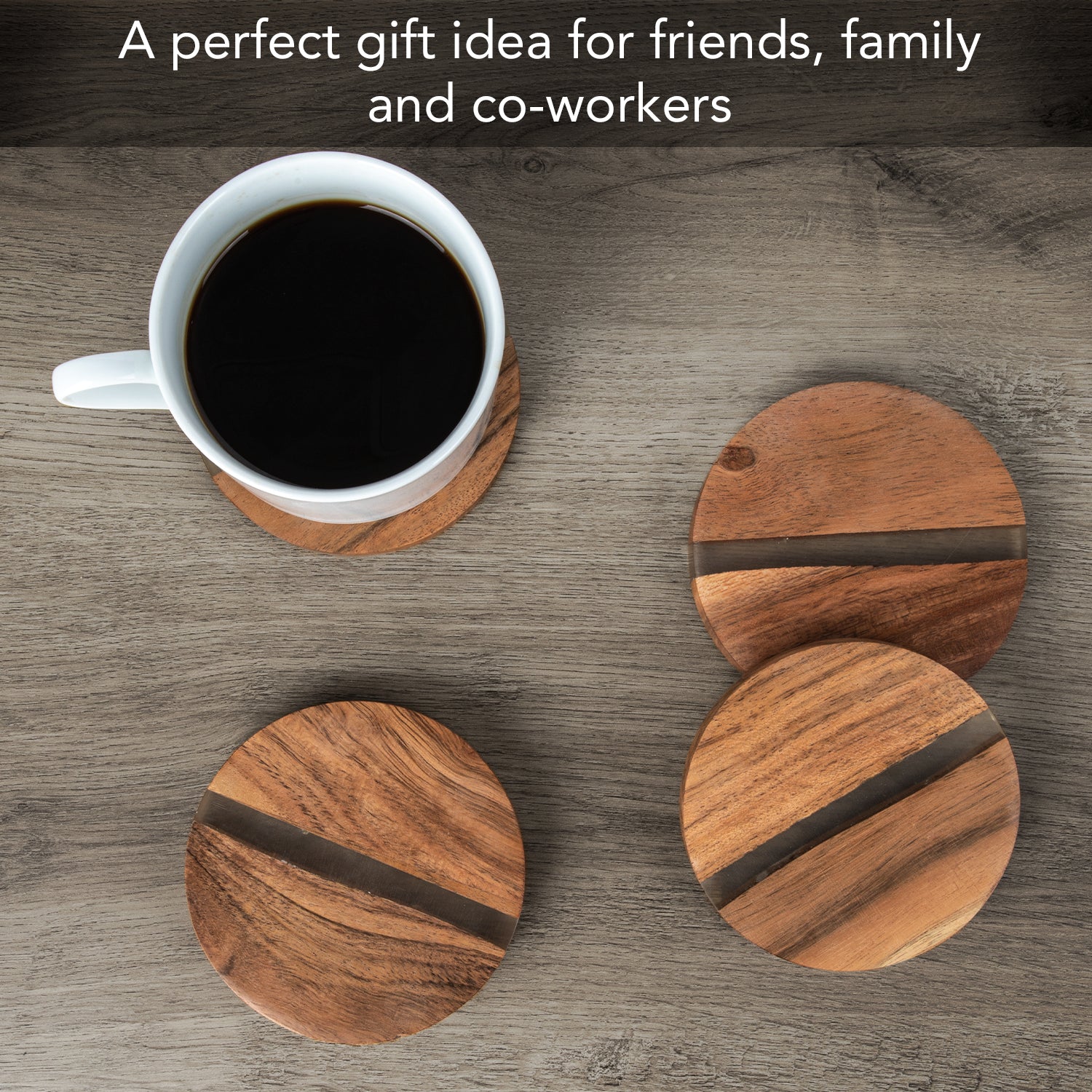UNIQUE PATTERNS-Acacia wood has a unique pattern of grains and colors, which makes each coaster a one-of-a-kind piece. Resin inlay adds extra design to these beautiful Coasters.