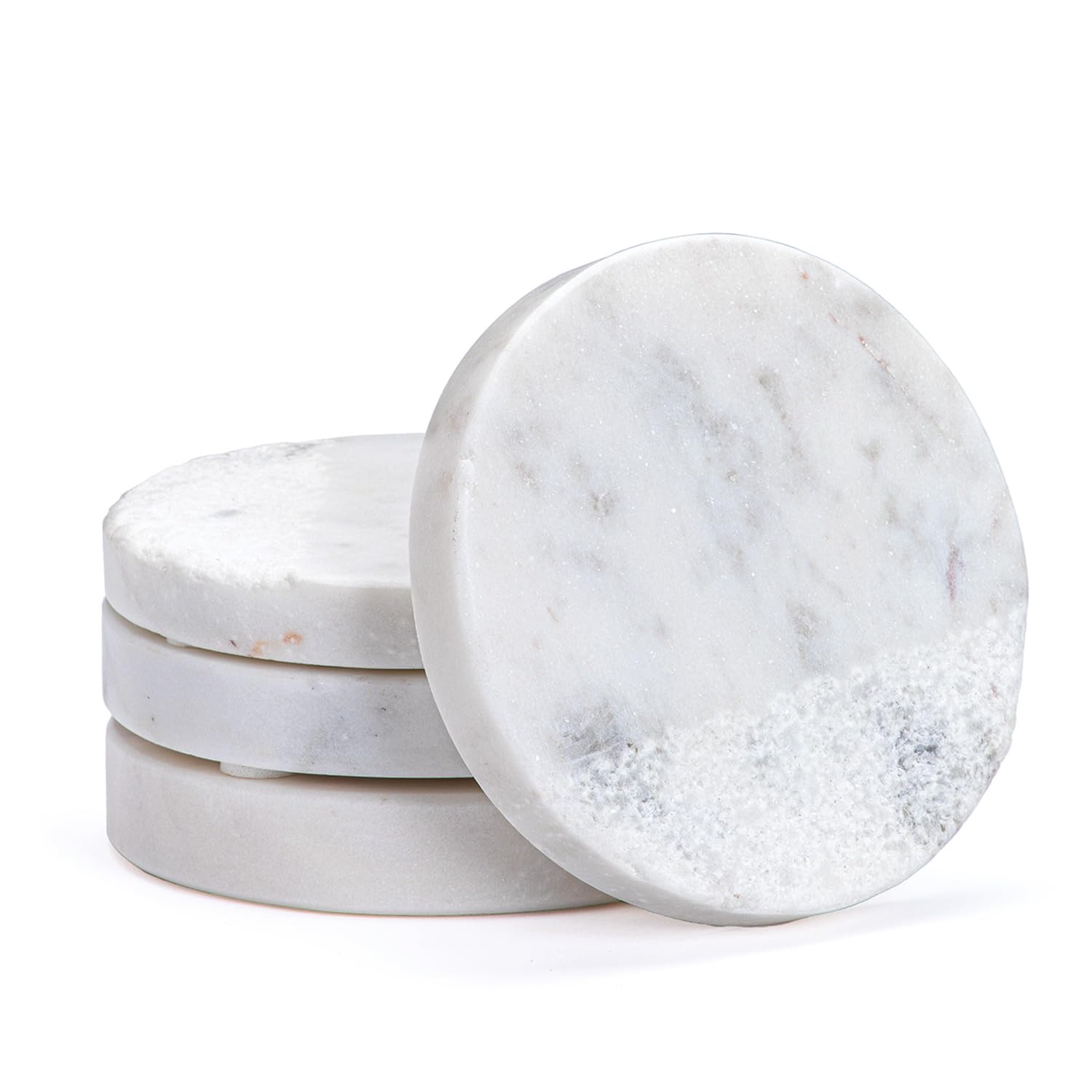 Thirstystone 4 Pack Round Natural White Marble Textured Coasters 4" Diameter