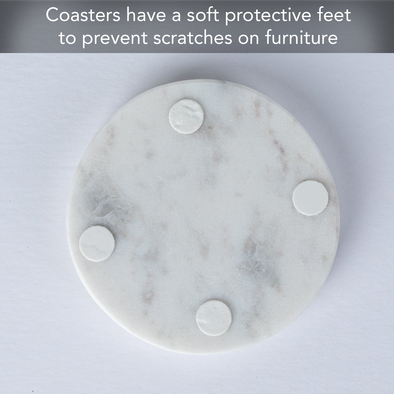 NON-SLIP- Marble coasters have a natural grip and non-slip surface that keeps glasses and mugs from sliding around. Non-Slip feet on bottom of each Coaster keeps the Coaster in place while in use.