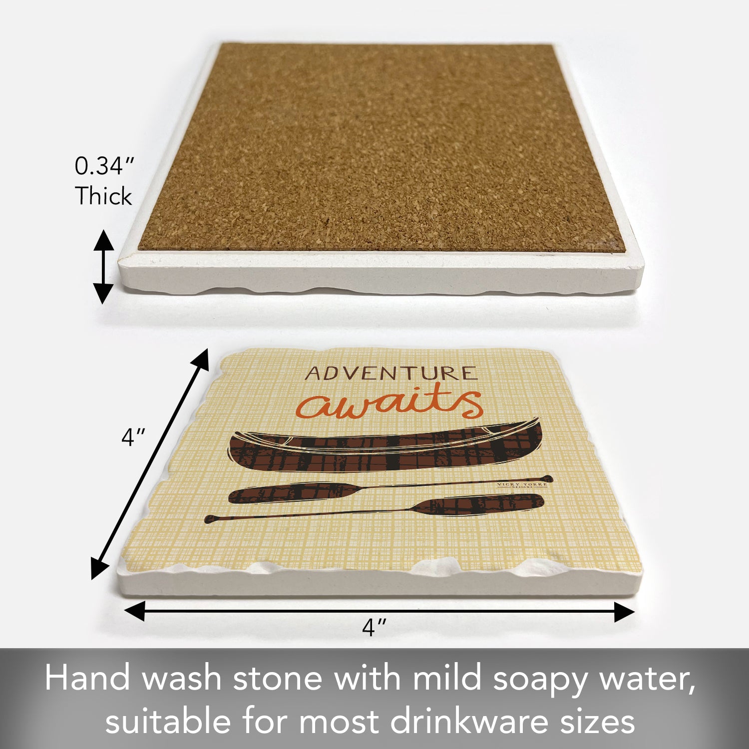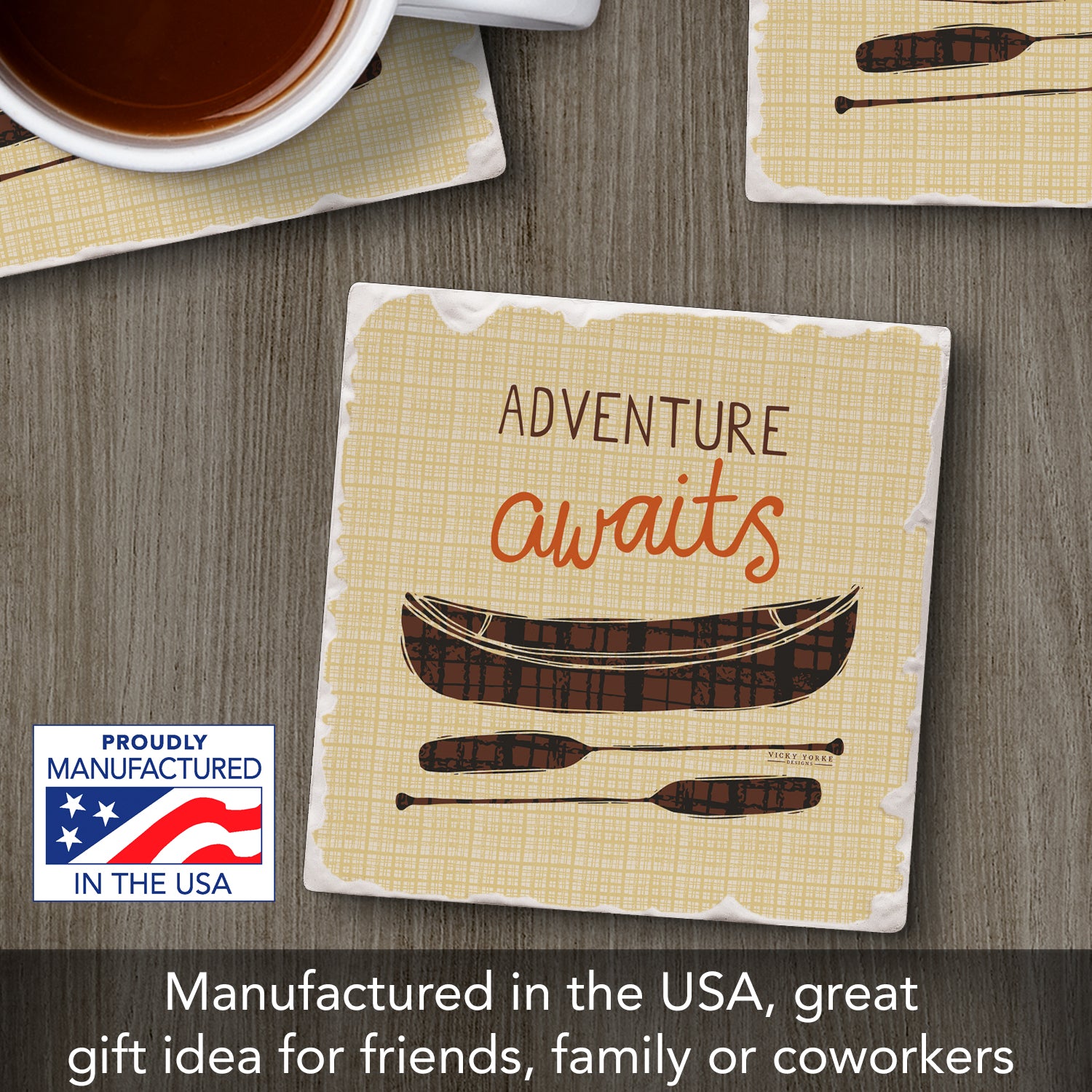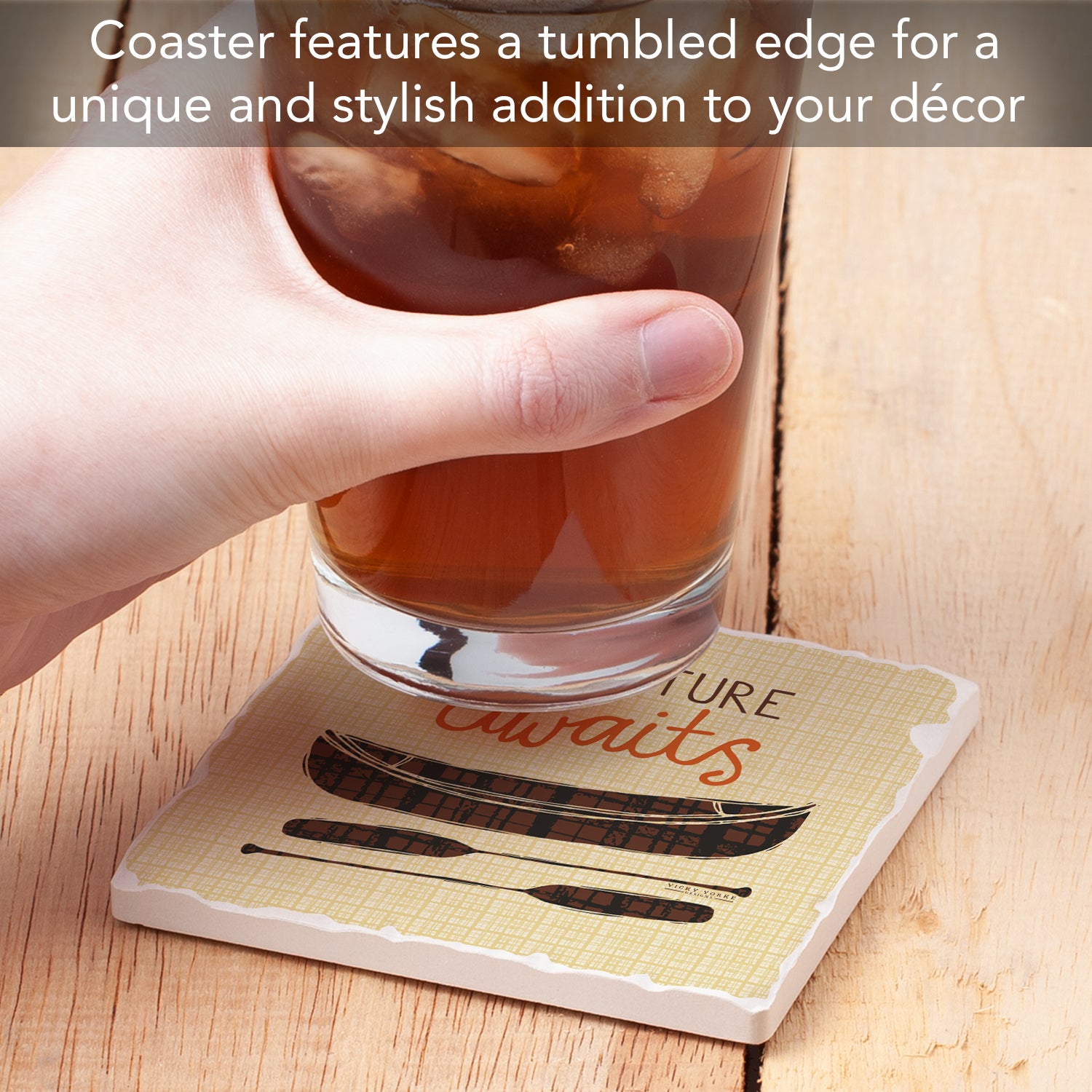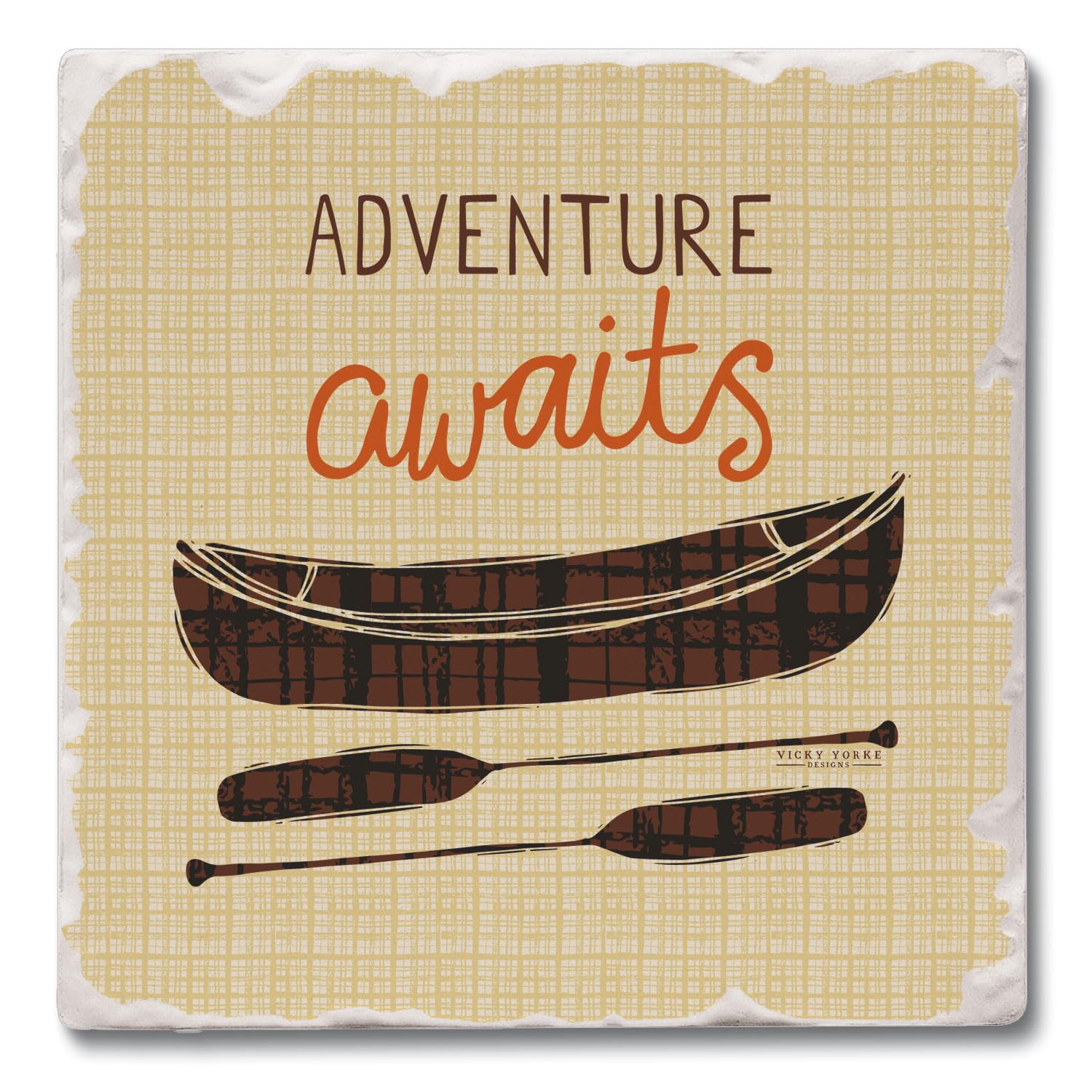 Thirstystone Adventure Awaits Single Tumbled Tile Stone Coaster with Protective Cork Backing Manufactured in The USA 4" Square, Artistic, Easily Wipes Clean