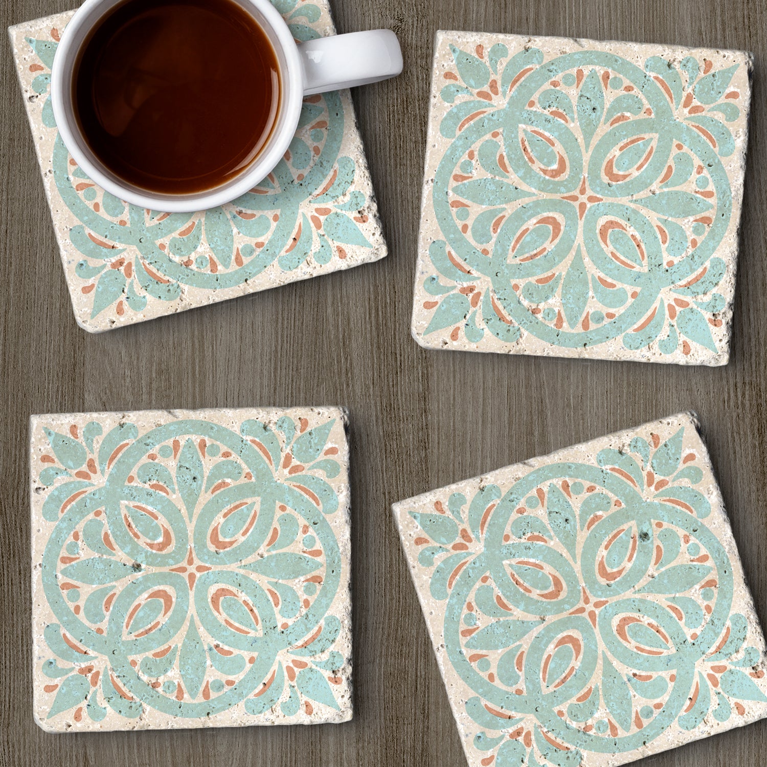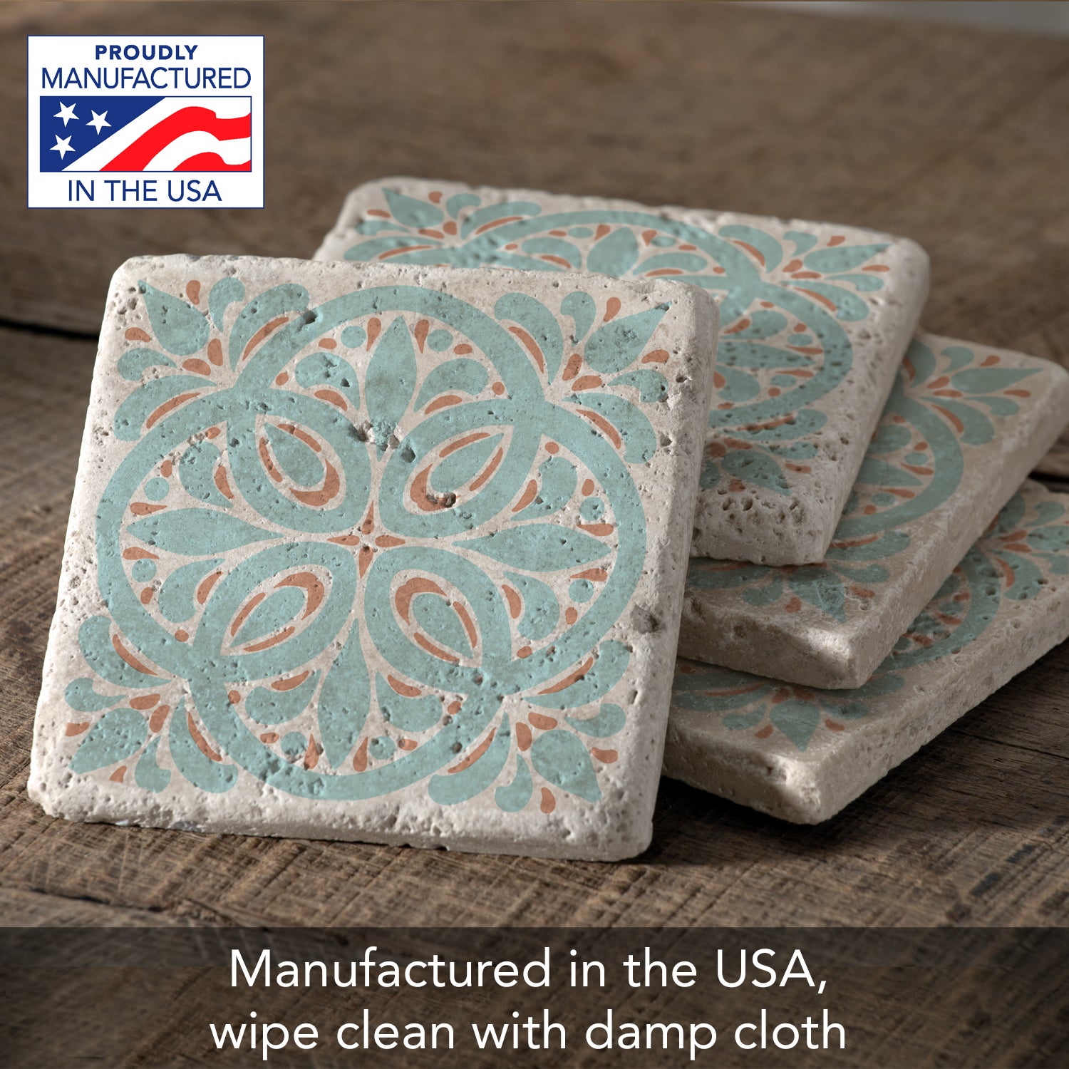 Thirstystone Aegean Tile 4 Pack Natural Travertine Absorbent Stone Coasters Manufactured in the USA