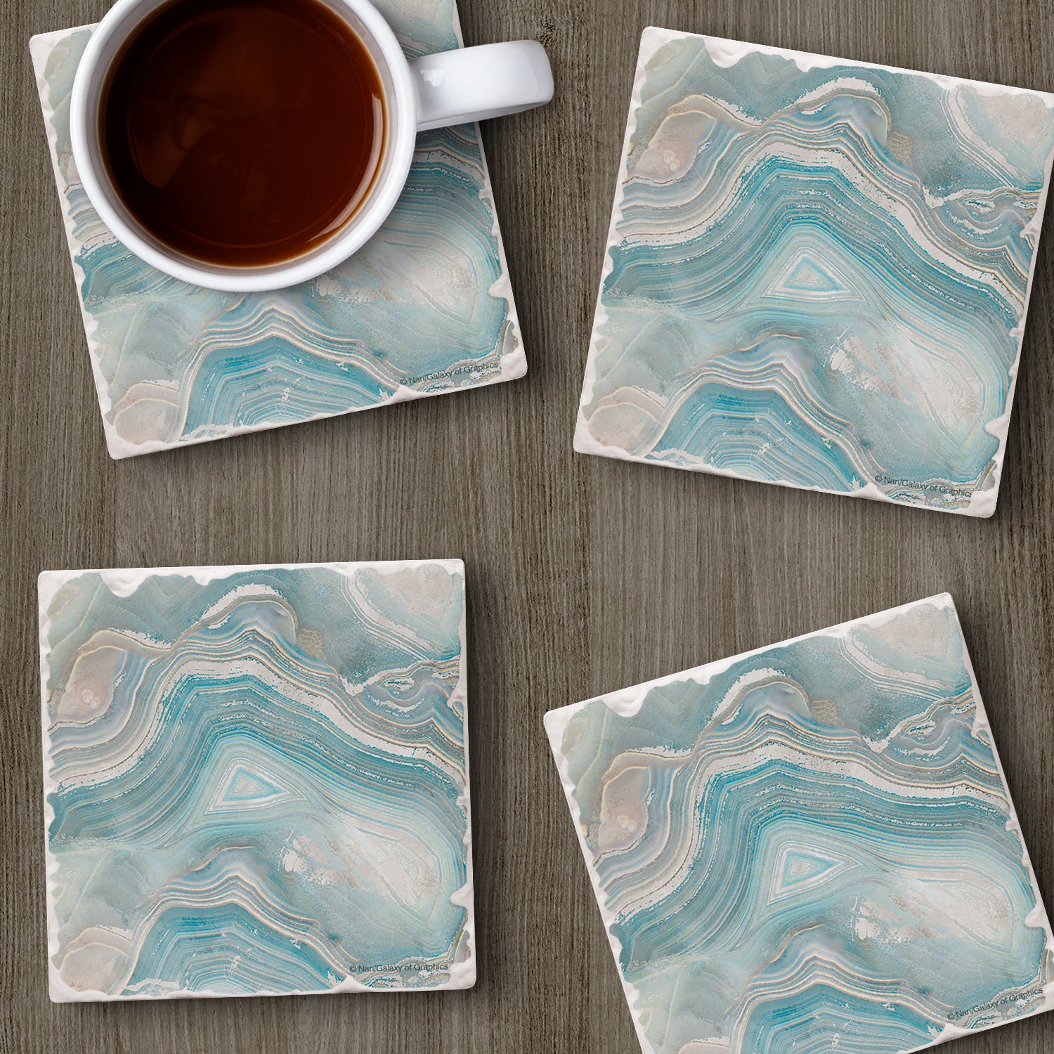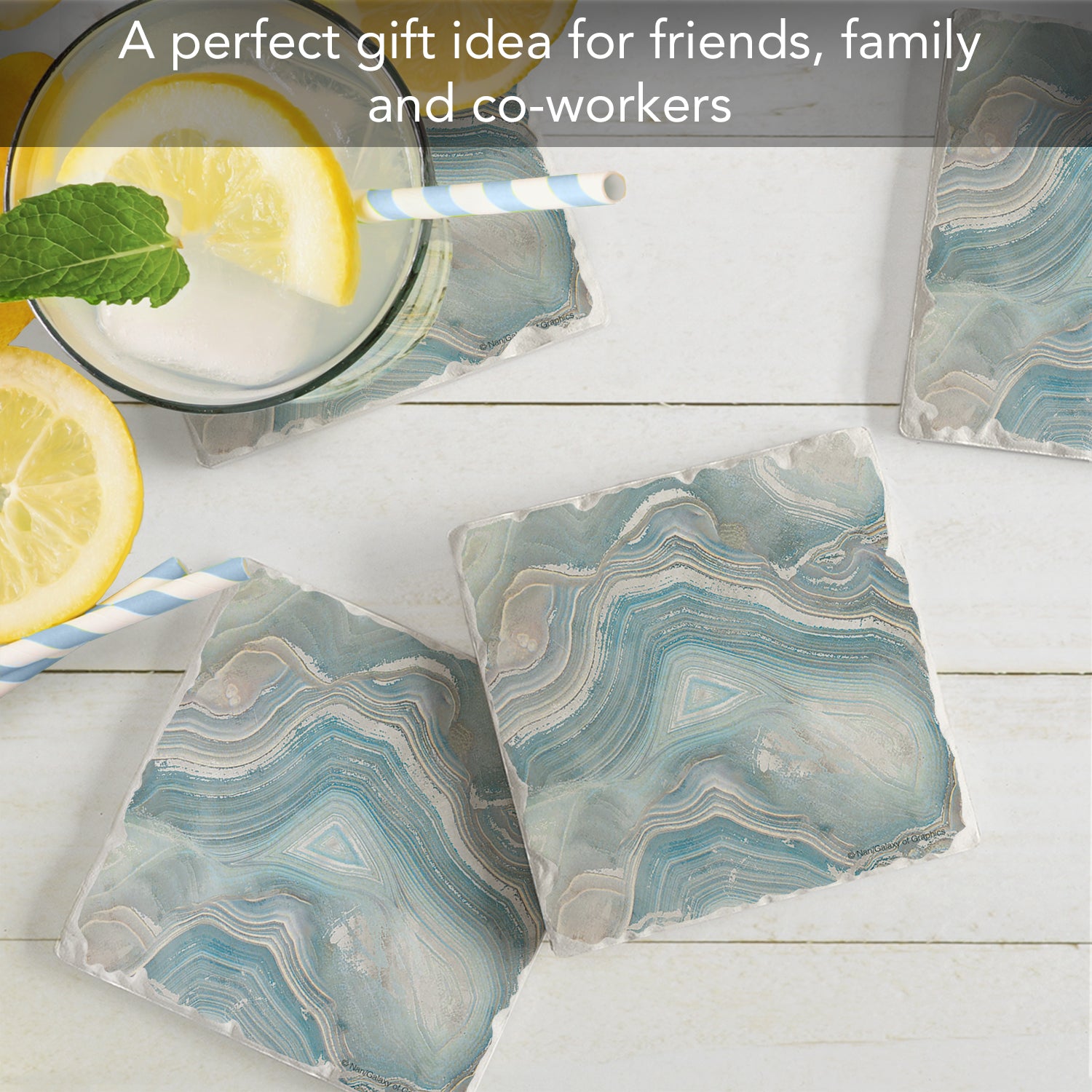 Thirstystone Agate in Blue 4 Pack Tumbled Tile Stone Coasters 4" Square Manufactured in the USA