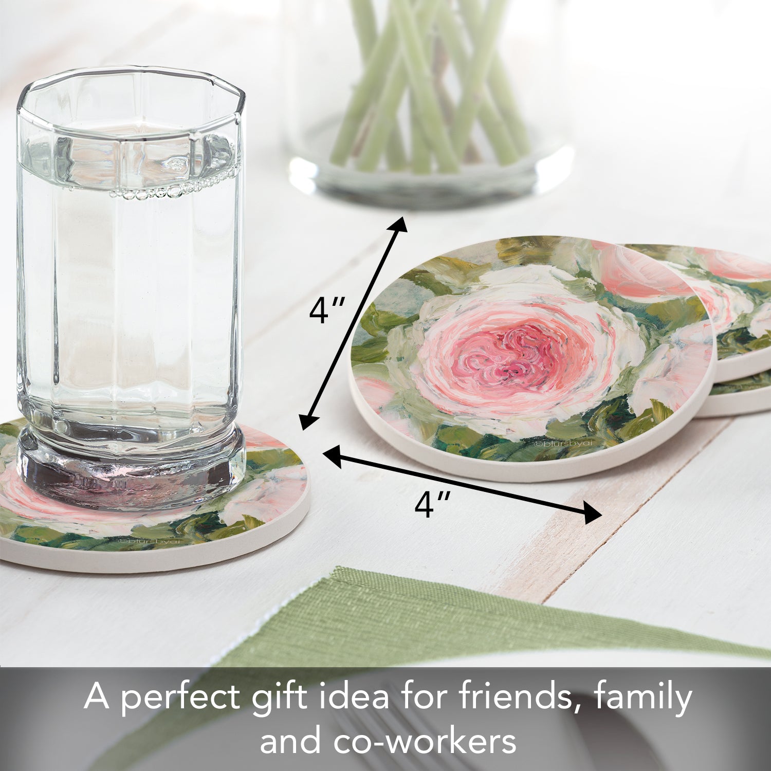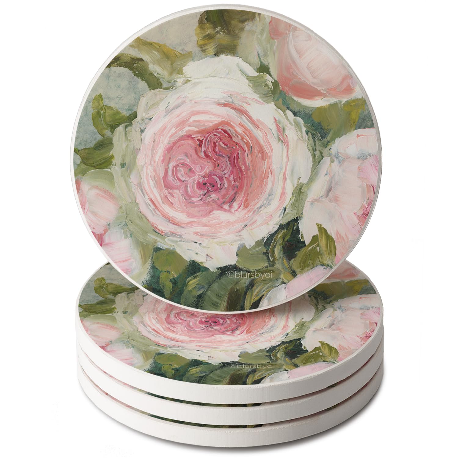 Thirstystone Aged Beauty Floral 4 Pack Absorbent Stone Coasters 4" Diameter Manufactured in the USA