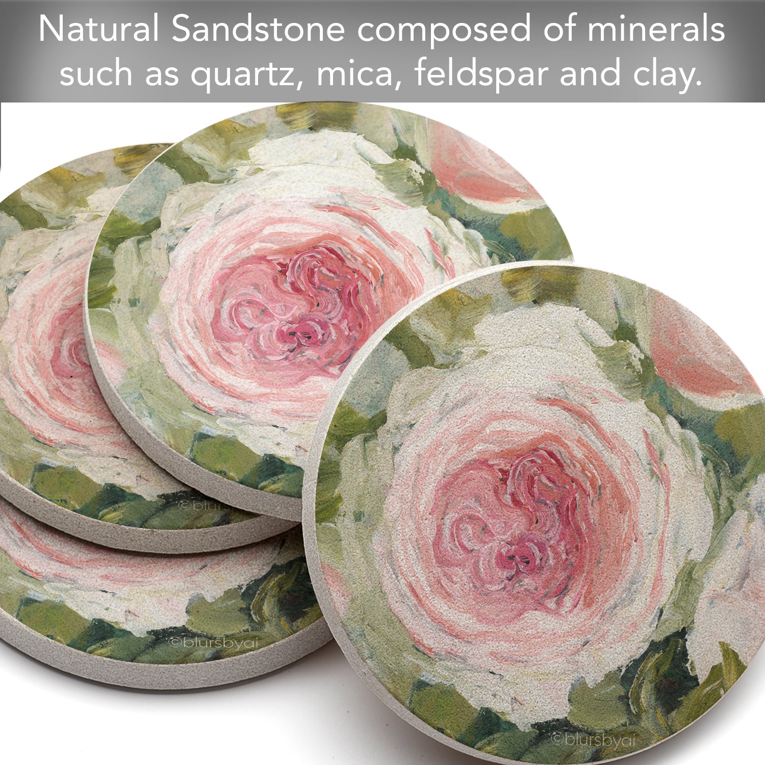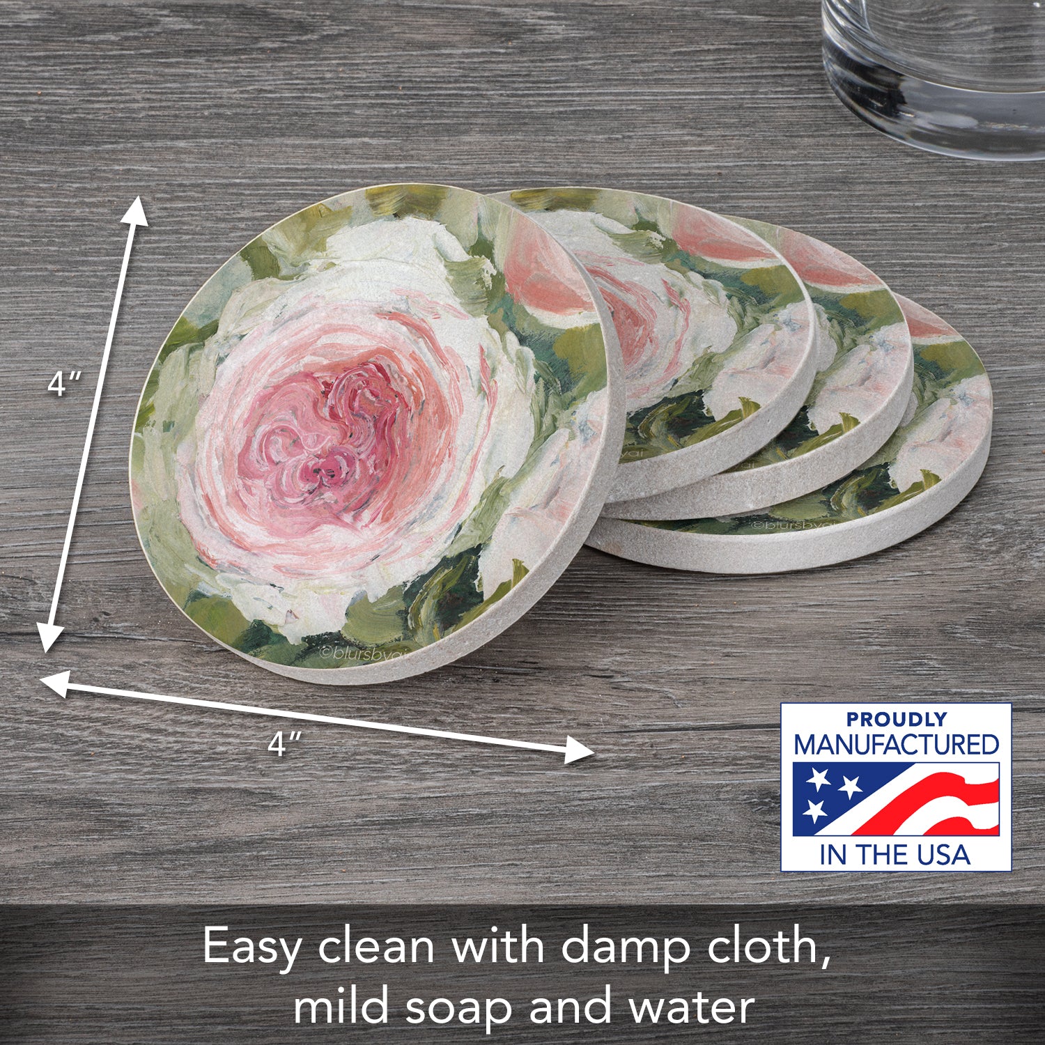MEASUREMENTS-Each coaster measures 4” square. Sandstone coasters are easy to clean with a damp cloth or sponge. Beautiful artistic design allows the Coasters to remain displayed even when not in use.