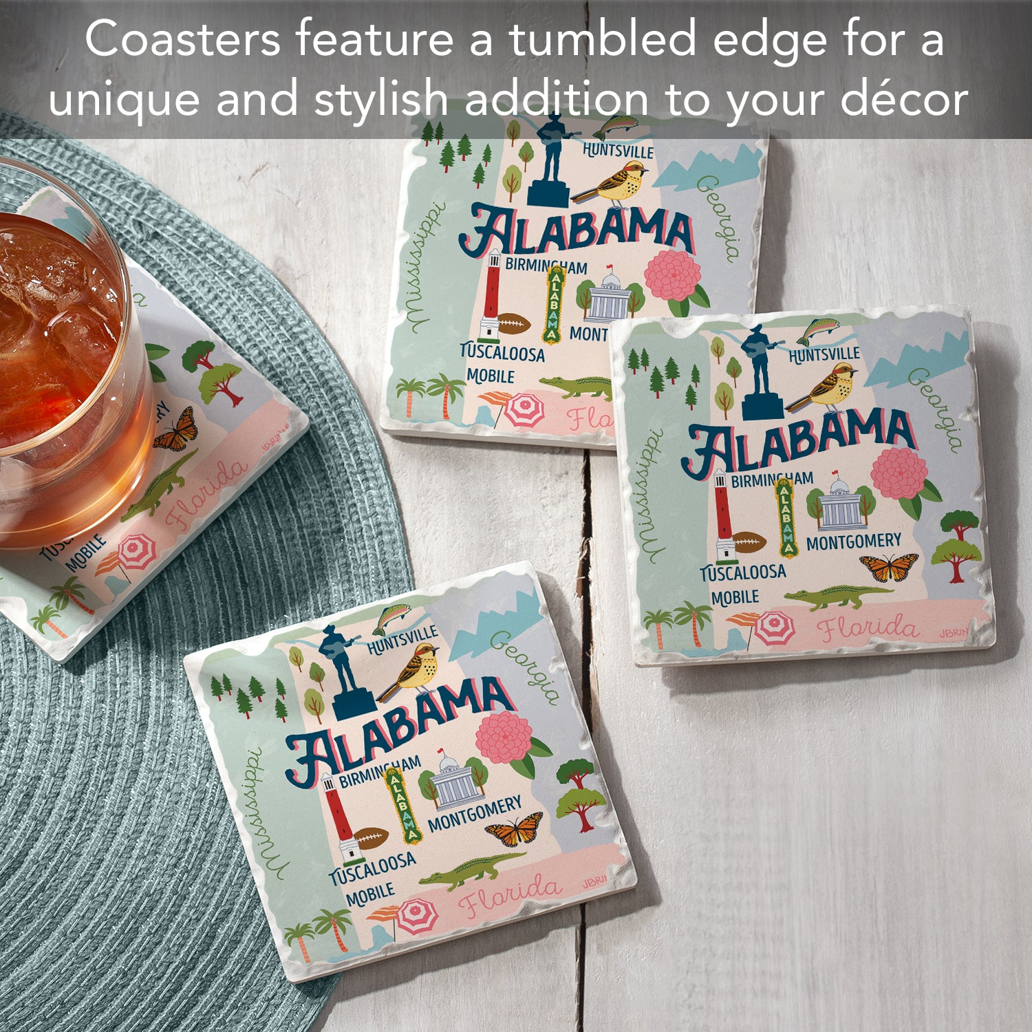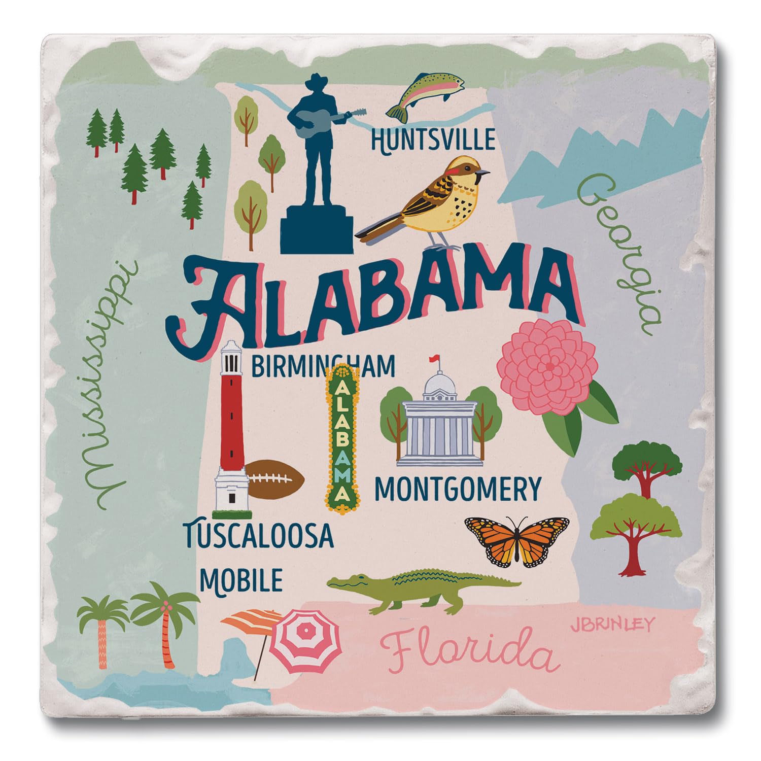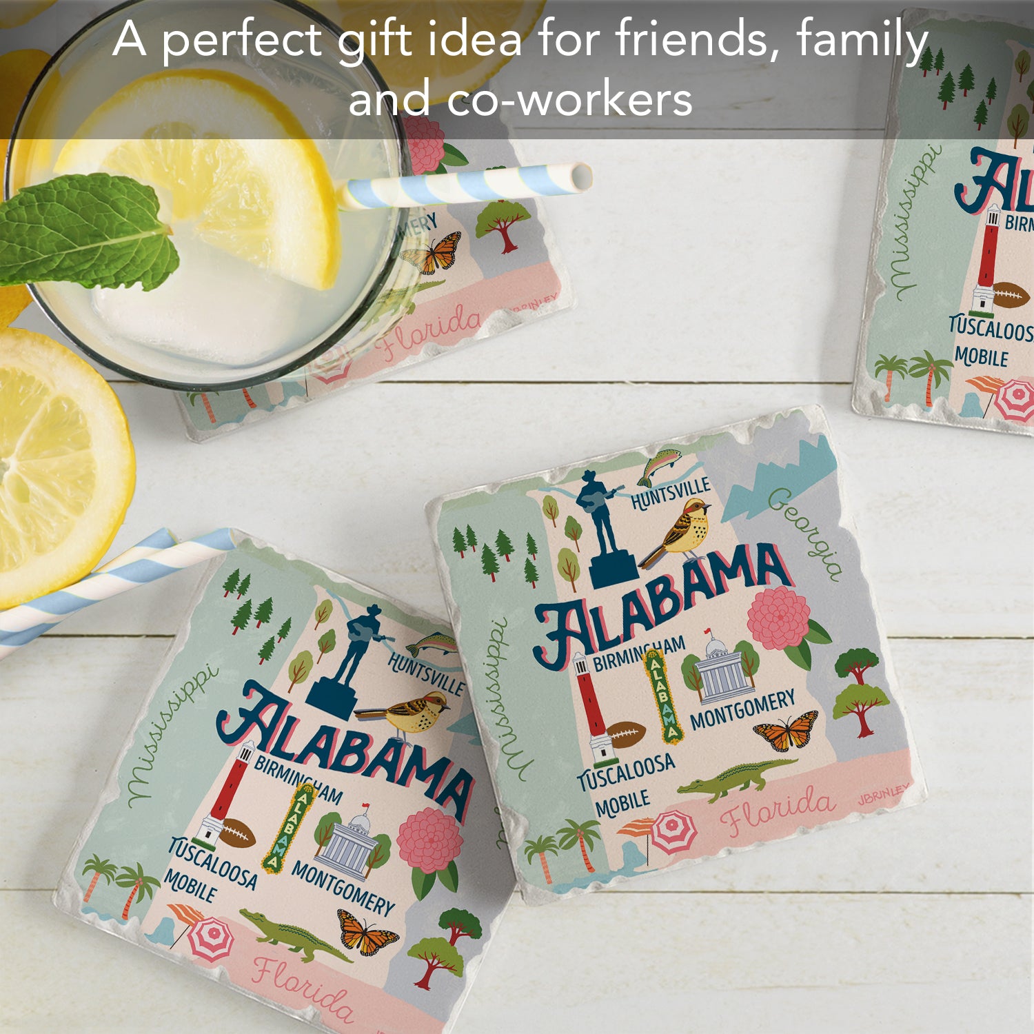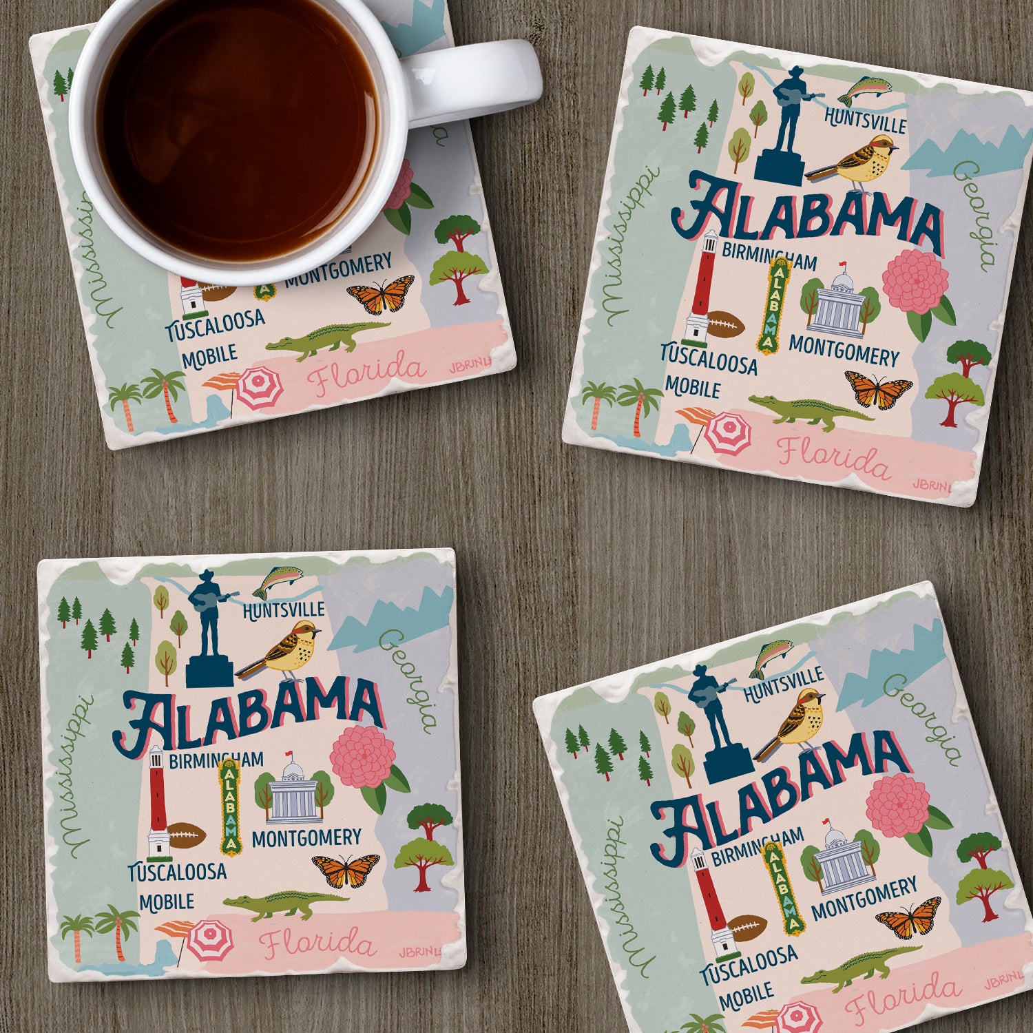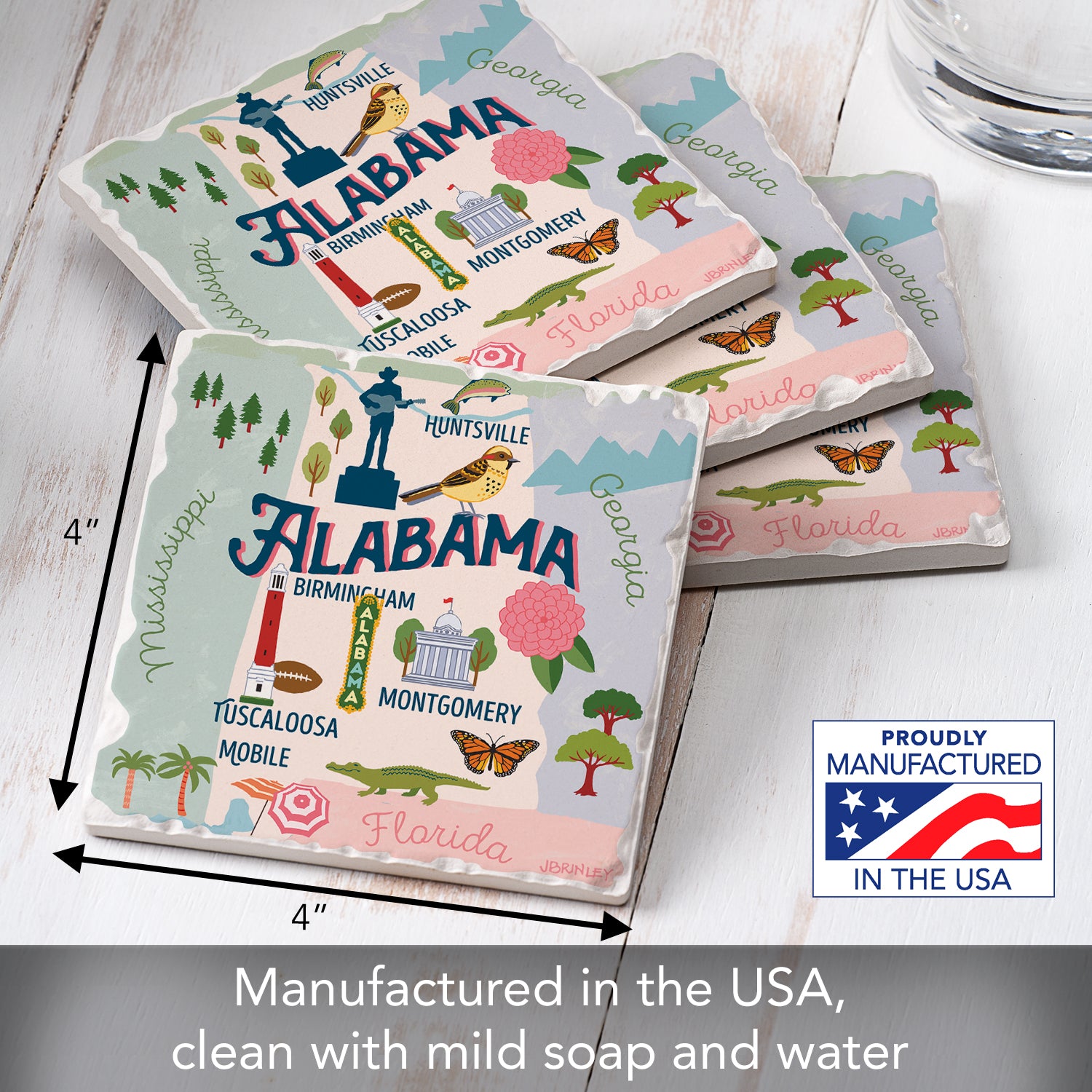 Thirstystone Alabama State Attractions 4 Pack Absorbent Stone Tumbled Tile Coasters 4” Square Manufactured in the USA
