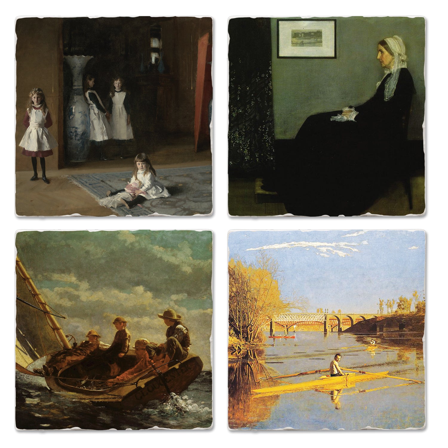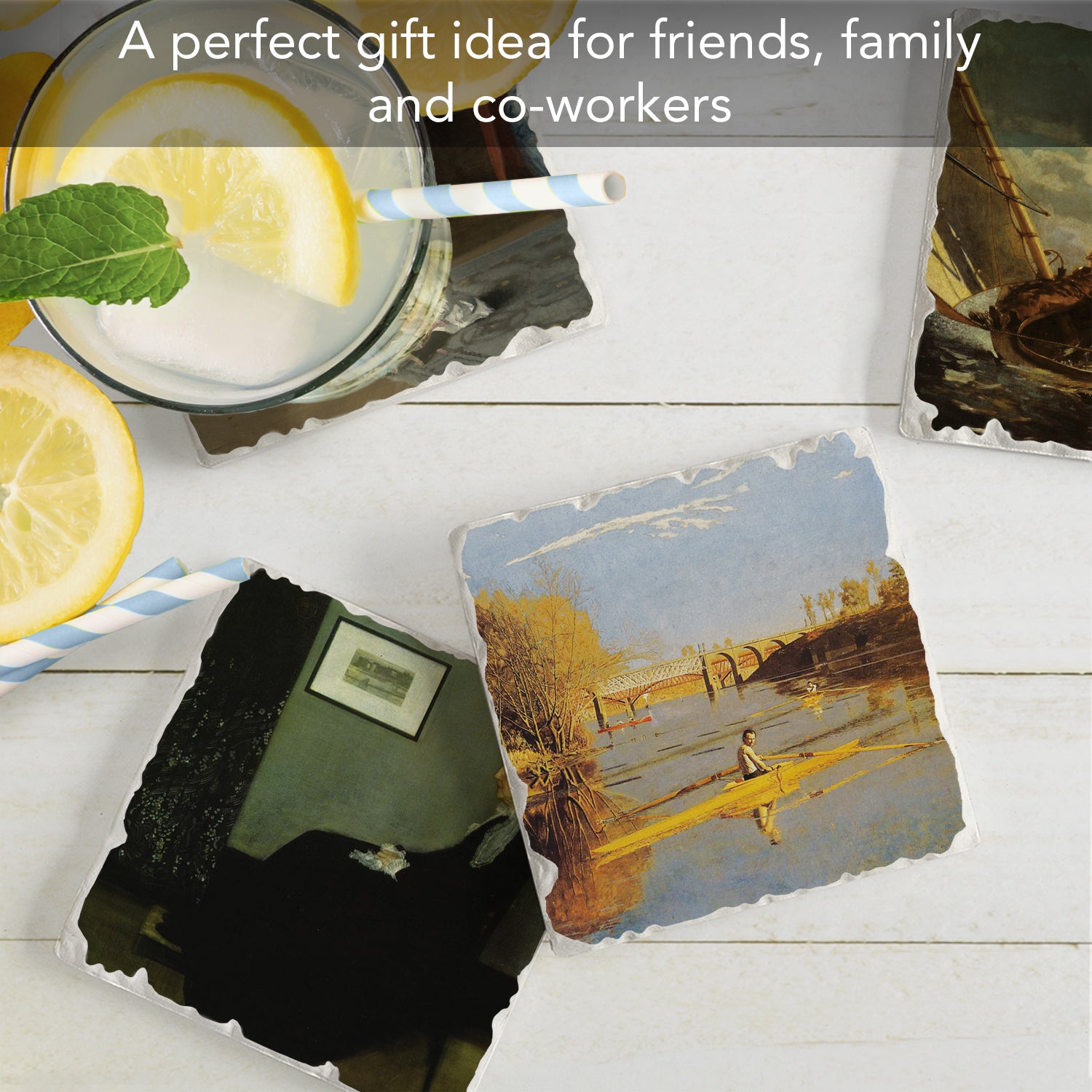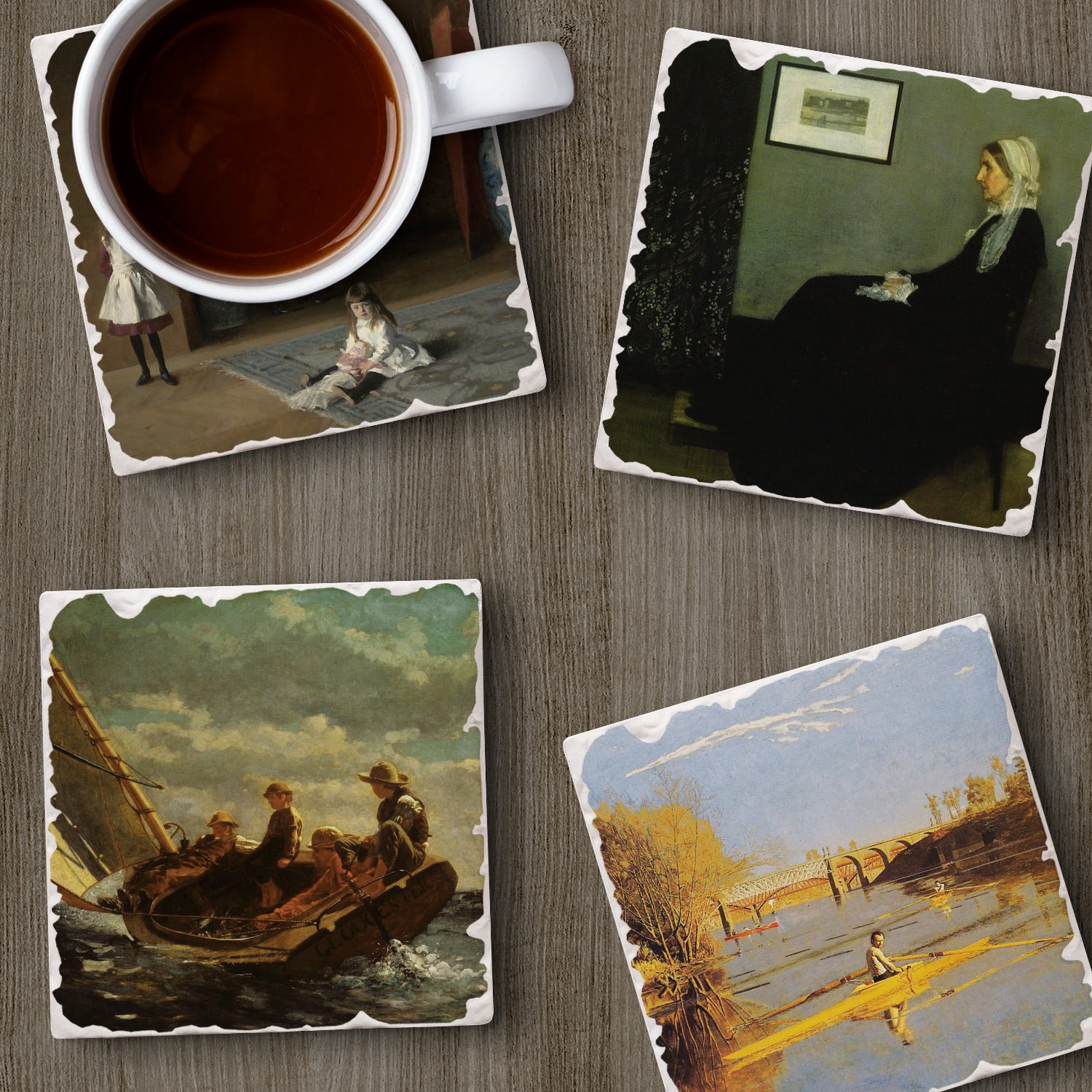 Thirstystone American Artists 4-Pack Assorted Tumbled Tile Stone Coasters 4" Square