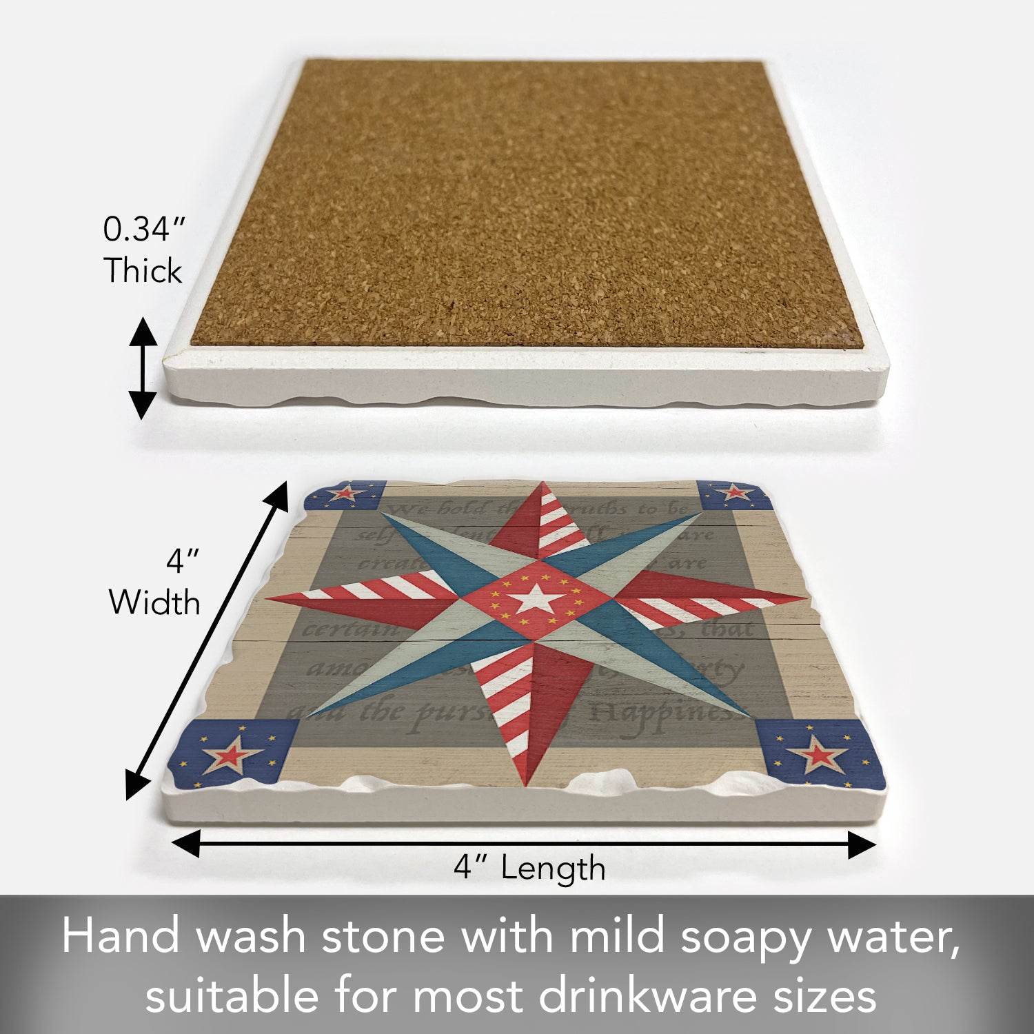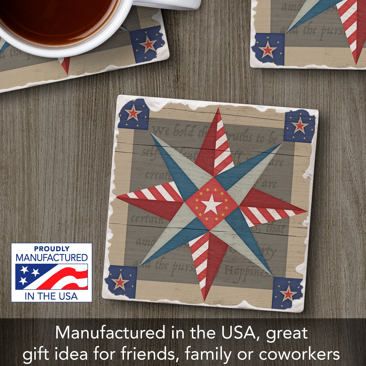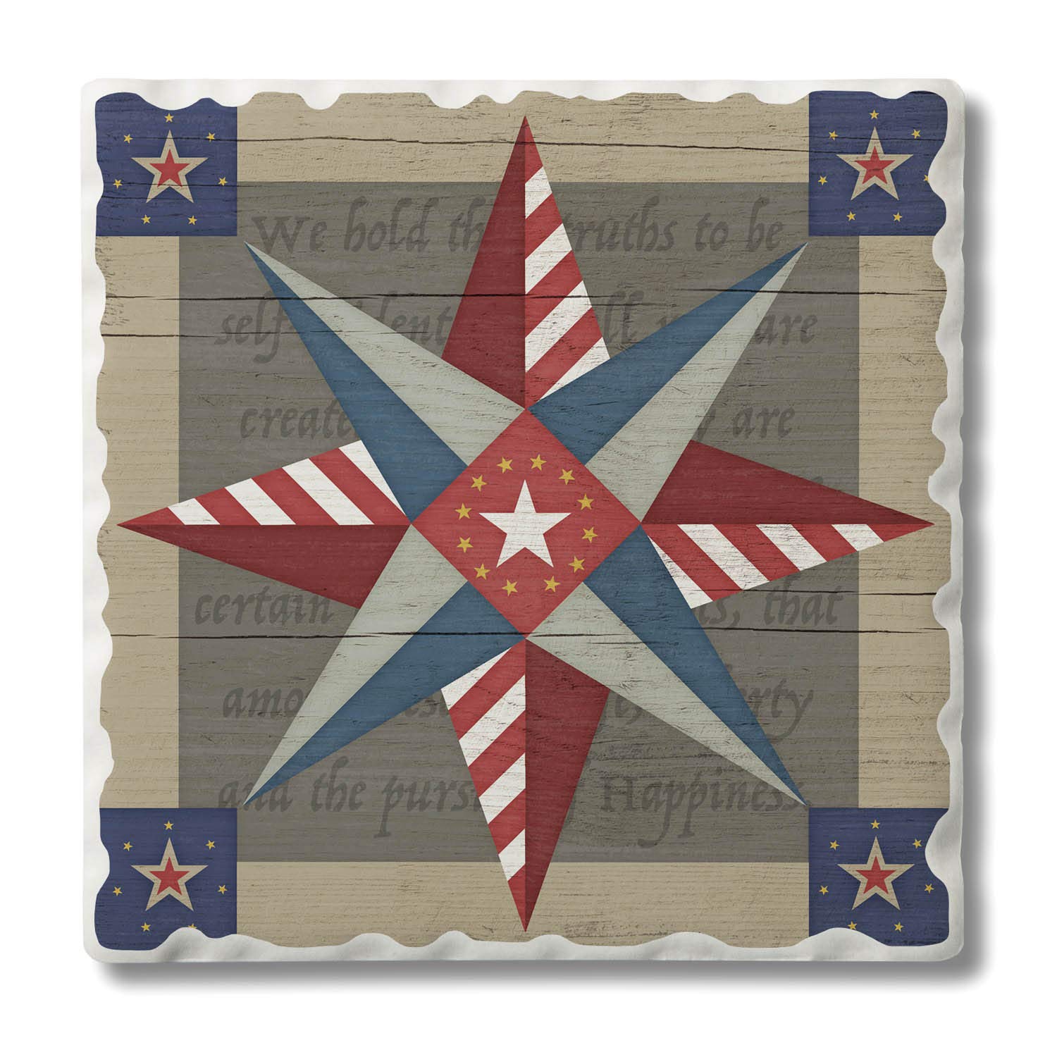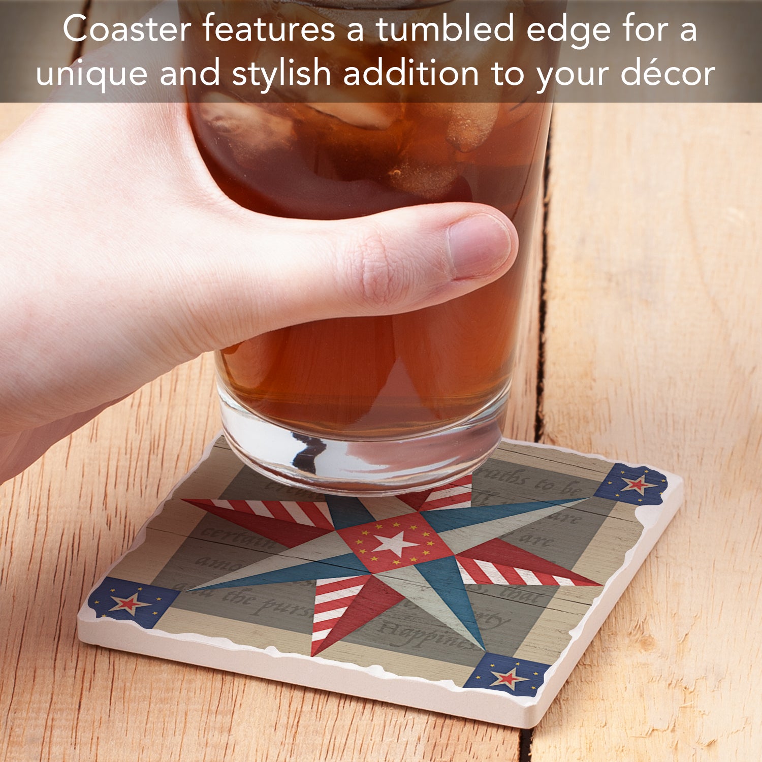 Thirstystone American Guiding Star Quilt Design Single Tumbled Tile Stone Coaster with Protective Cork Backing Manufactured in The USA 4" Square, Colorful, Artistiic, Easily Wipes Clean