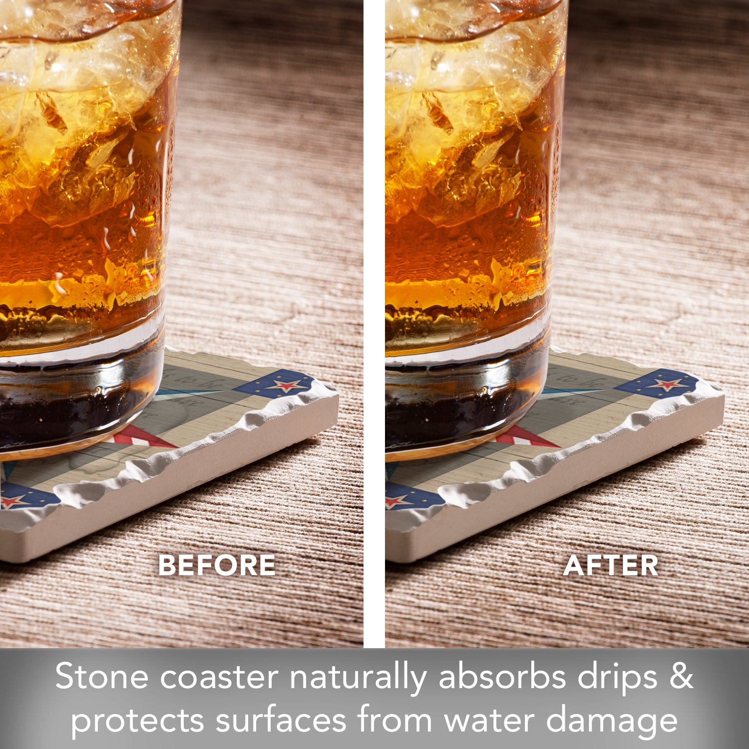 FUNCTIONAL ART-Beautiful artistic design allows the Coaster to remain displayed even when not in use. Each Coaster measures 4” x 4” x .25”. Sized to fit larger Mugs & Glasses.
