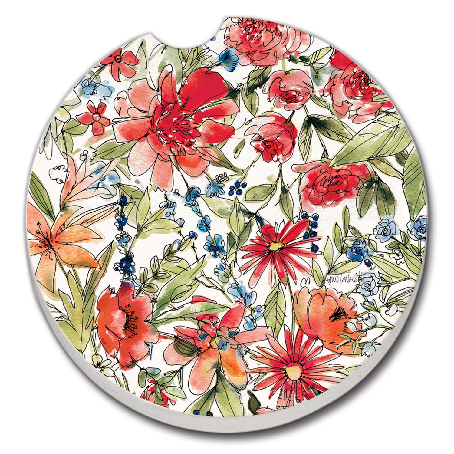 Thirstystone Americana Mood Floral Single Absorbent Stone Car Coaster 2.6” Diameter Manufactured in the USA
