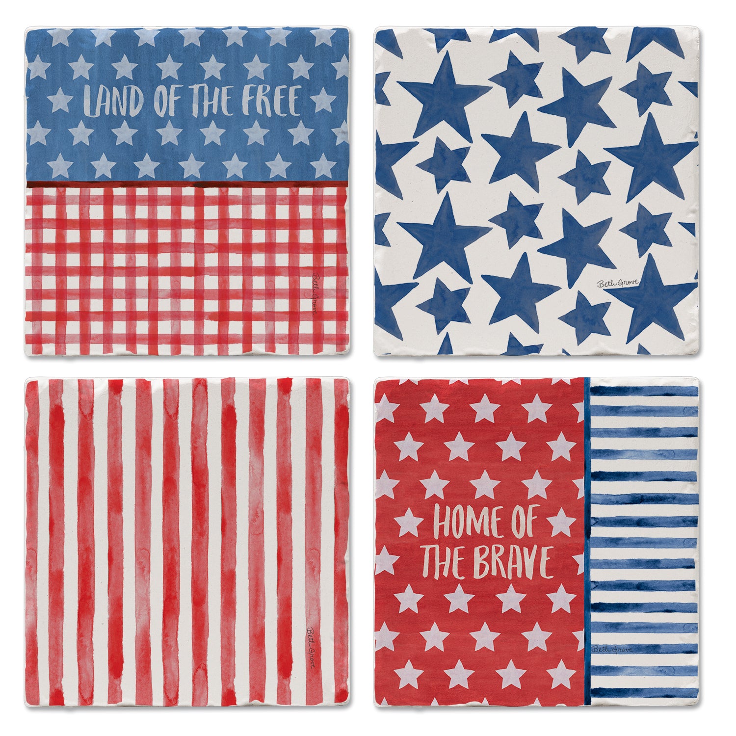 Thirstystone Americana Style 4 Pack Assorted Tumbled Tile Coasters Manufactured in the USA