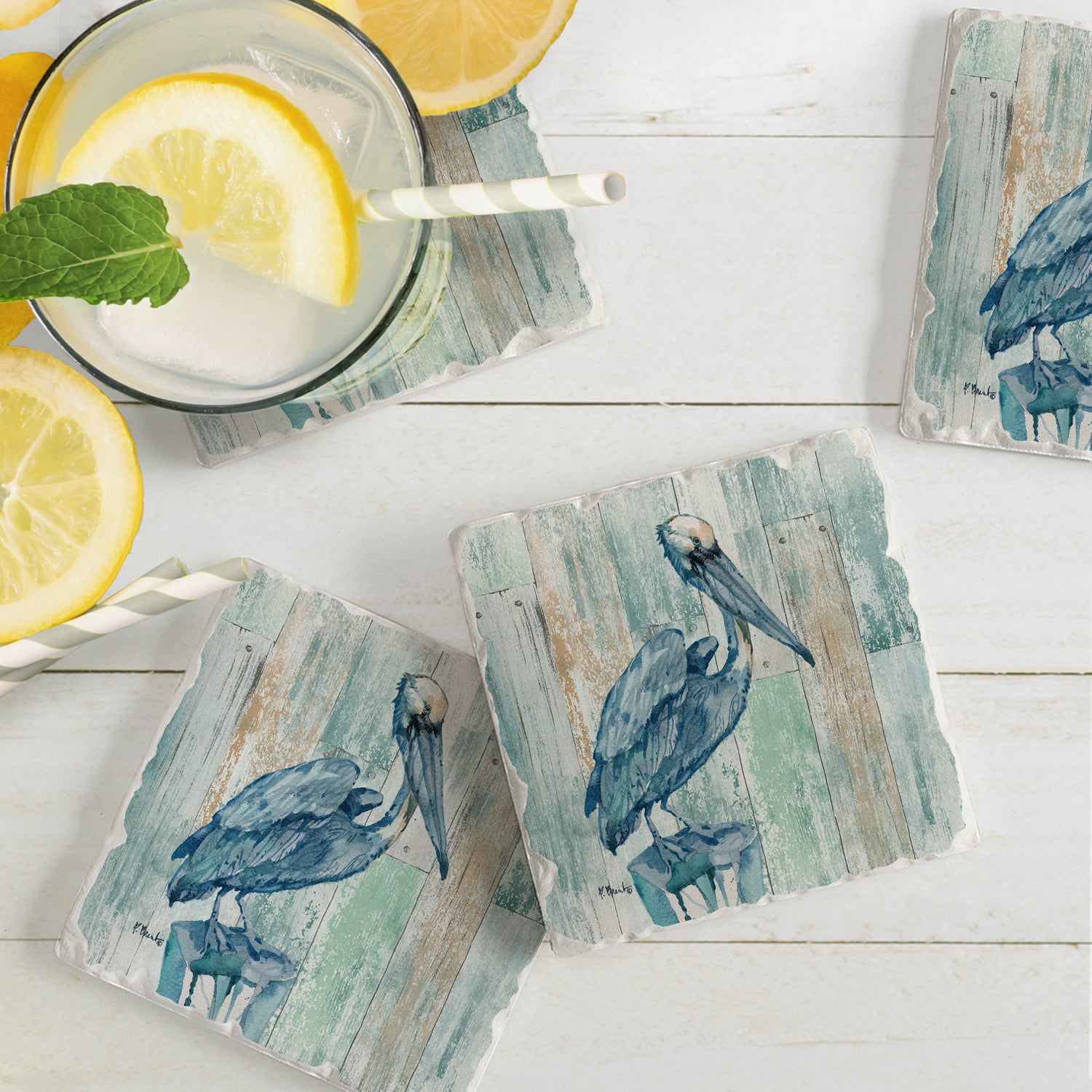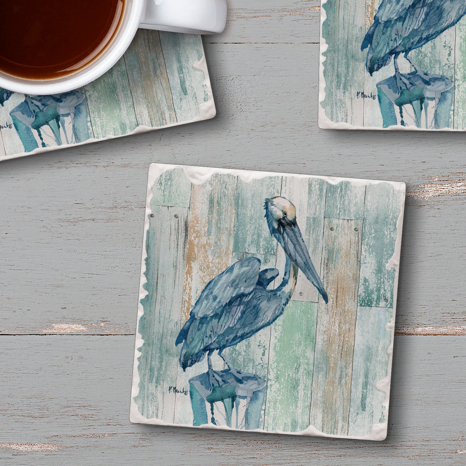Thirstystone Arianna Pelican 4 Pack Tumbled Tile Stone Coasters 4" Square Manufactured in the USA
