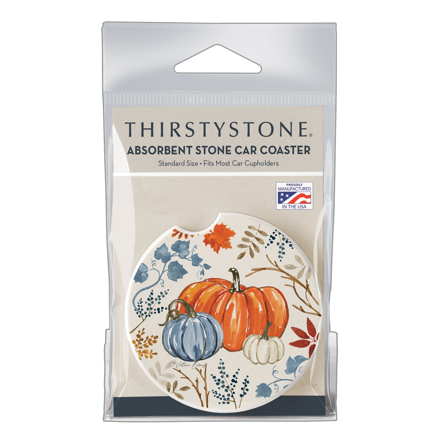 Autumn Pumpkins Single Absorbent Stone Car Coaster 2.6” Diameter Manufactured in the USA