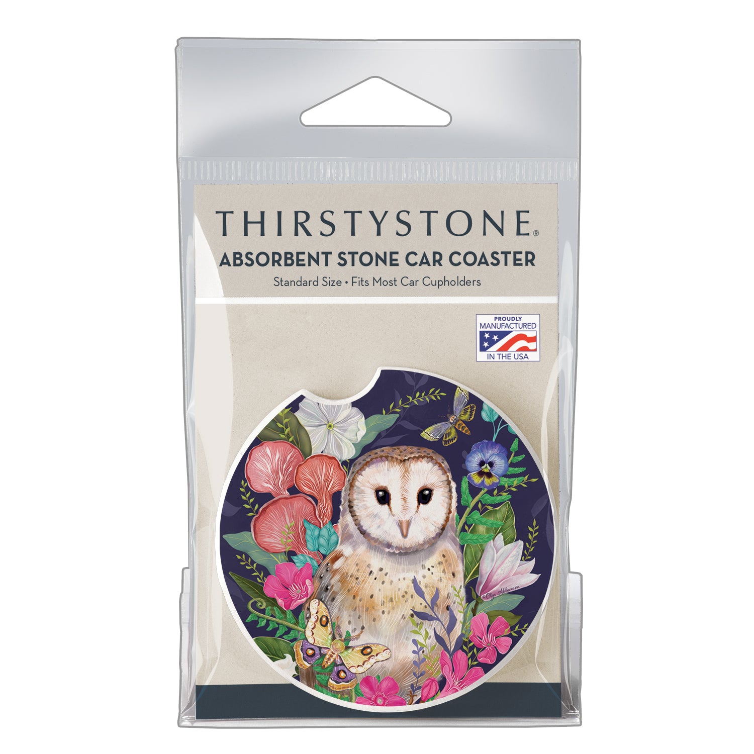 Thirstystone Barn Owl Single Absorbent Stone Car Coaster 2.6” Diameter Manufactured in the USA