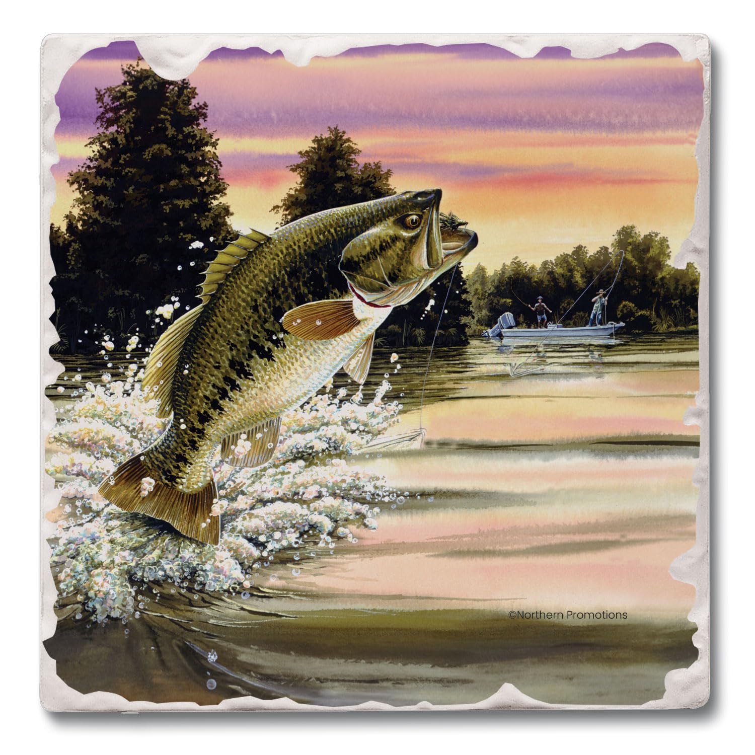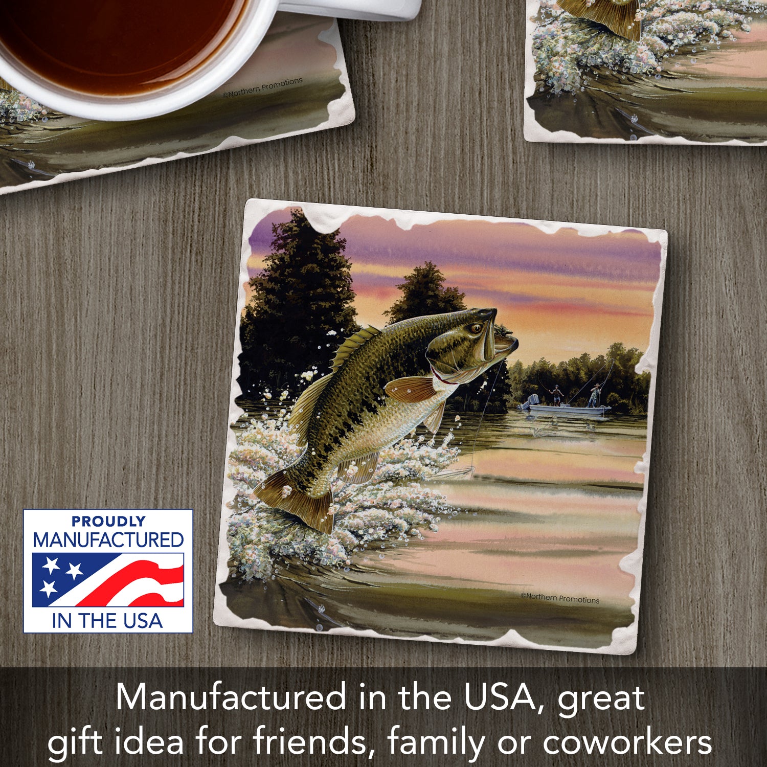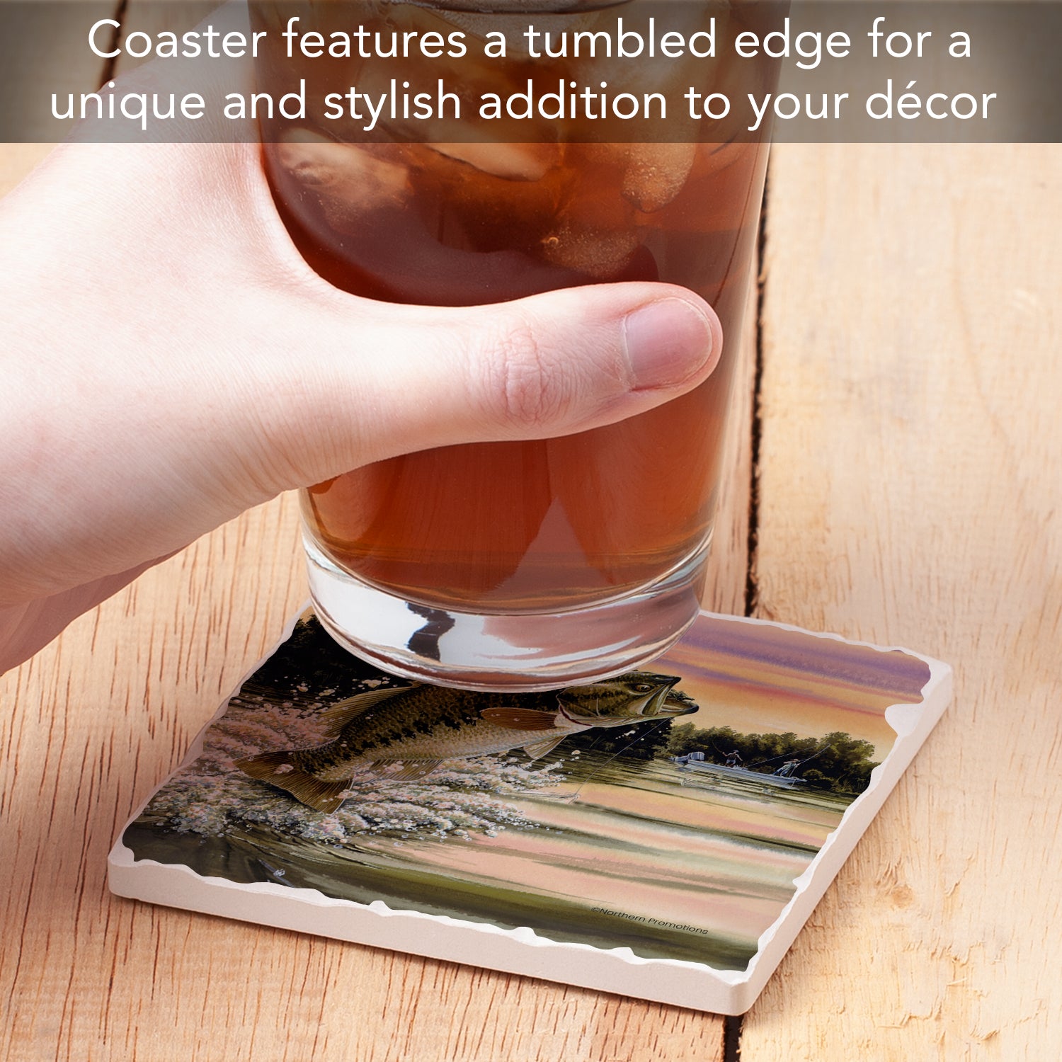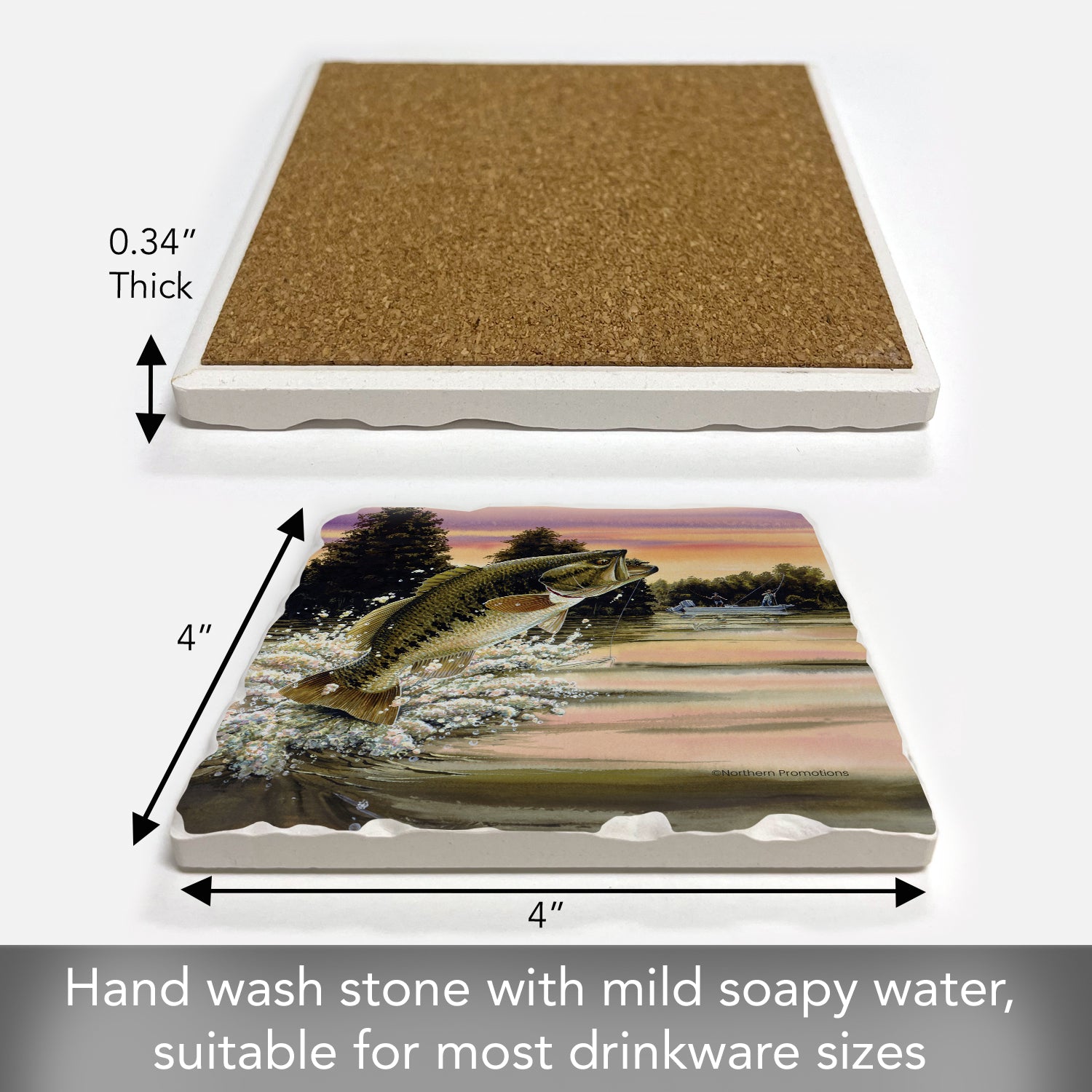 Thirstystone Bass Attack Single Tumbled Tile Stone Coaster with Protective Cork Backing Manufactured in The USA 4" Square