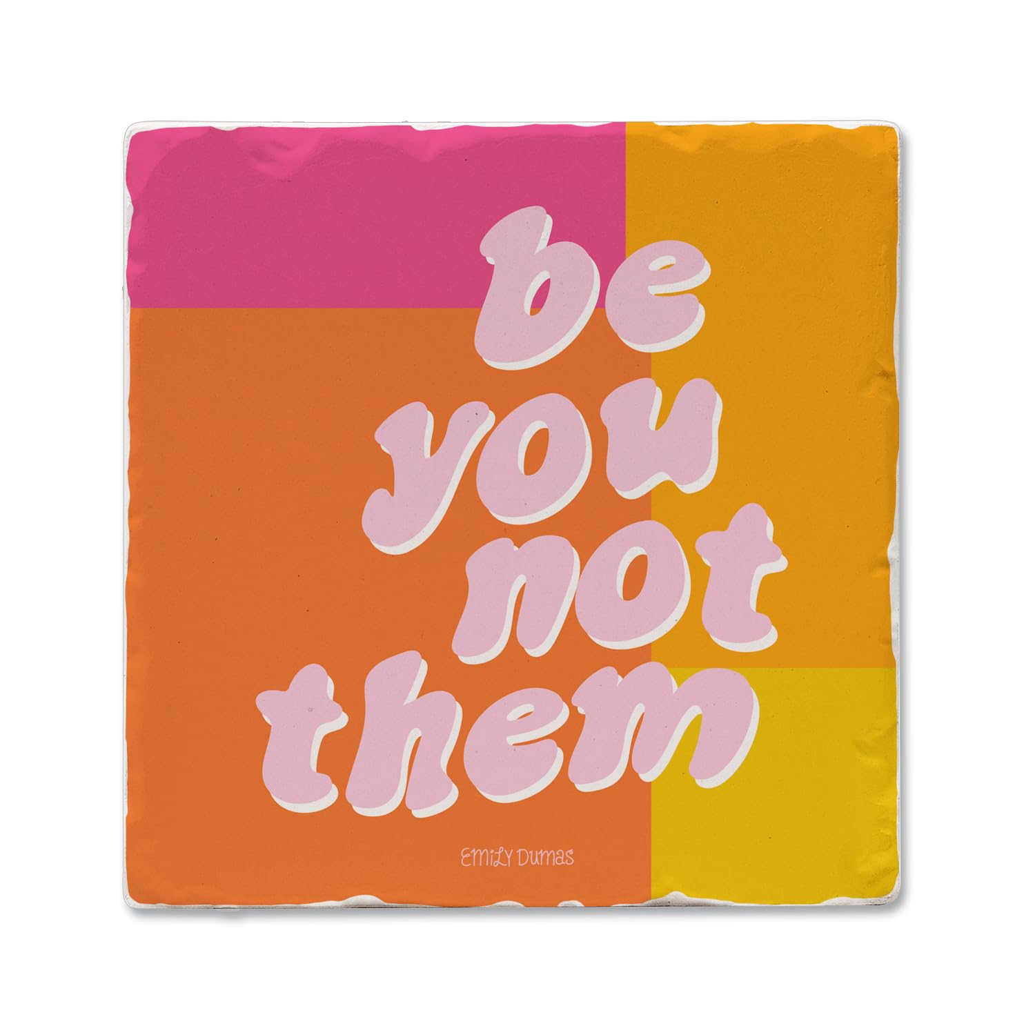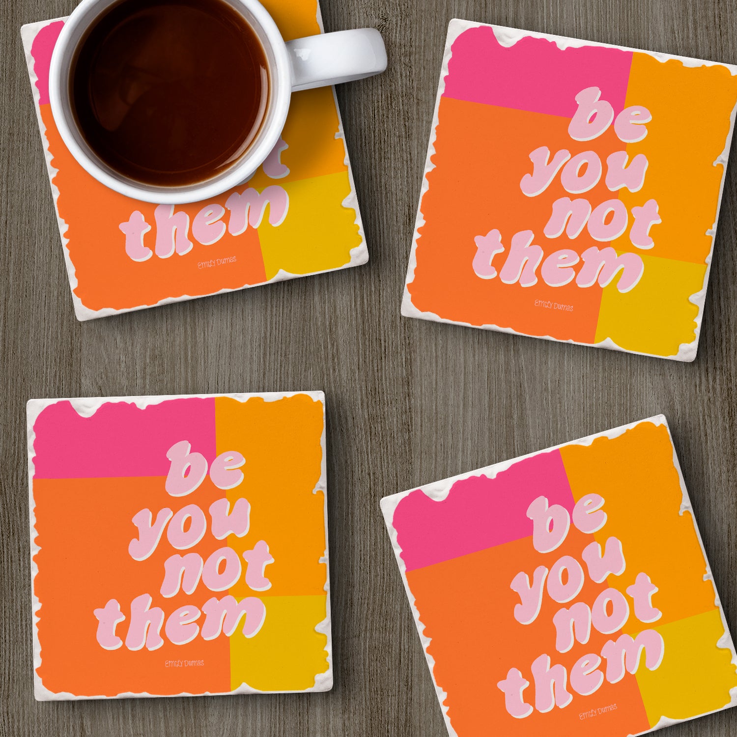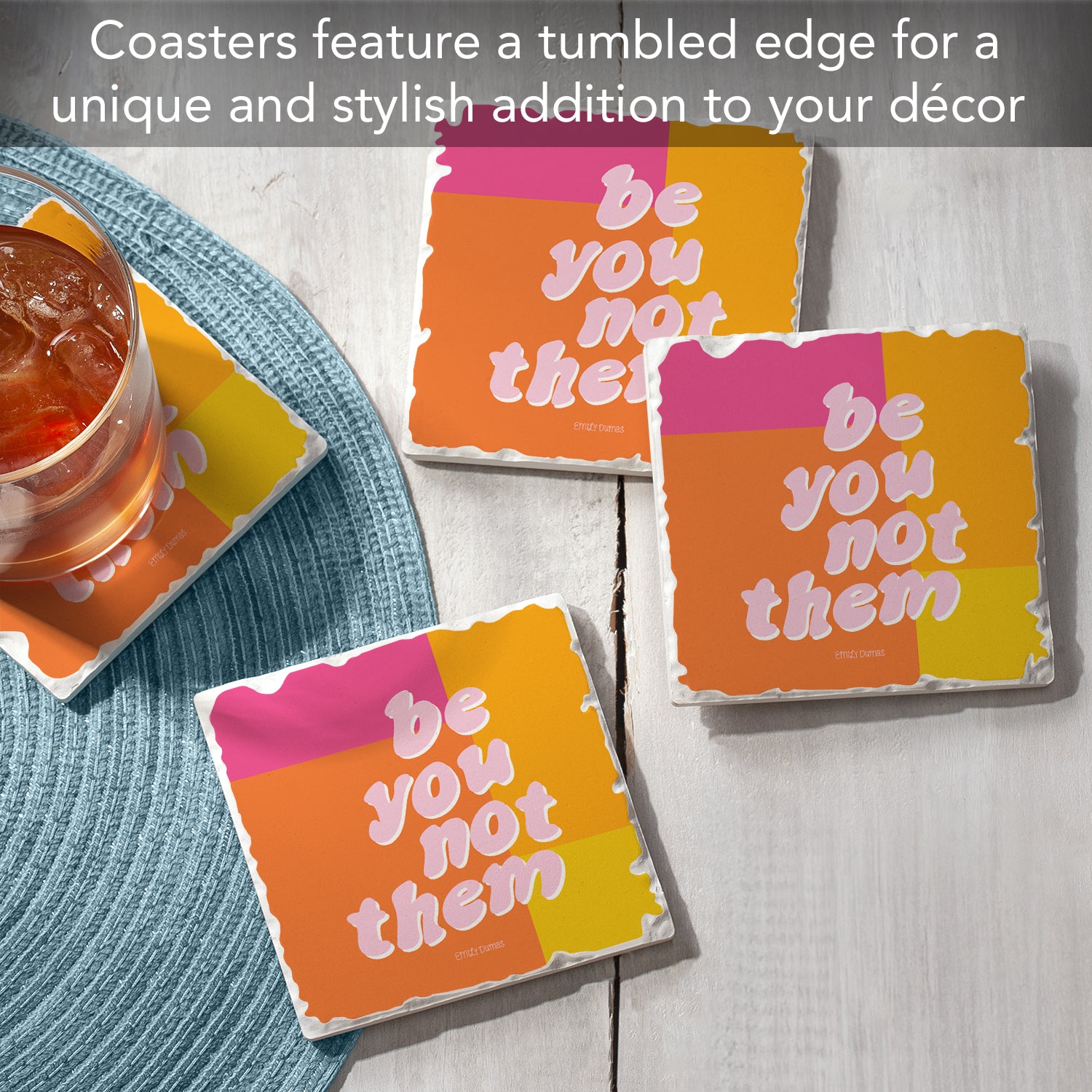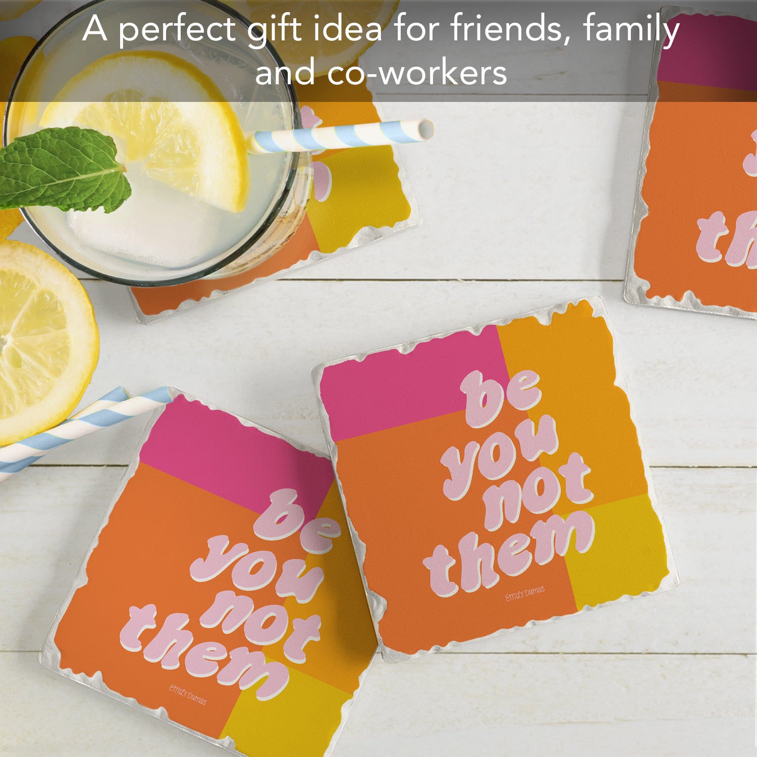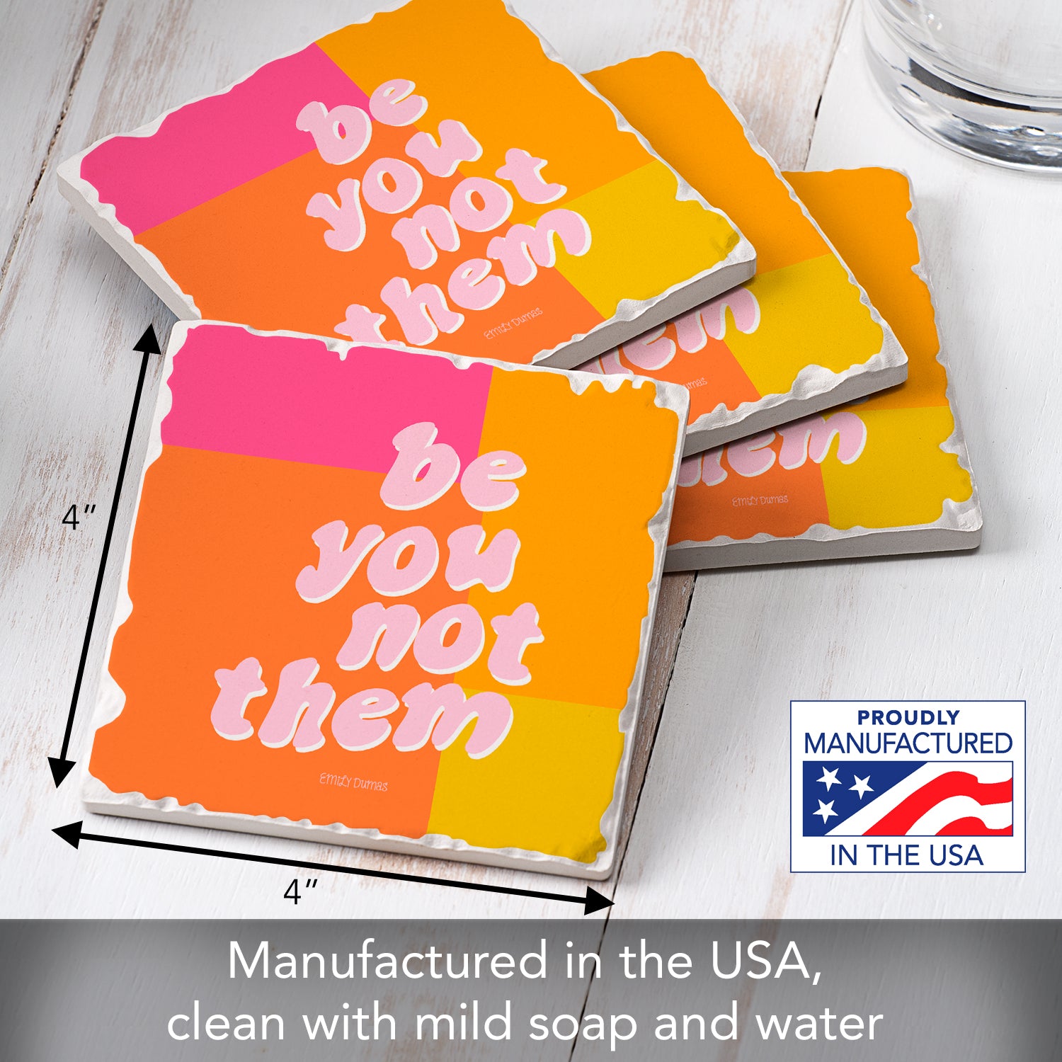 Thirstystone Be You Not Them 4 Pack Tumbled Tile Stone Coasters 4" Square Manufactured in the USA