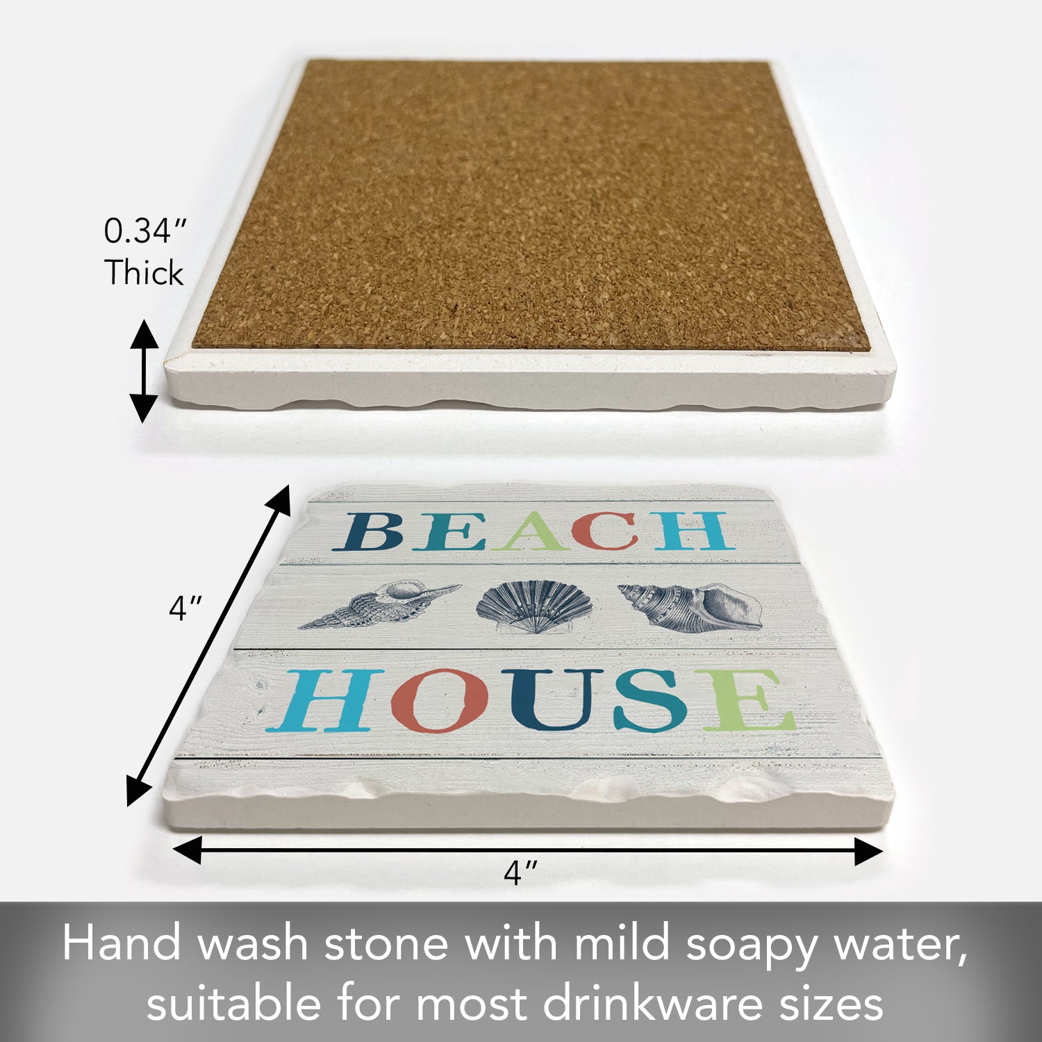 Thirstystone Beach House Single Tumbled Tile Stone Coaster with Protective Cork Backing Manufactured in The USA 4" Square, Artistic, Easily Wipes Clean