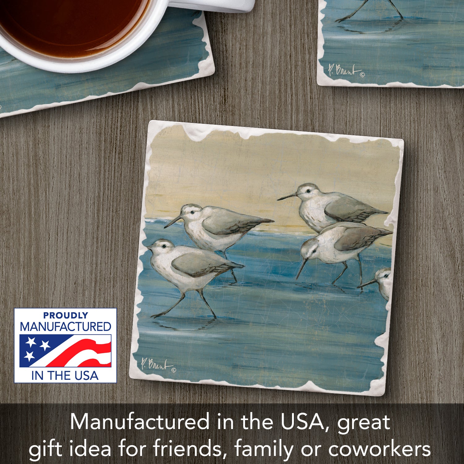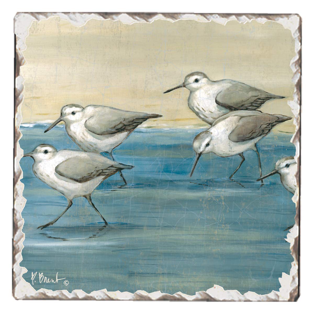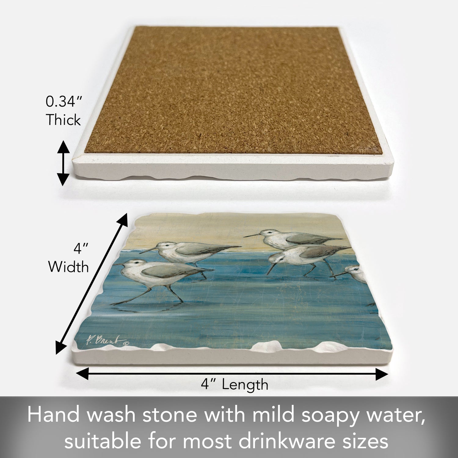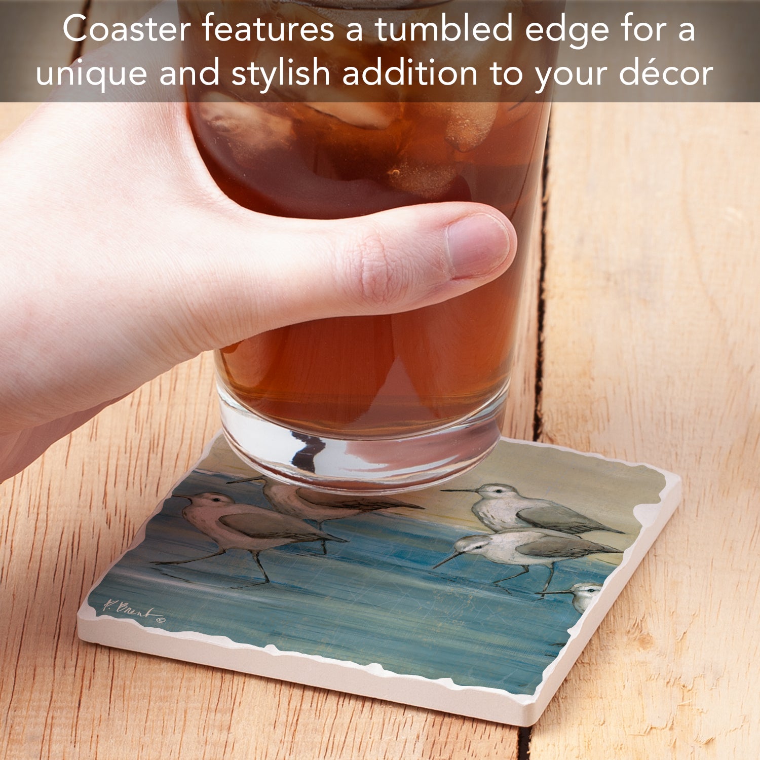 Thirstystone Beach Sandpipers Single Tumbled Tile Stone Coaster with Protective Cork Backing Manufactured in The USA 4" Square, Colorful, Artistiic, Easily Wipes Clean
