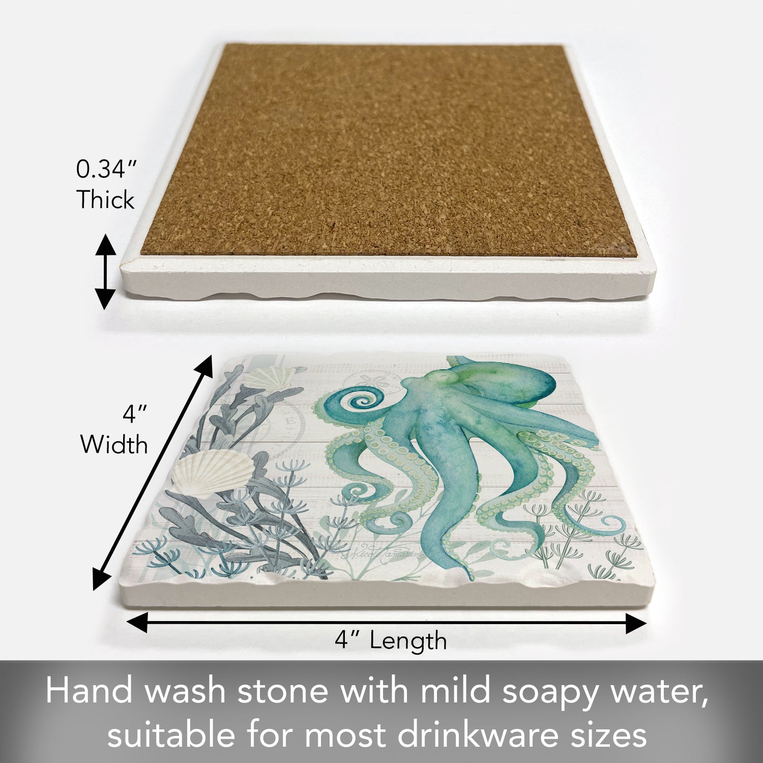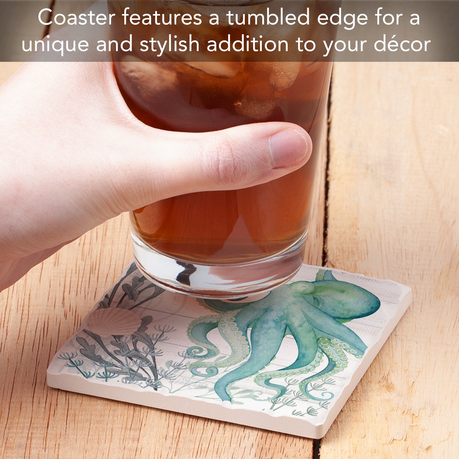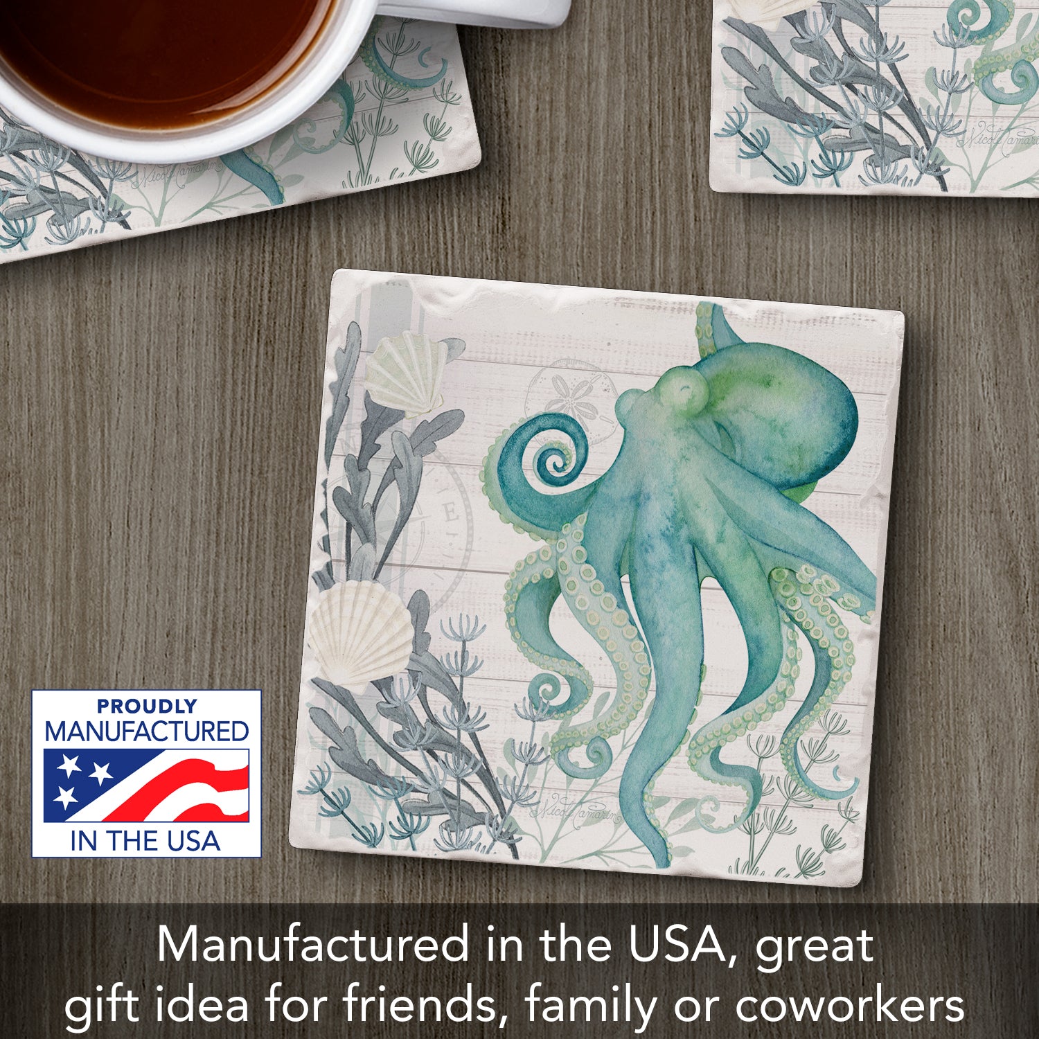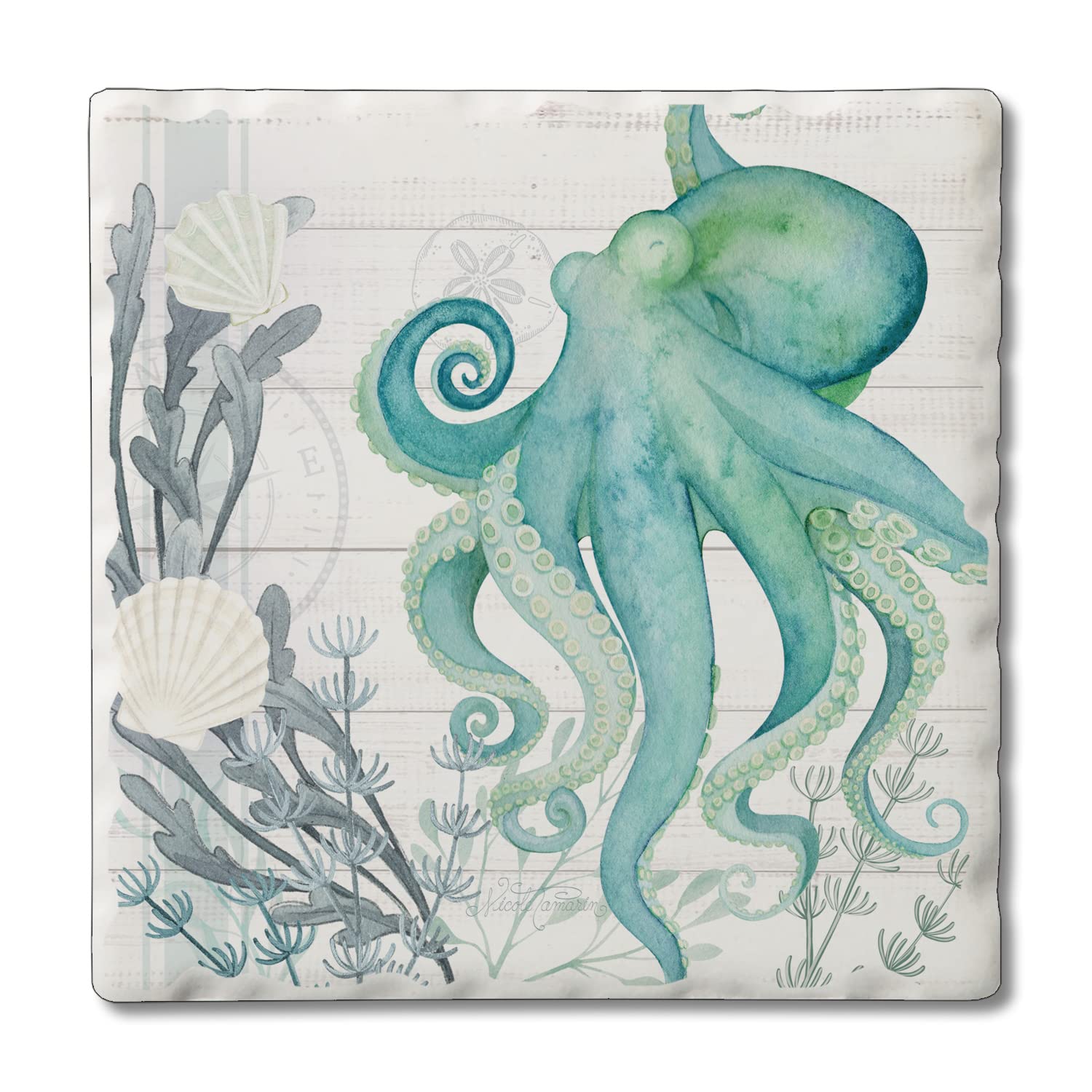Thirstystone Beach Therapy Octopus Single Tumbled Tile Stone Coaster with Protective Cork Backing Manufactured in The USA 4" Square, Colorful, Artistic, Easily Wipes Clean