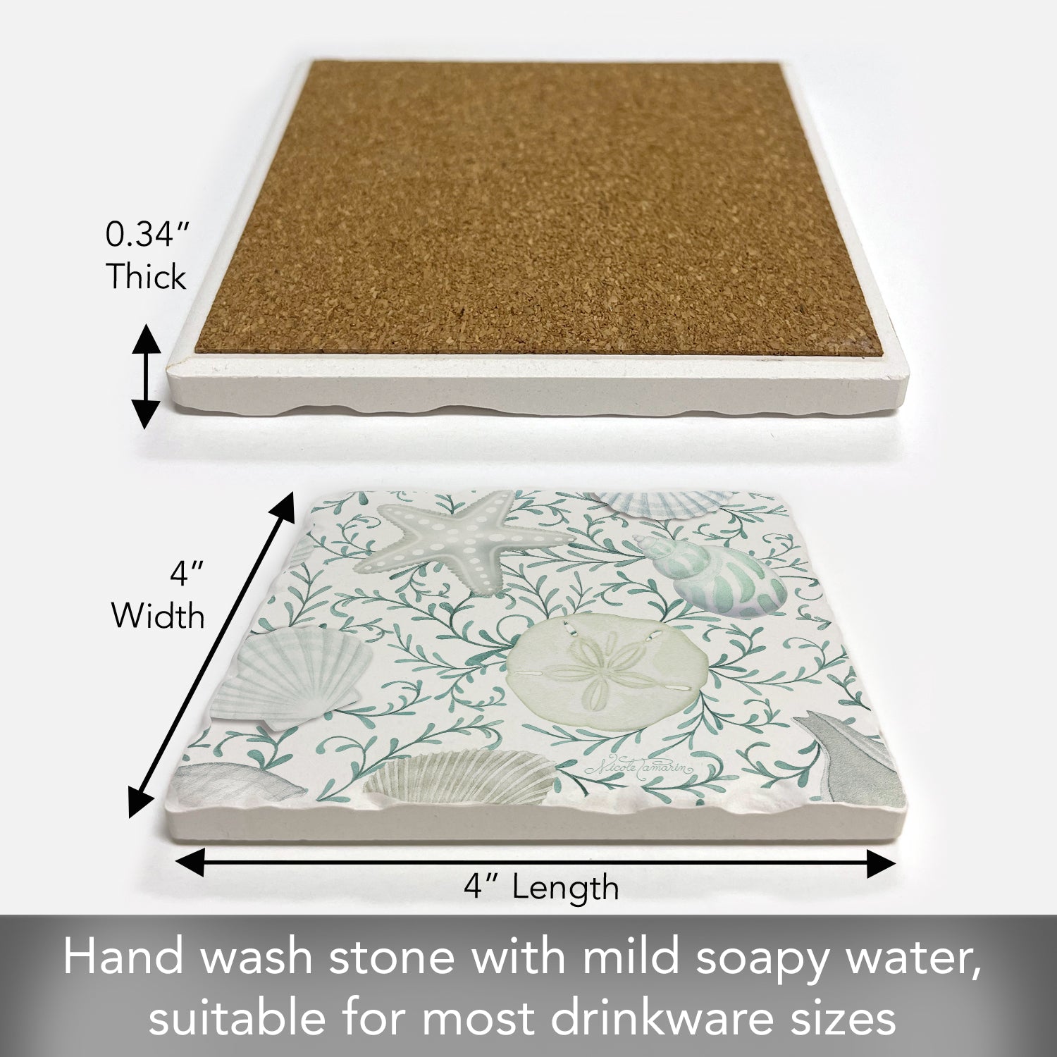 Thirstystone Beach Therapy Shells Single Tumbled Tile Stone Coaster with Protective Cork Backing Manufactured in The USA 4" Square, Colorful, Artistic, Easily Wipes Clean