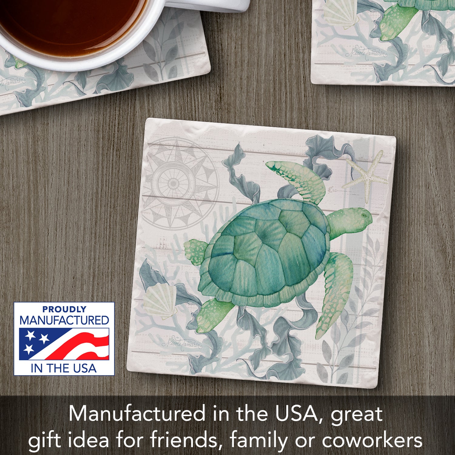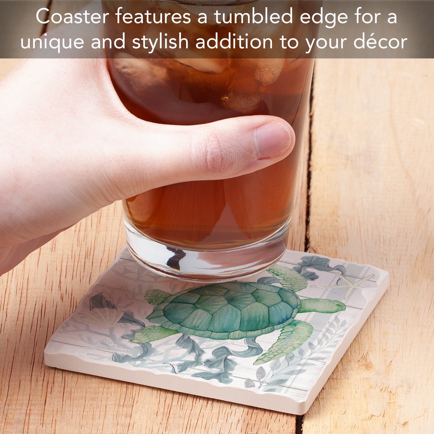 Thirstystone Beach Therapy Turtle Single Tumbled Tile Stone Coaster with Protective Cork Backing Manufactured in The USA 4" Square, Colorful, Artistic, Easily Wipes Clean